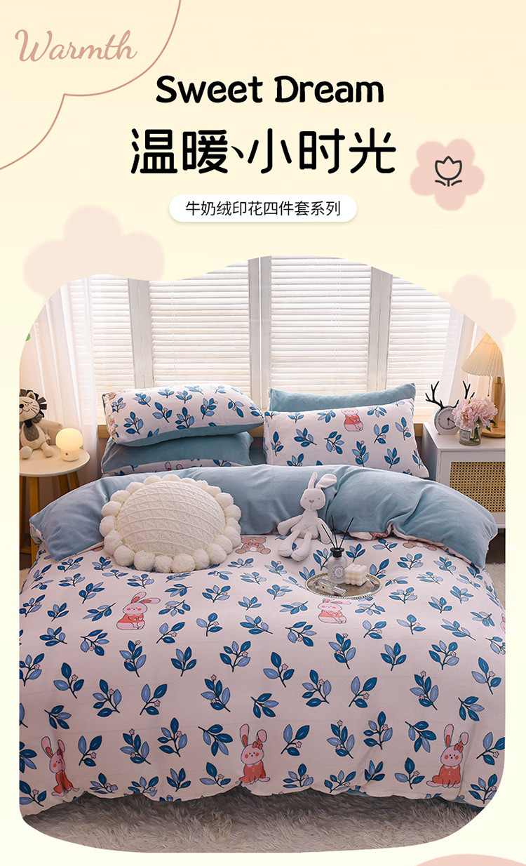 • 91家纺网 家纺一手货源 找家纺 芃成 2022新款加厚双面牛奶绒印花床品系列-单被套 菲菲兔