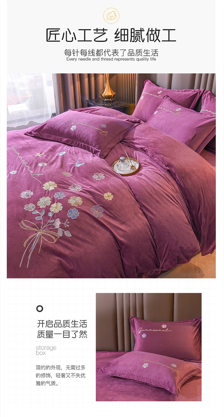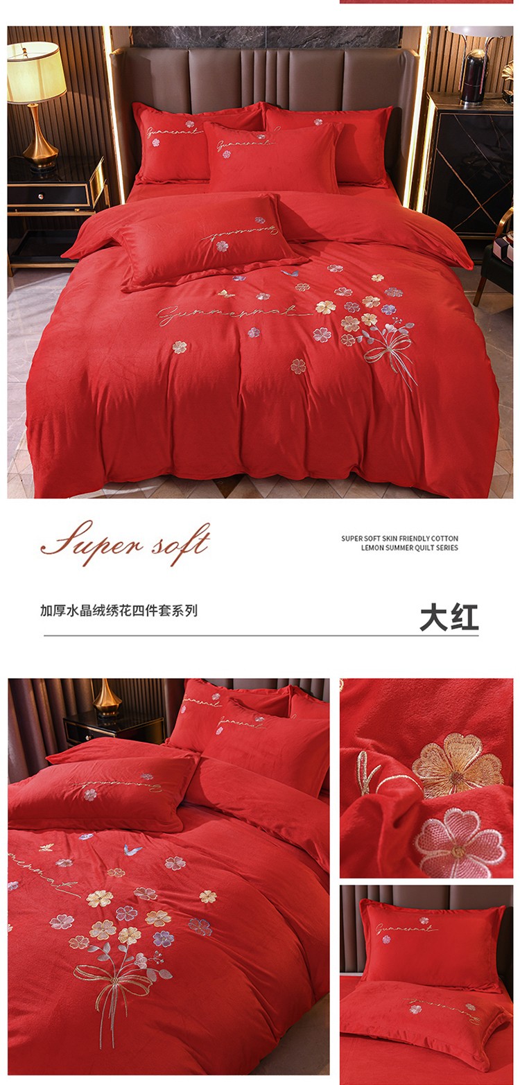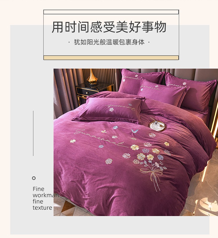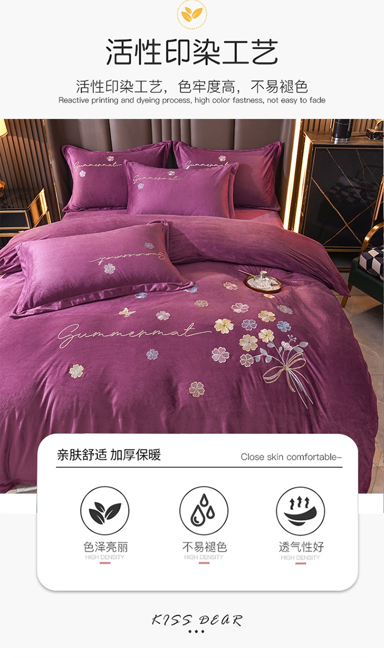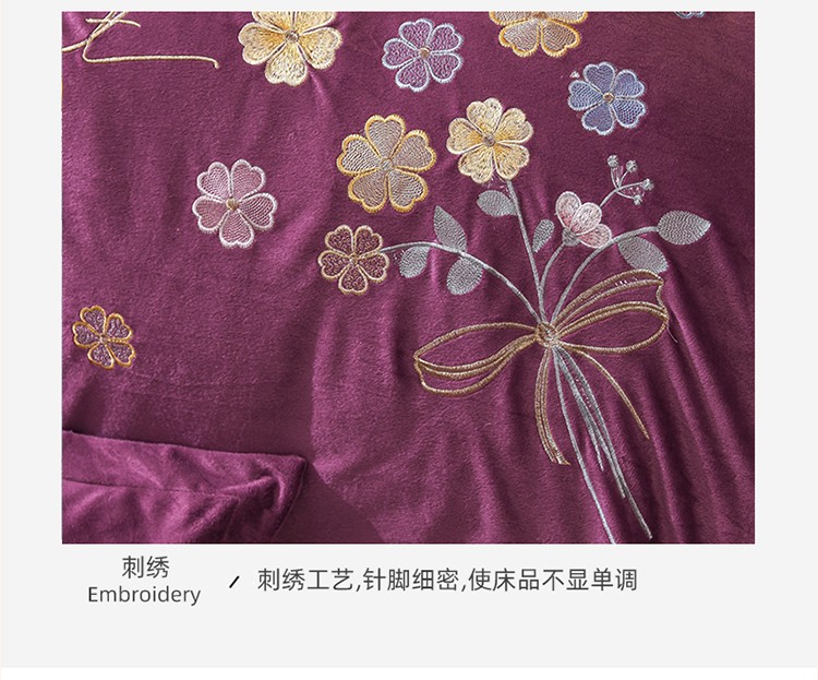 (总)金米诺 2024新款牛奶绒毛巾绣四件套,大红,淡雅青,豆绿,豆沙,粉玉,高级灰,紫色