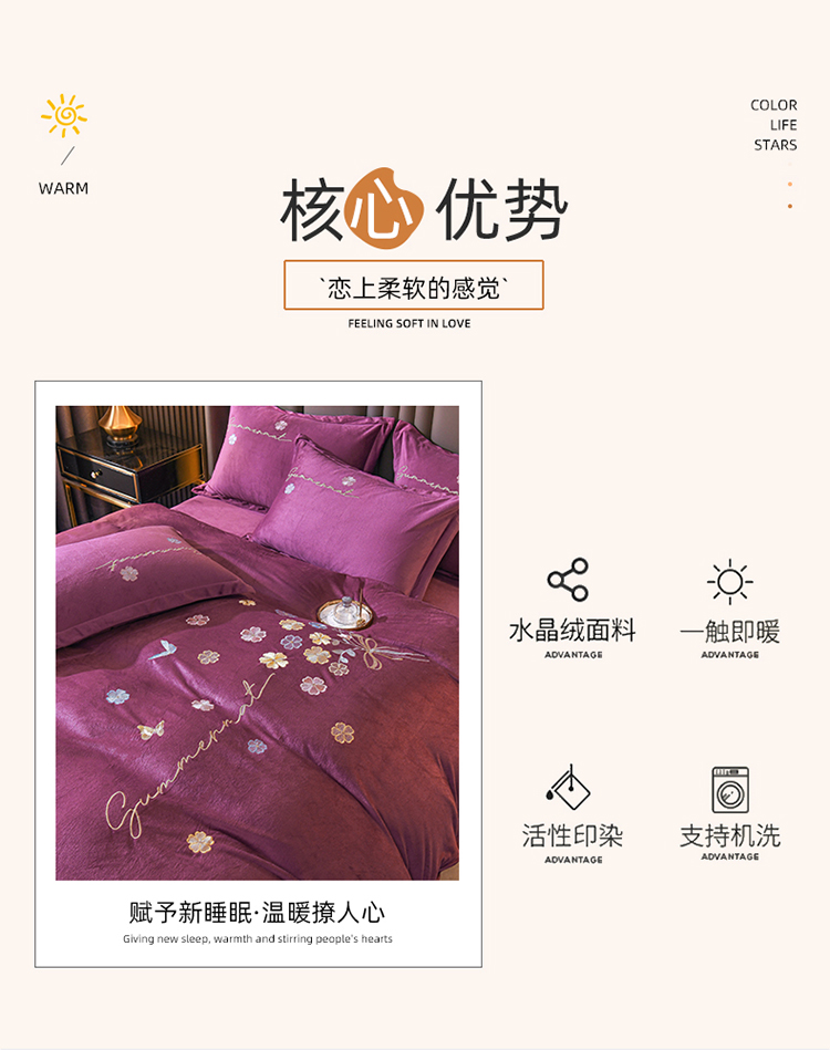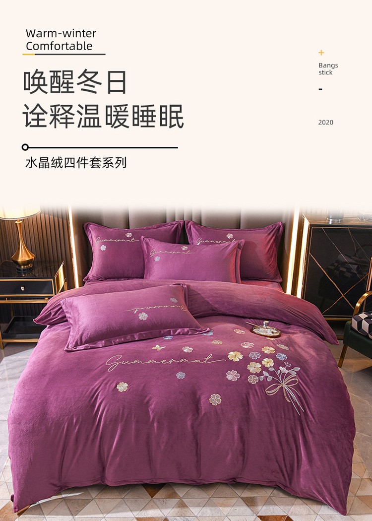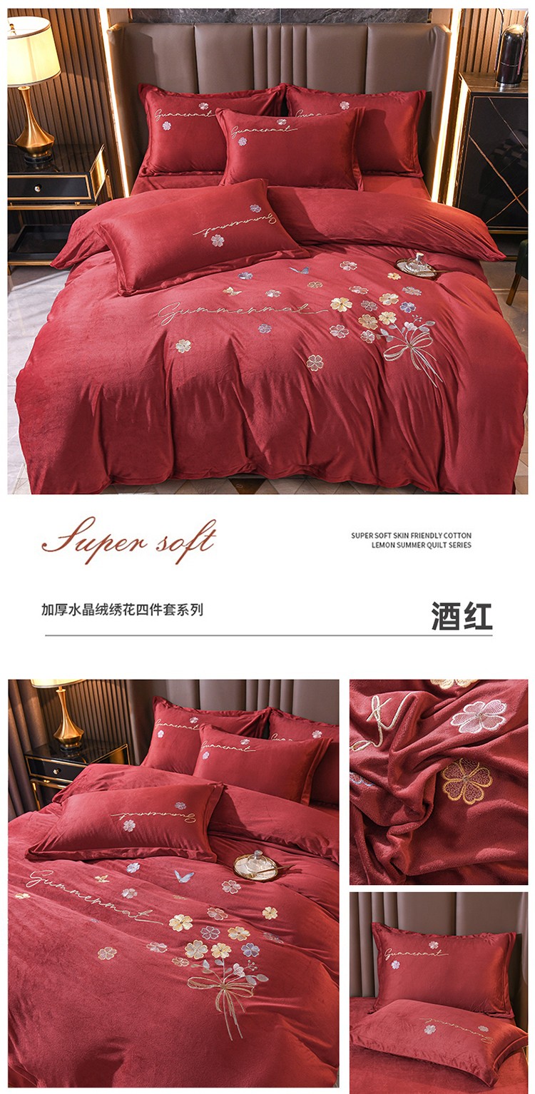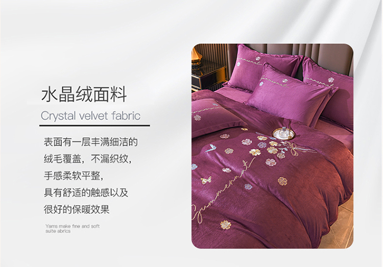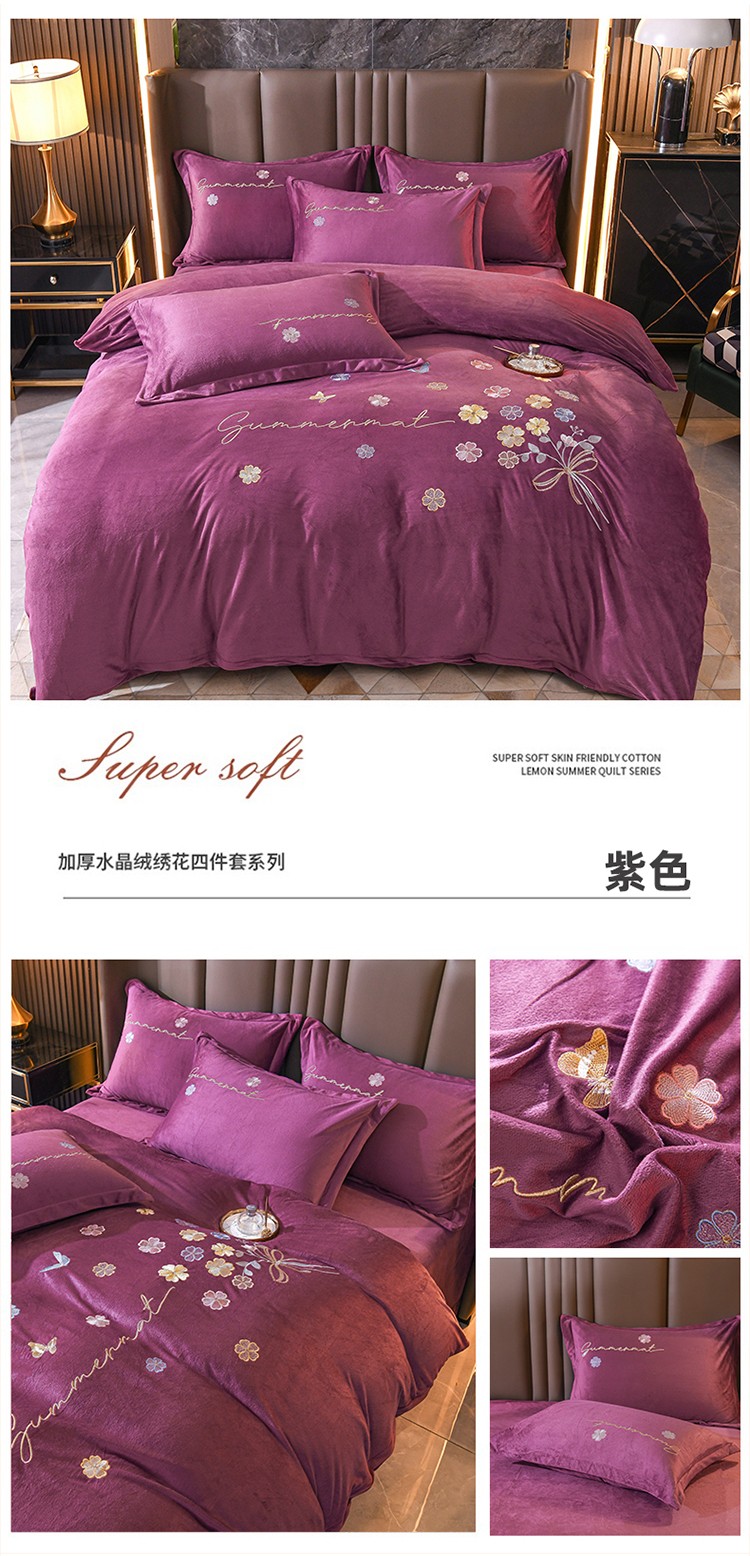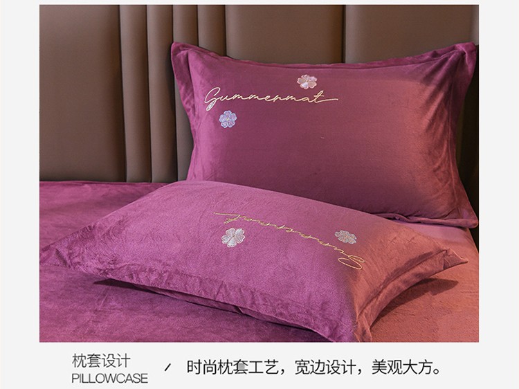 (总)金米诺 2024新款牛奶绒毛巾绣四件套,大红,淡雅青,豆绿,豆沙,粉玉,高级灰,紫色