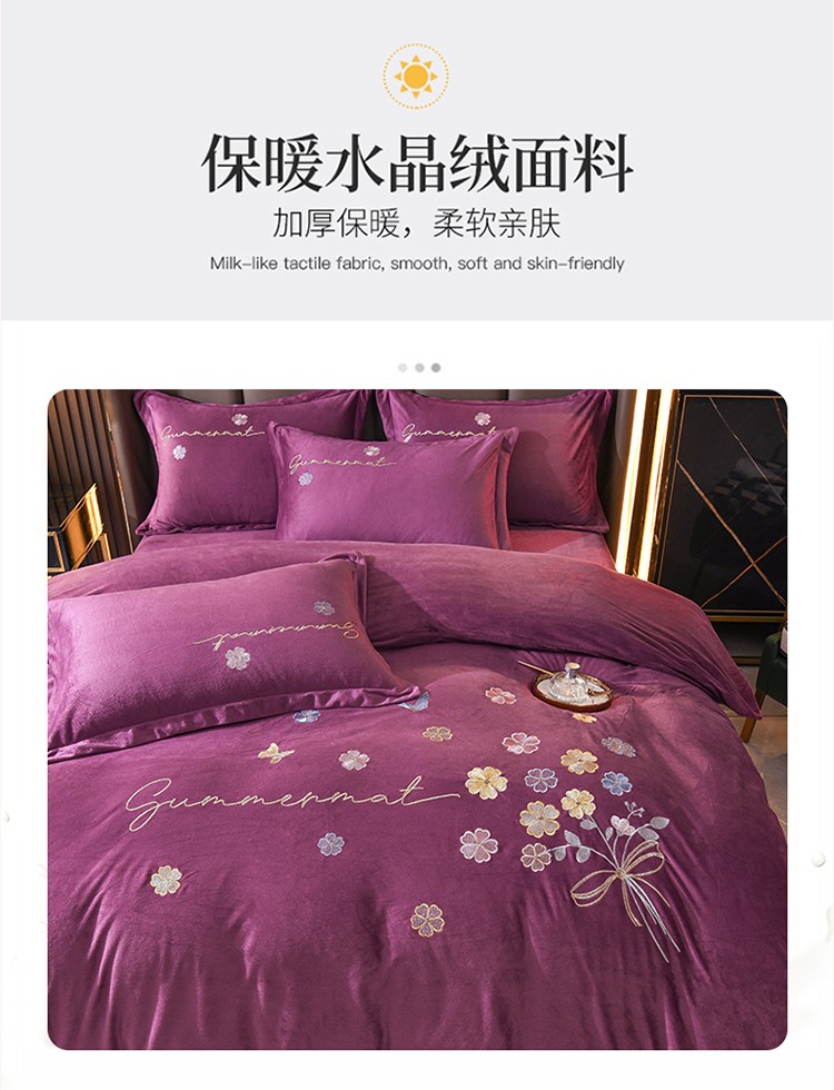总金米诺 直播供货纯色水晶牛奶绒四件套小清新床裙式 花之境
