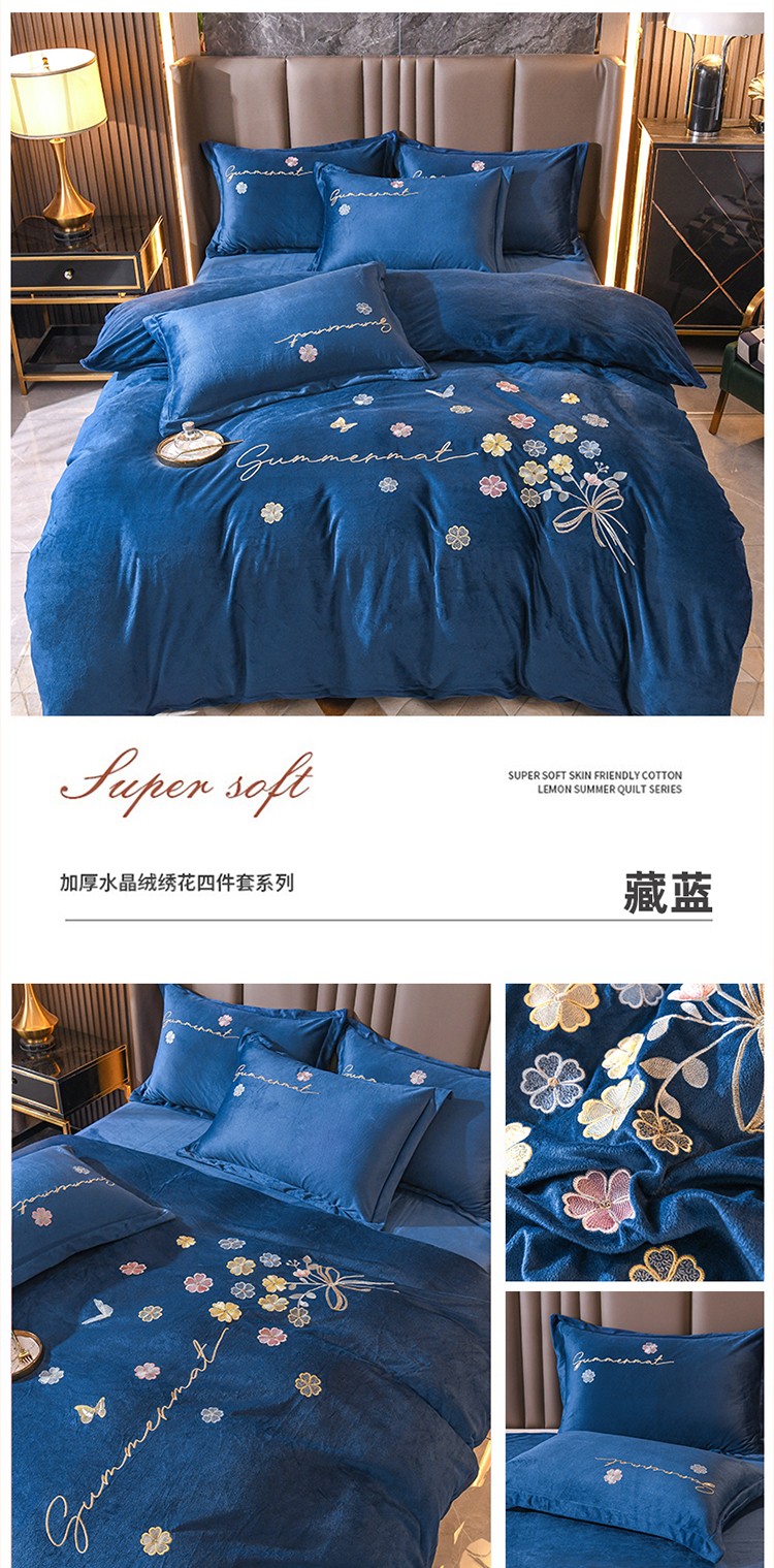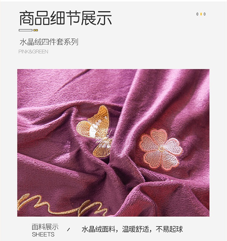 商品名称:总金米诺 直播供货纯色水晶牛奶绒四件套小清新床裙式 花之境