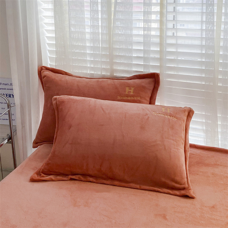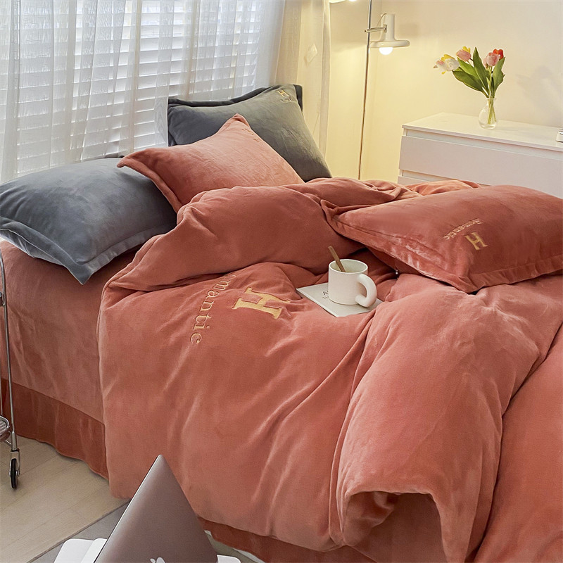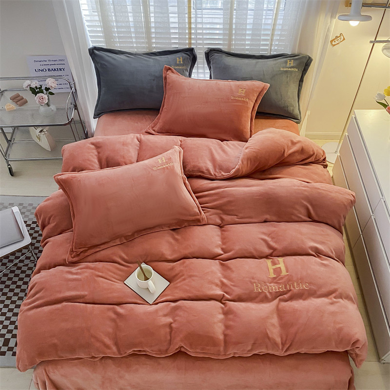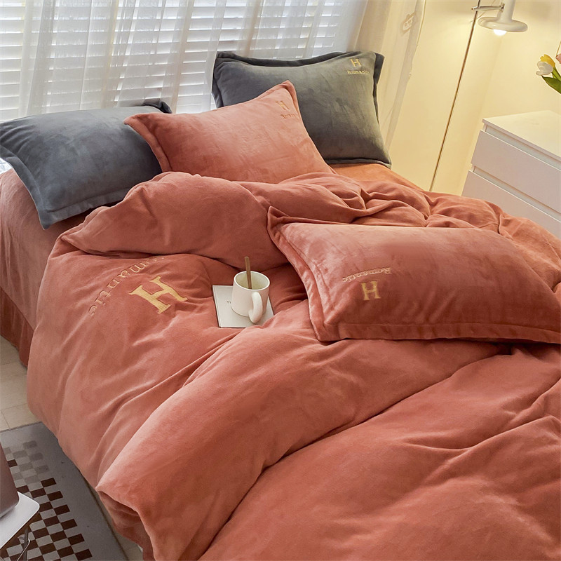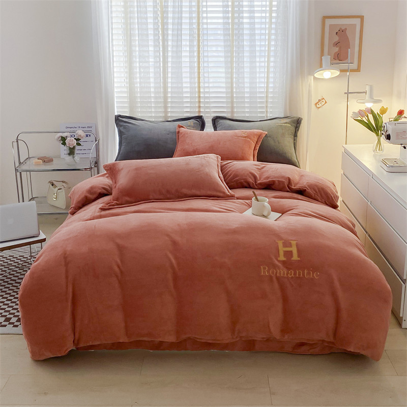 爱洛 2022新款200克7.5斤纯色刺绣花牛奶绒四件套 牛奶绒-活力橙