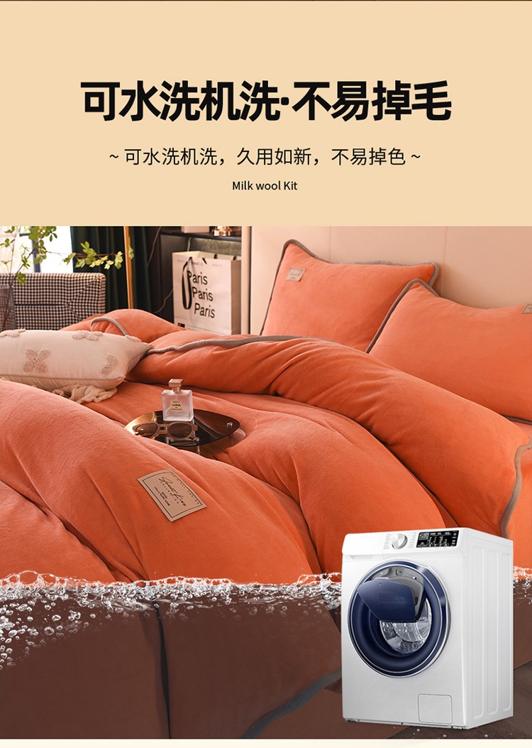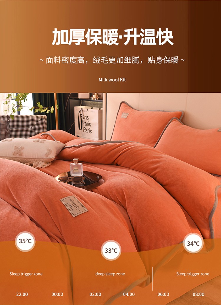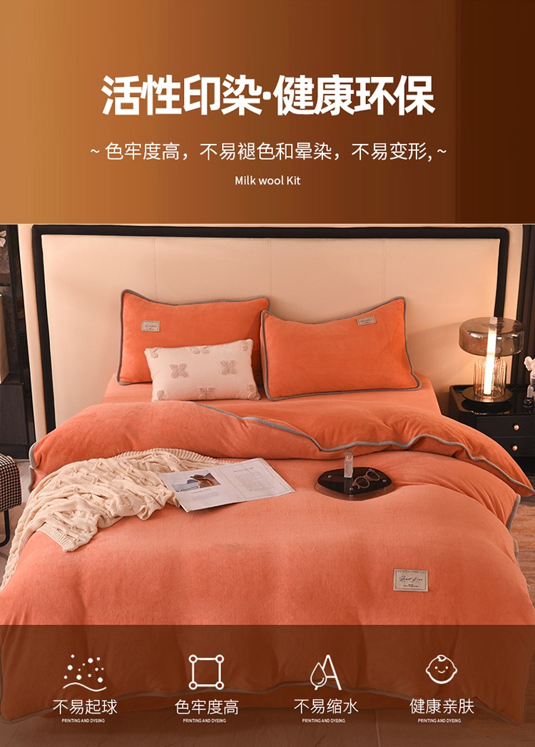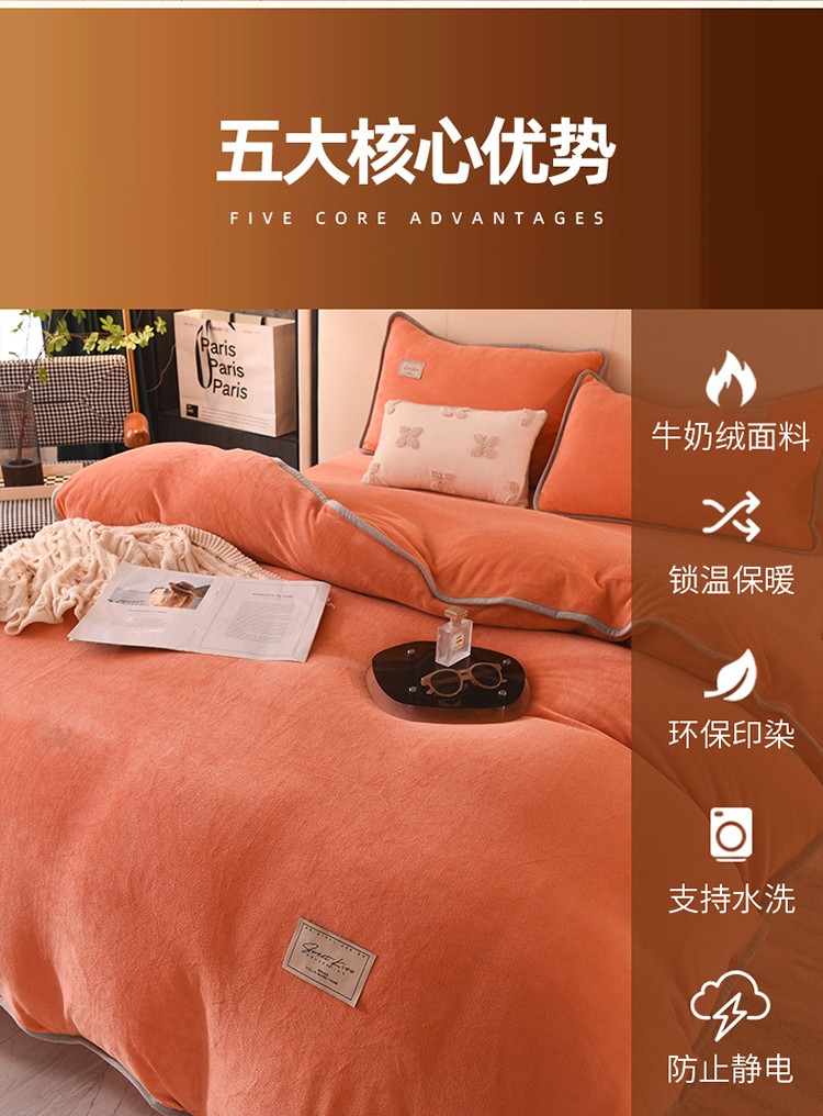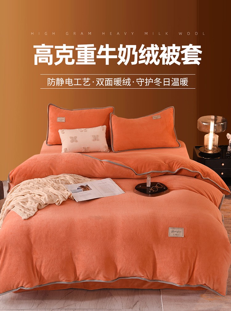 • 91家纺网 家纺一手货源 找家纺 518 2025新款220克牛奶绒纯色系列被套可定制 初恋橘