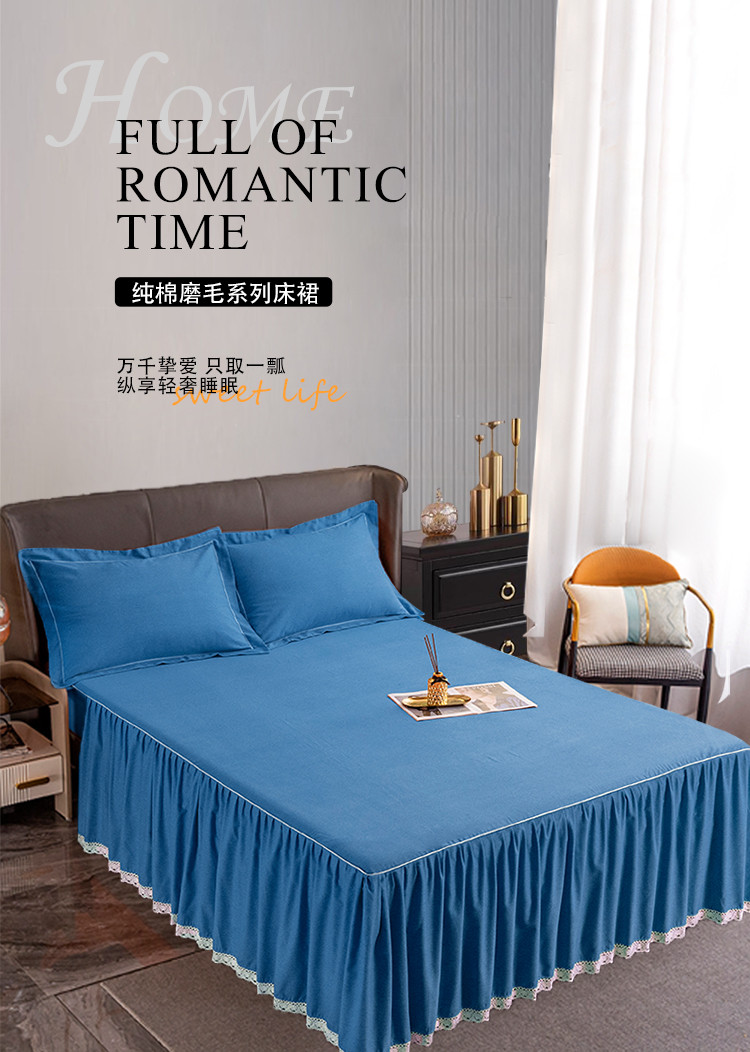 纽缦 2022新款纯棉磨毛纯色床裙 宝石蓝床裙