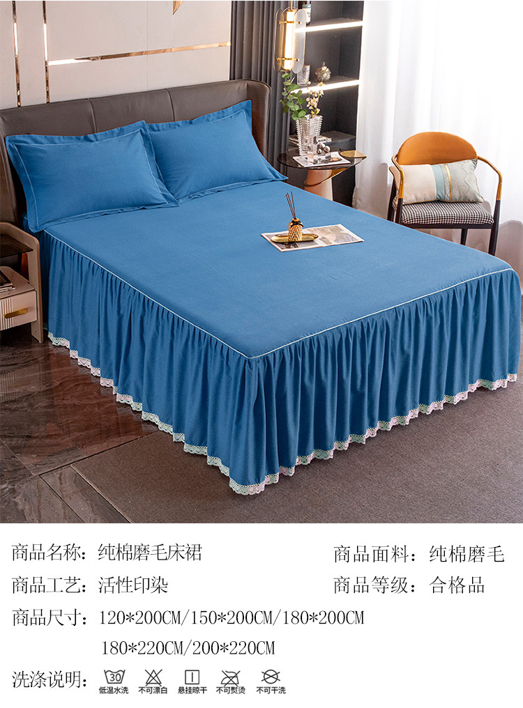 商品名称:纽缦 2022新款纯棉磨毛纯色床裙 宝石蓝床裙