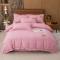 纽缦 2022新款纯棉加厚纯色绣花款床裙四件套 满朝欢豆沙粉