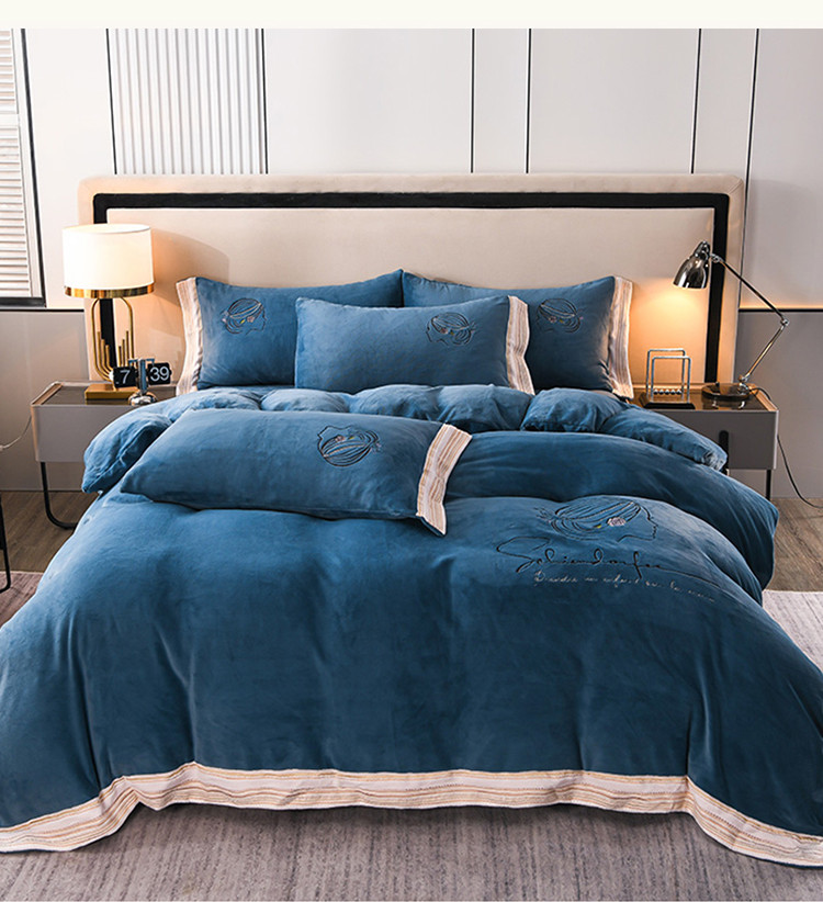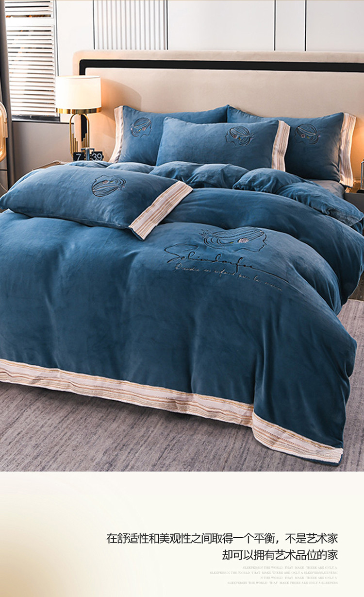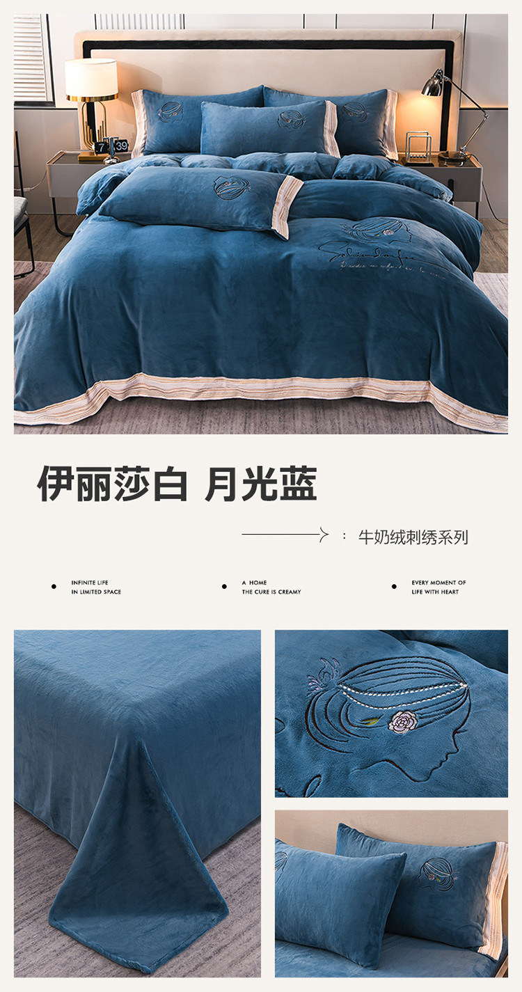 商品名称:金麦2022新款230克全消光A类牛奶绒四件套伊丽莎白月光蓝