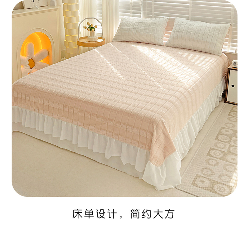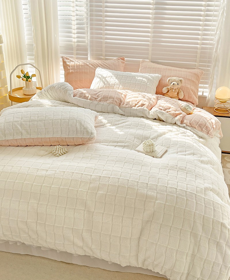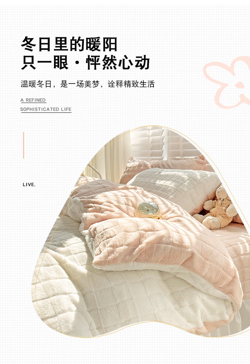 山茶家纺 2022新款双面兔毛绒四件套 兔绒-白拼玉