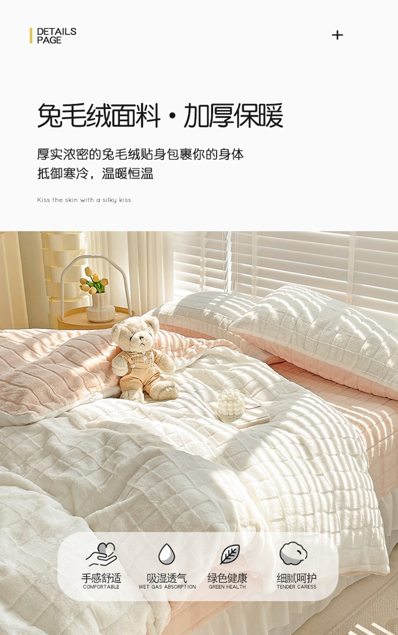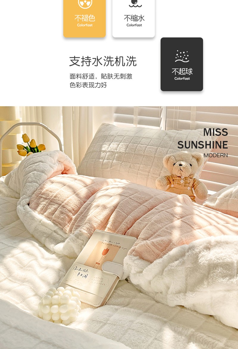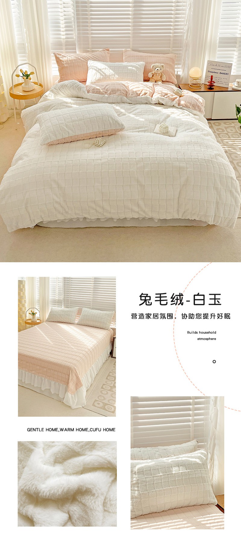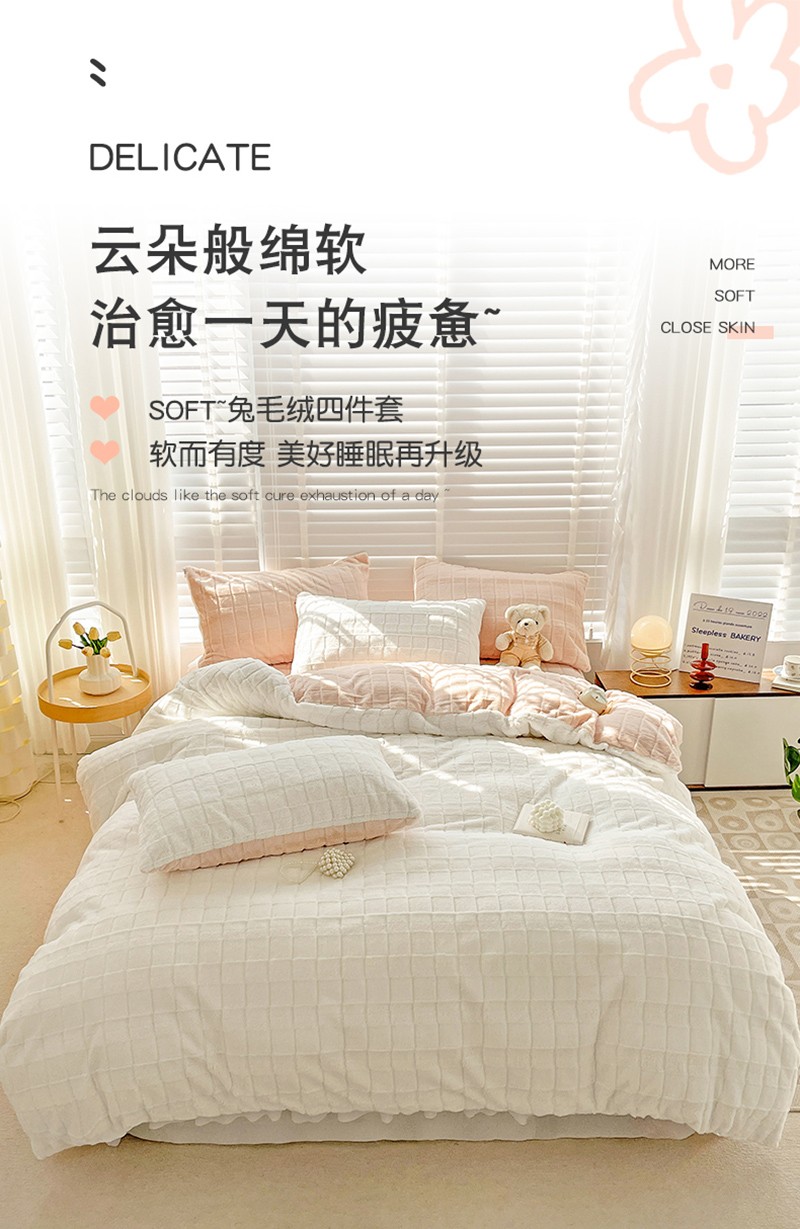 商品名称:山茶家纺 2022新款双面兔毛绒四件套 兔绒-白拼玉
