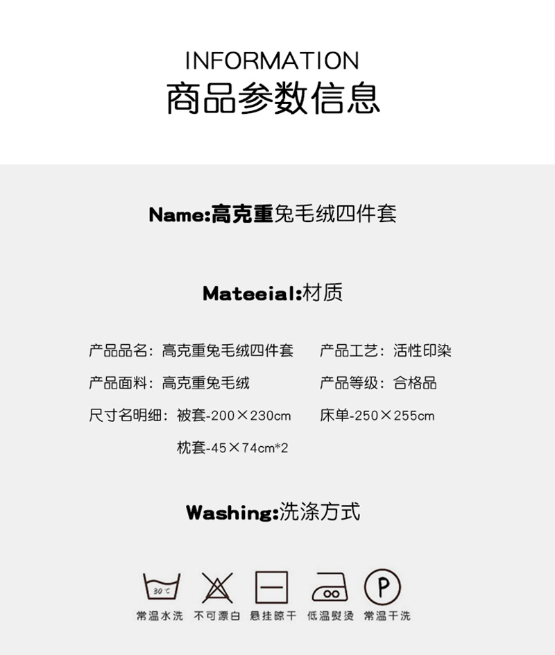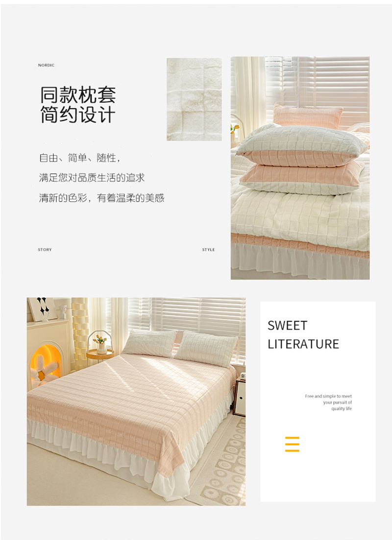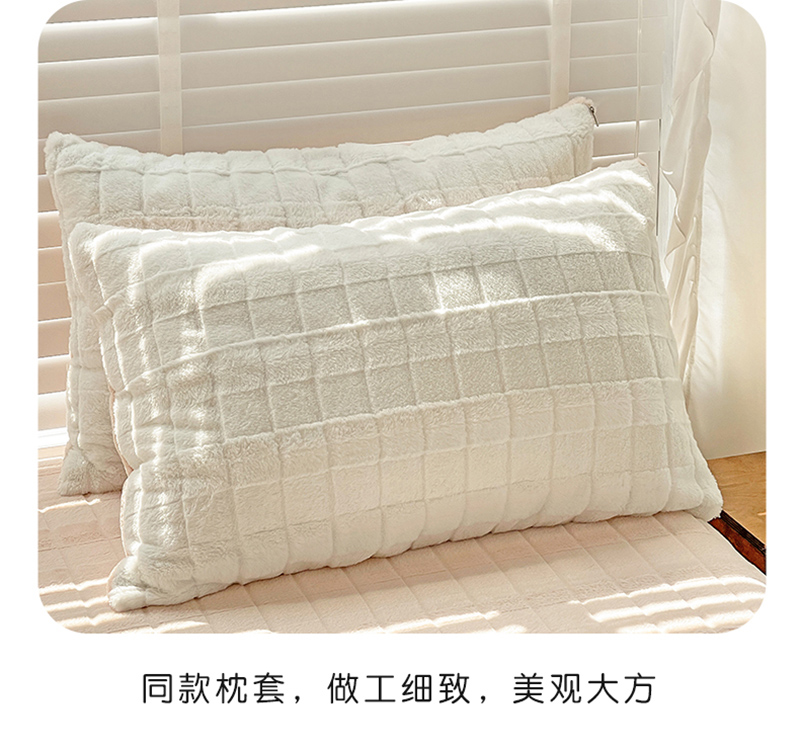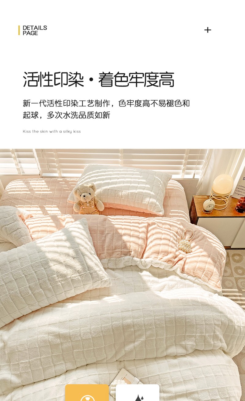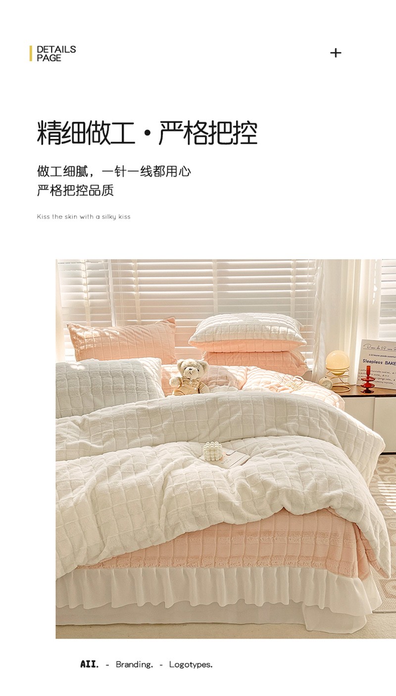 商品名称:山茶家纺 2022新款双面兔毛绒四件套 兔绒-白拼玉