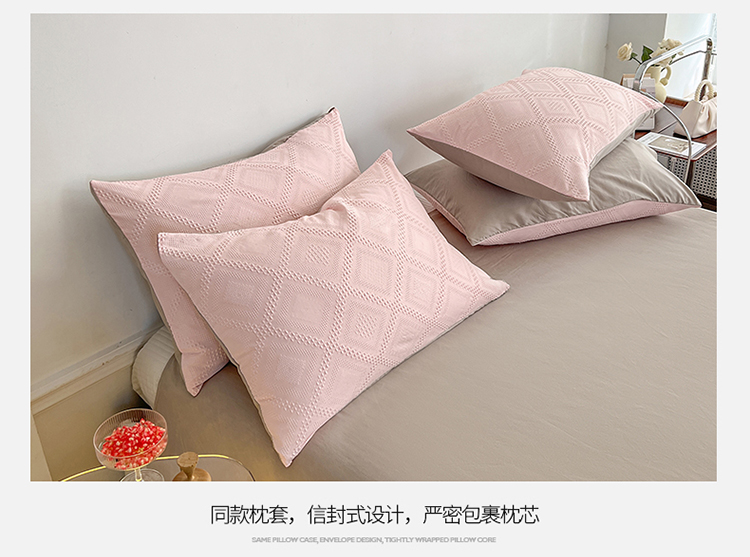 (总)米粒 2022直播爆款纯色AB版华夫格四件套磨毛水洗棉