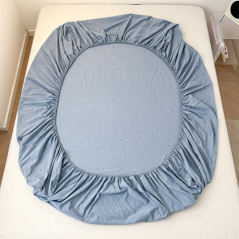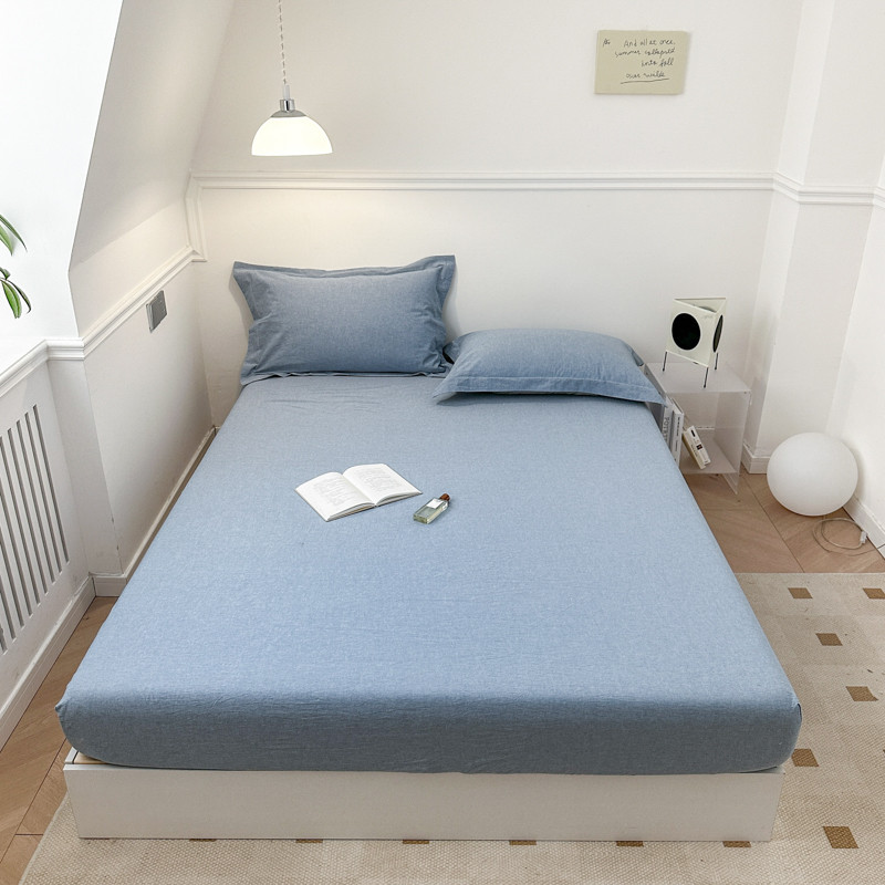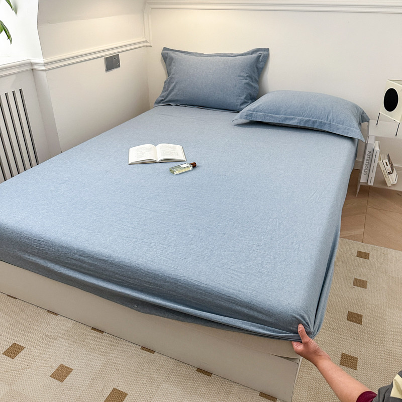 嘉汀兰 2023新款全棉色织水洗棉纯色撞色款单床笠 清雅兰