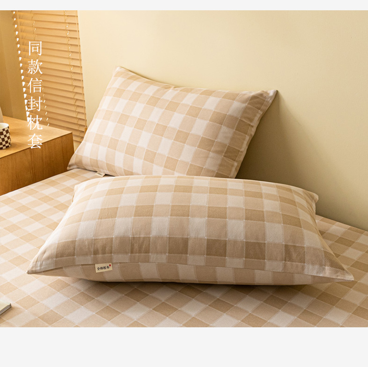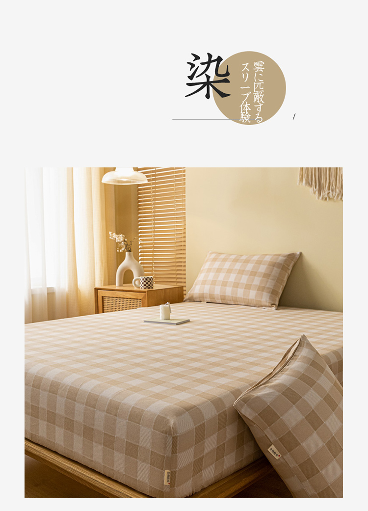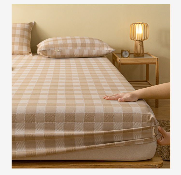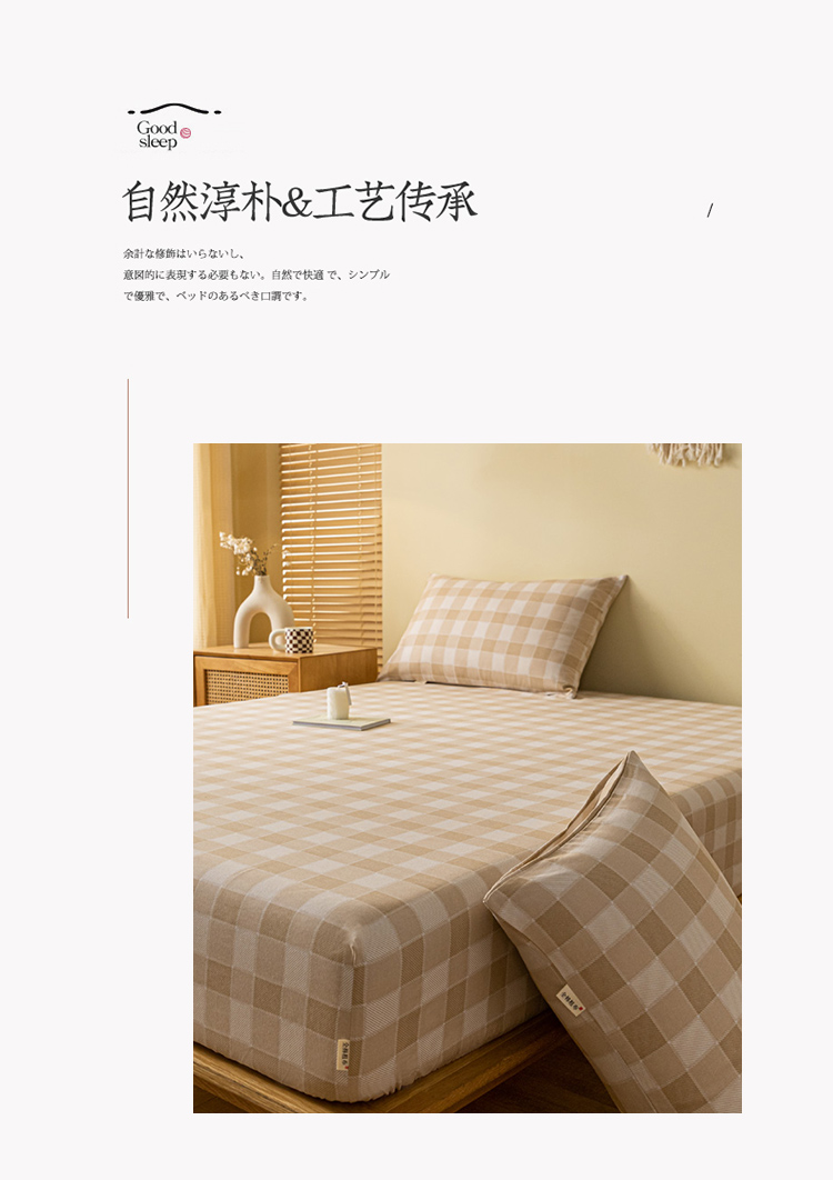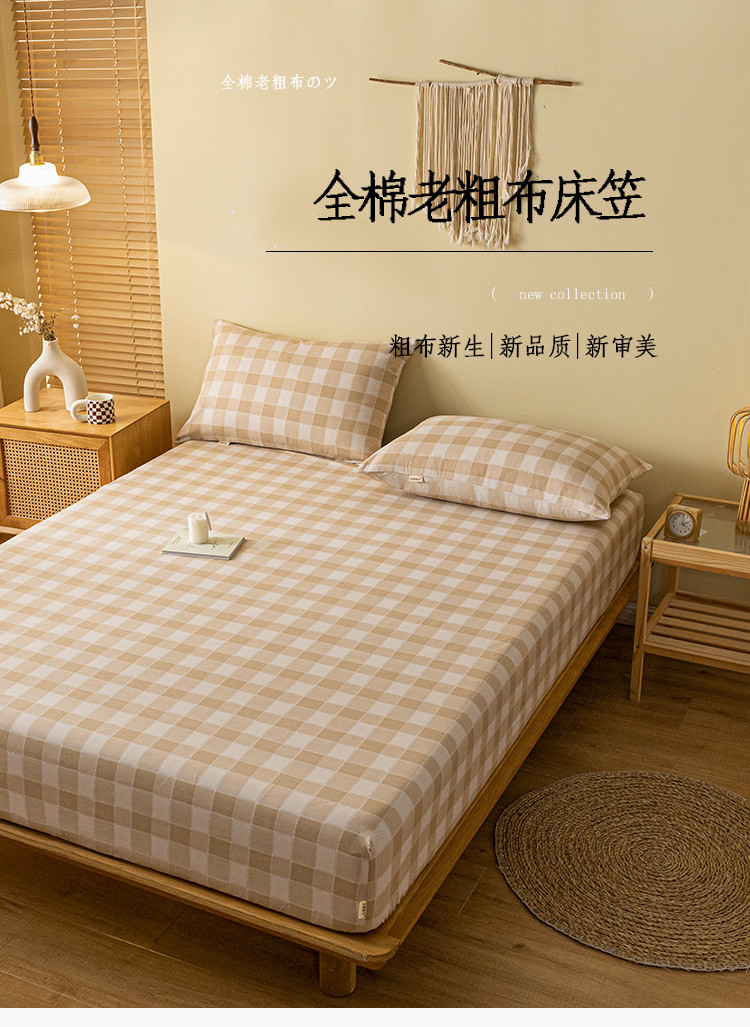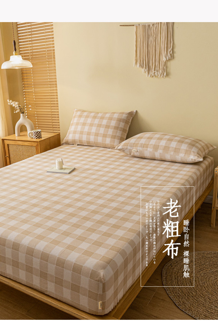 卧趣家纺 2023新款全棉老粗布单品系列单床笠 锦格-棕