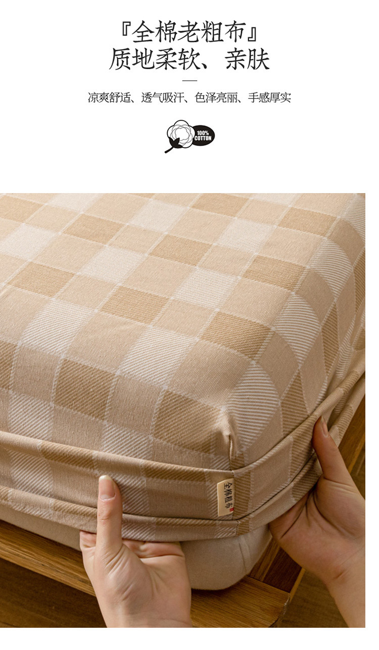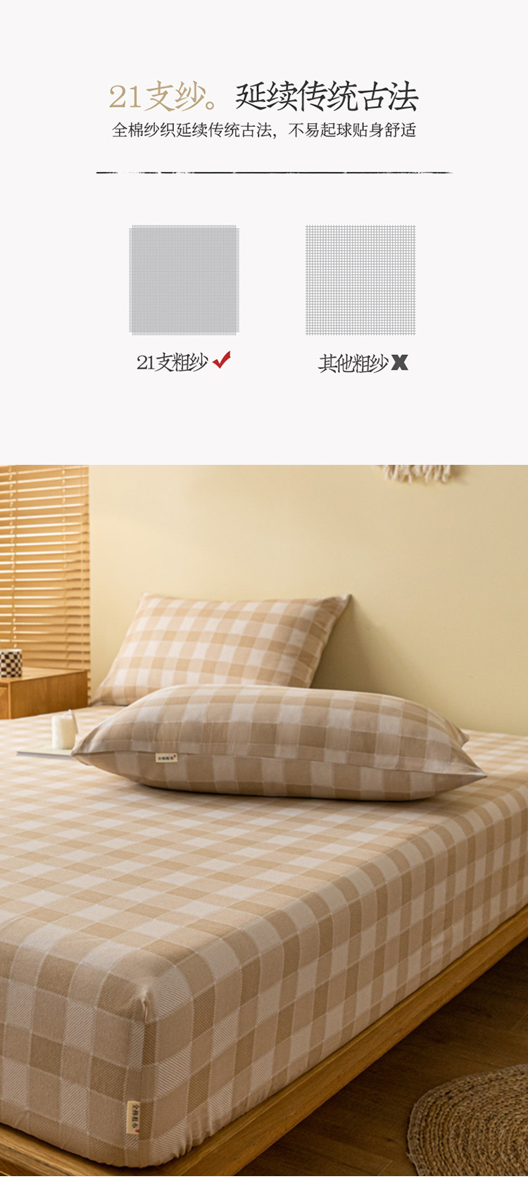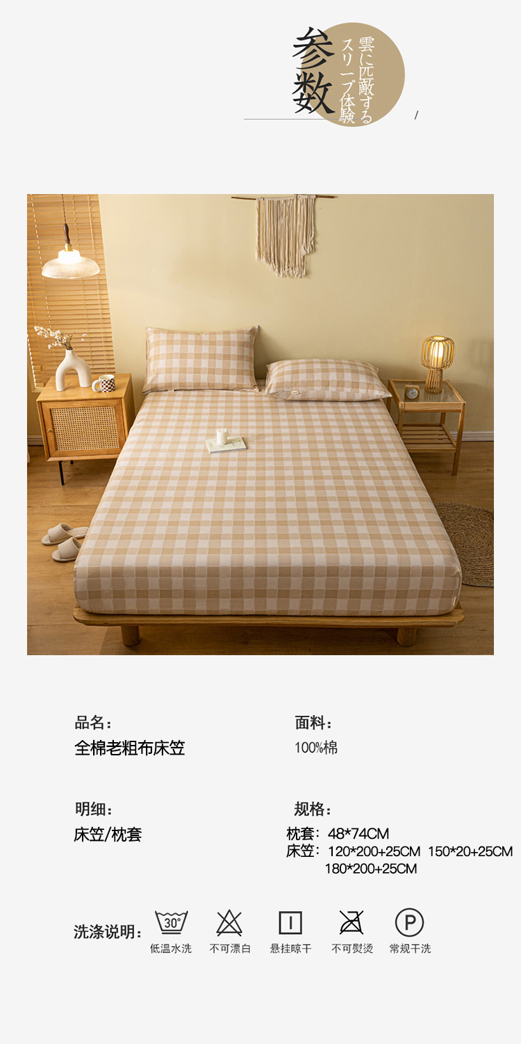 商品名称:卧趣家纺 2023新款全棉老粗布单品系列单床笠 锦格-棕