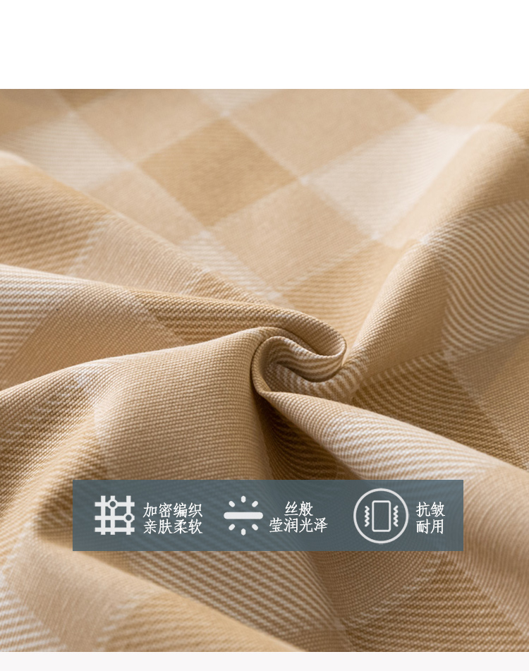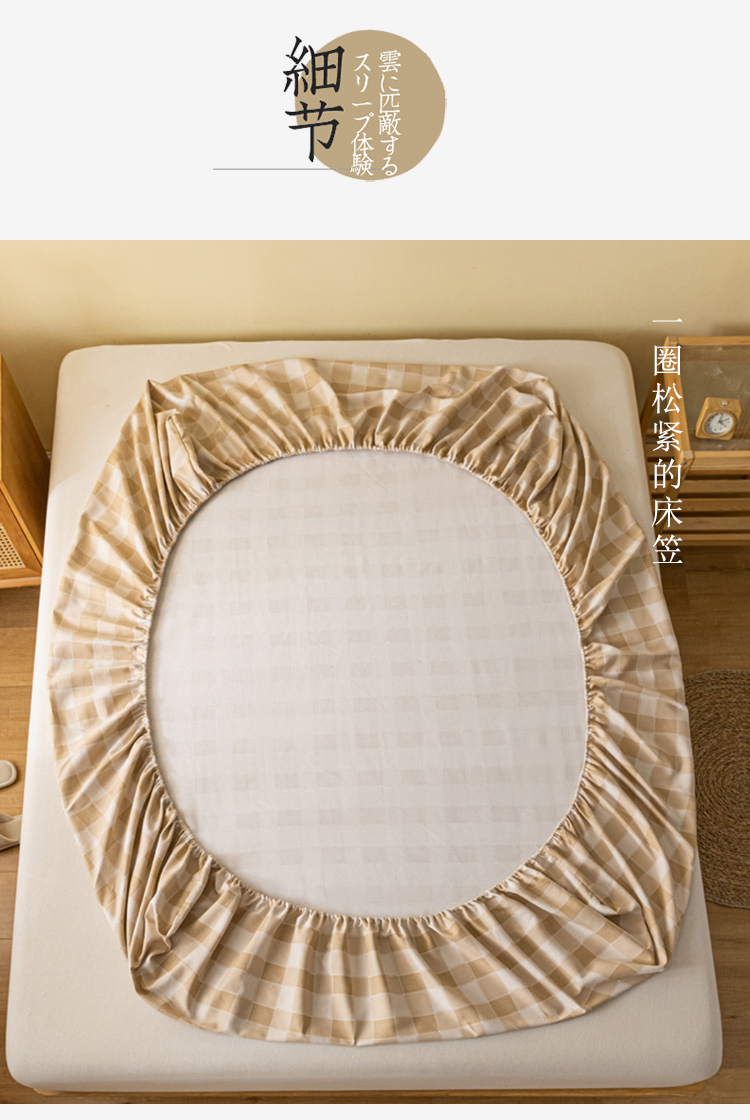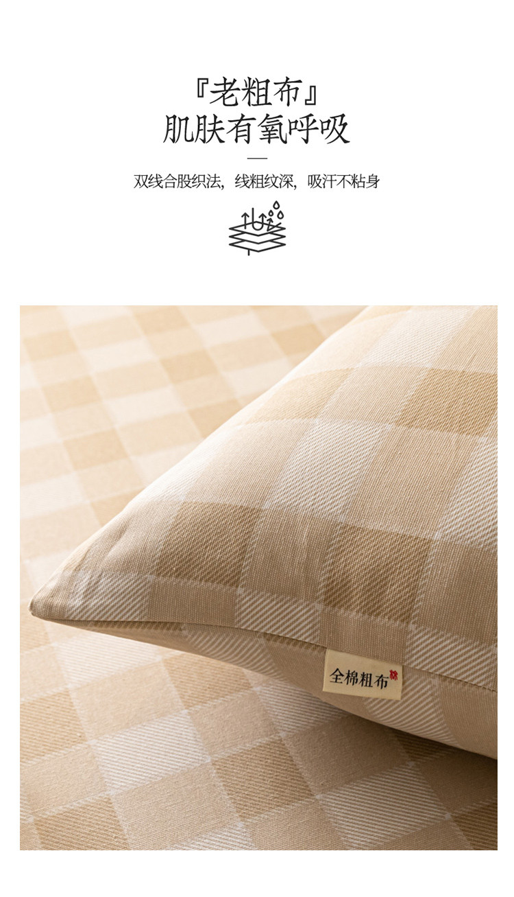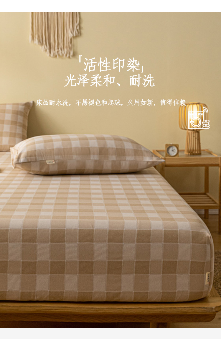 商品名称:卧趣家纺 2023新款全棉老粗布单品系列单床笠 锦格-棕