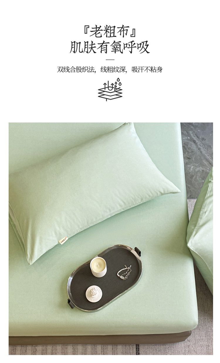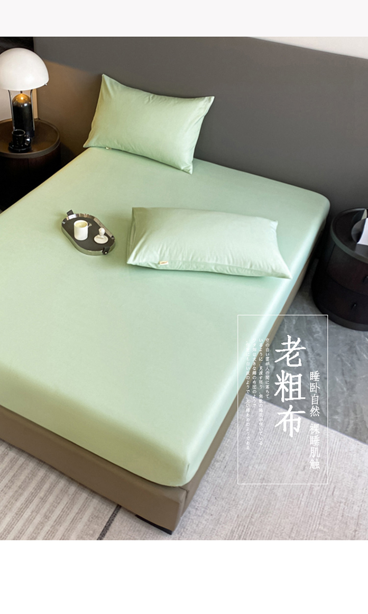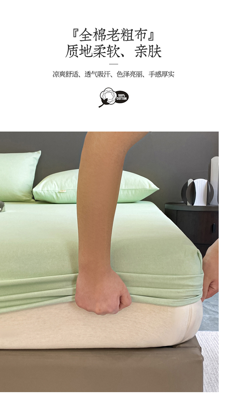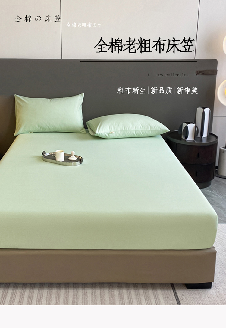 卧趣家纺 2023新款全棉老粗布单品系列单床笠 月白-绿