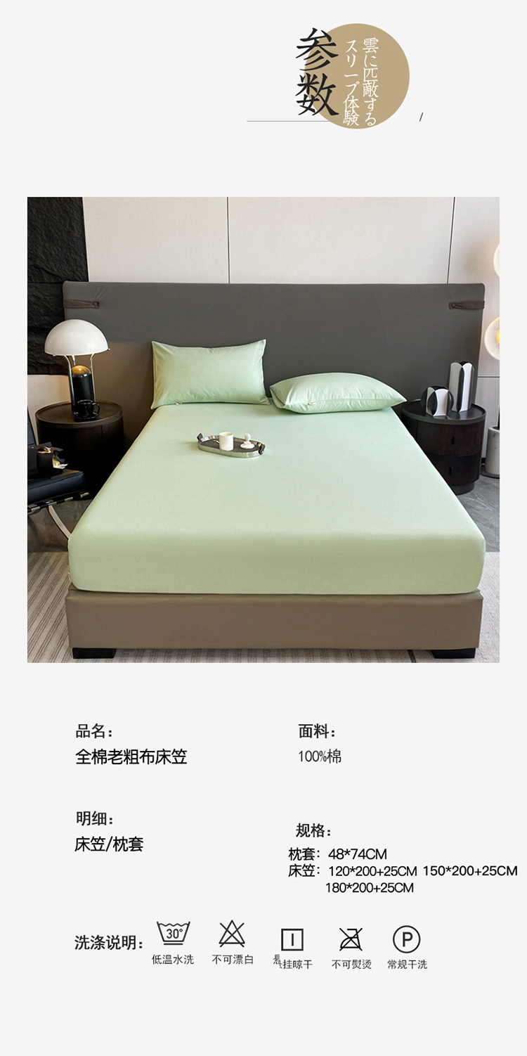 商品名称:卧趣家纺 2023新款全棉老粗布单品系列单床笠 月白-绿
