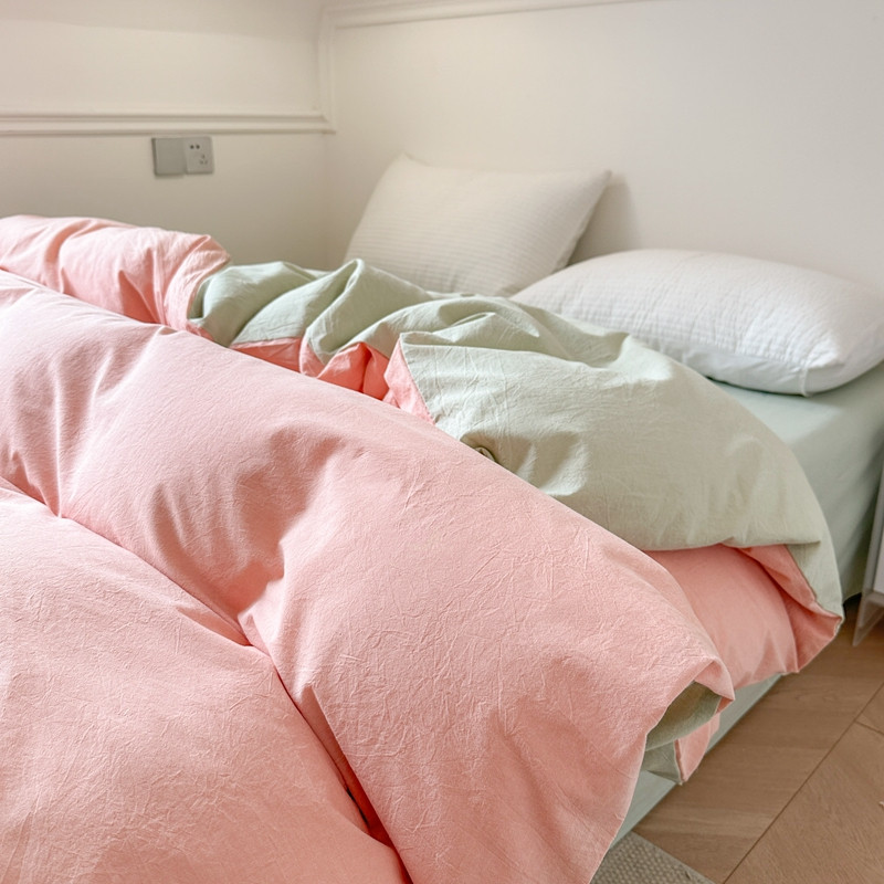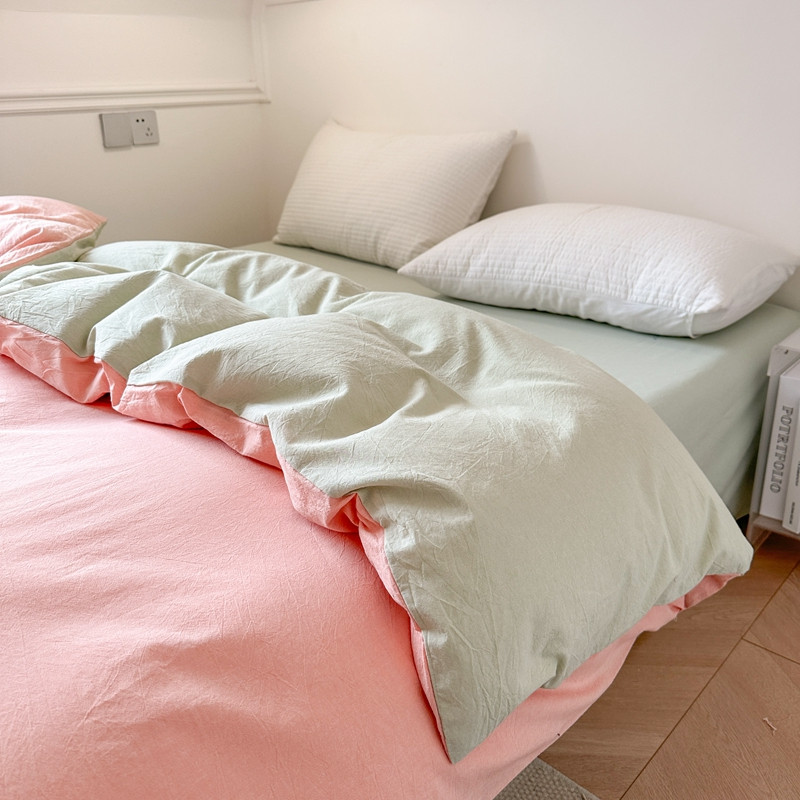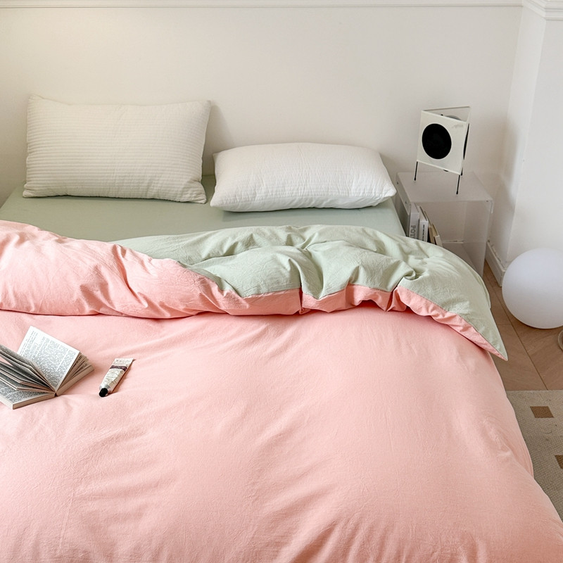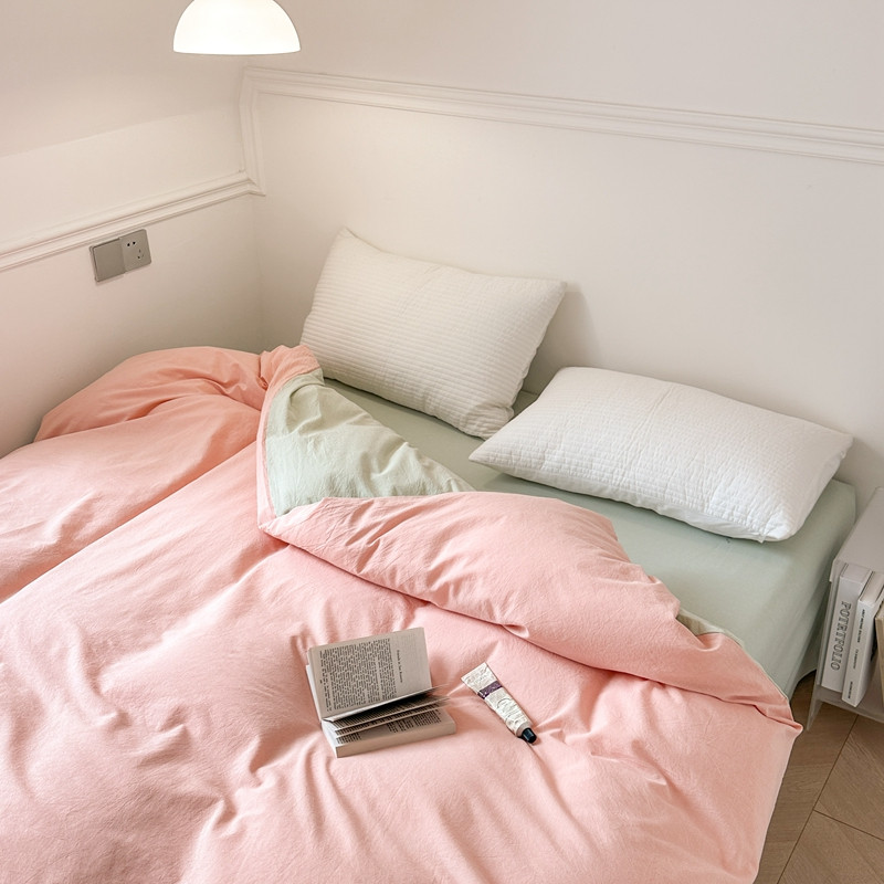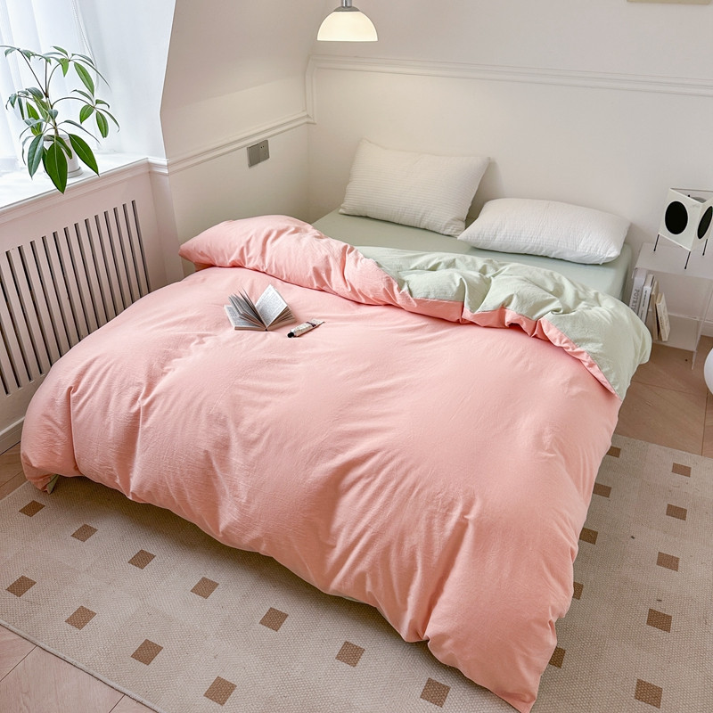 商品名称:嘉汀兰 2023新款全棉色织水洗棉纯色撞色款单被套 蜜桃舒芙蕾