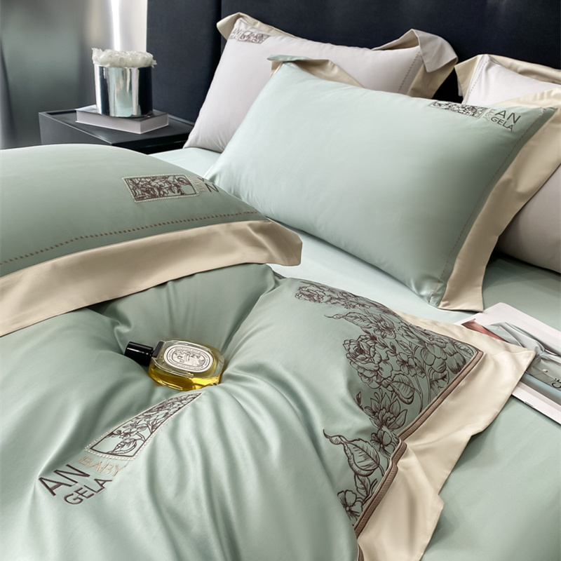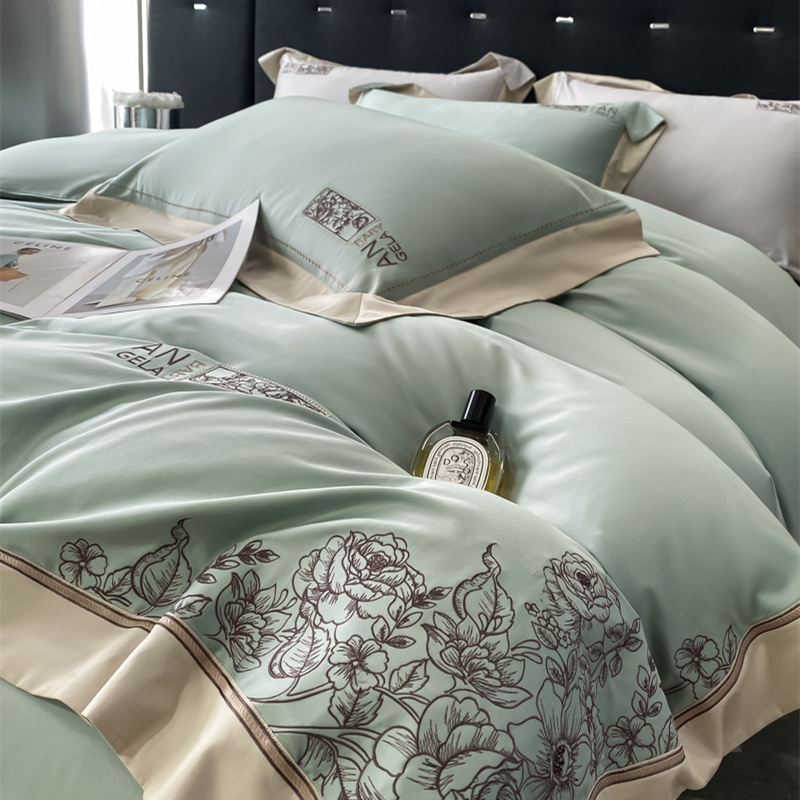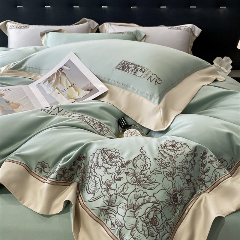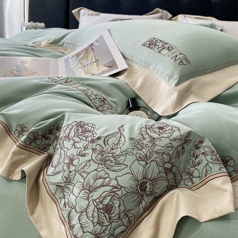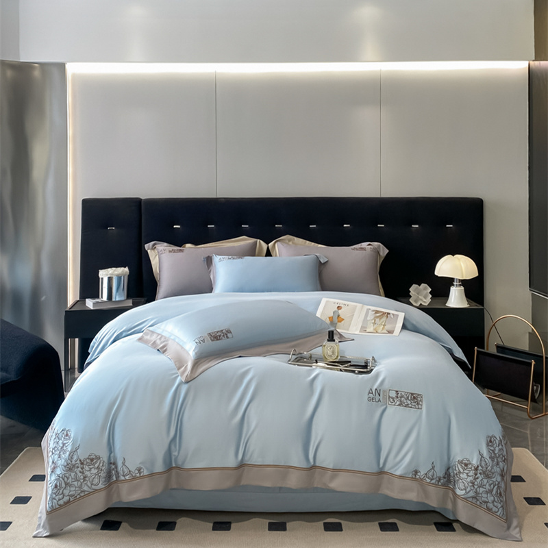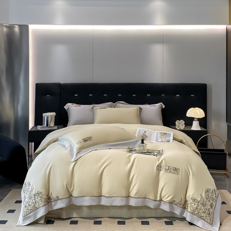 (总)玖玖爱家纺 2023新款120支贡缎长绒棉刺绣梦柔系列四件套,梦柔-香槟金,梦柔-香橙桔,梦柔-高级灰,梦柔-水蓝,梦柔-芙蓉玉