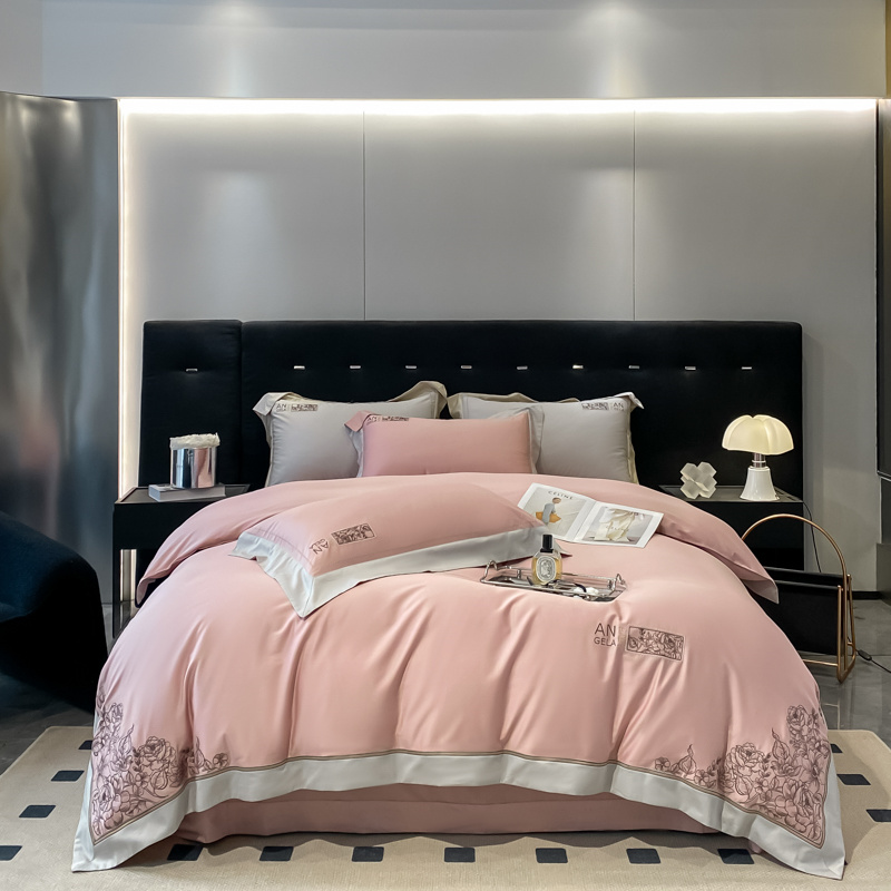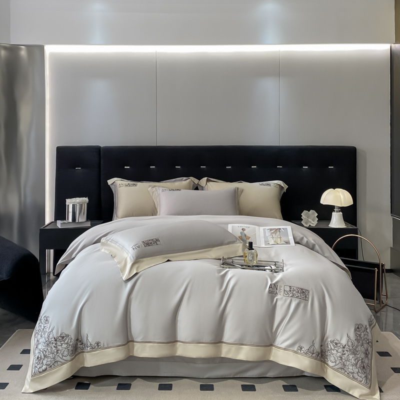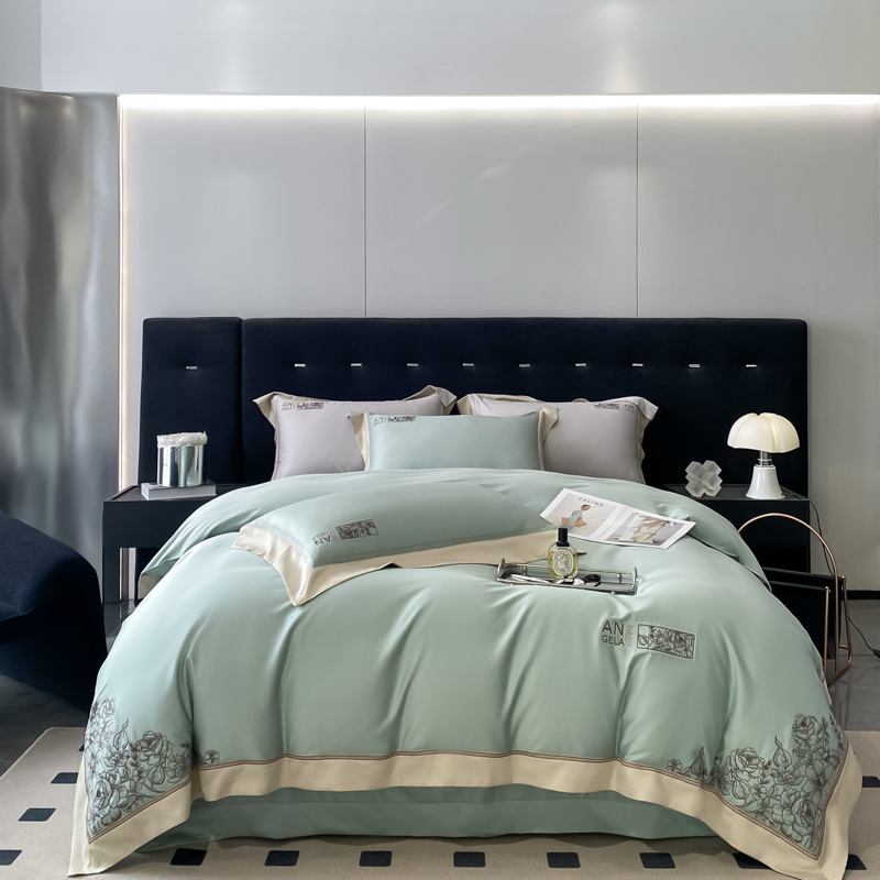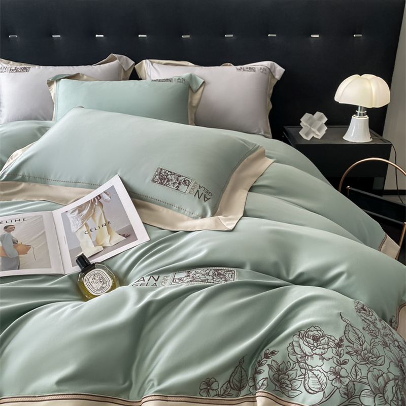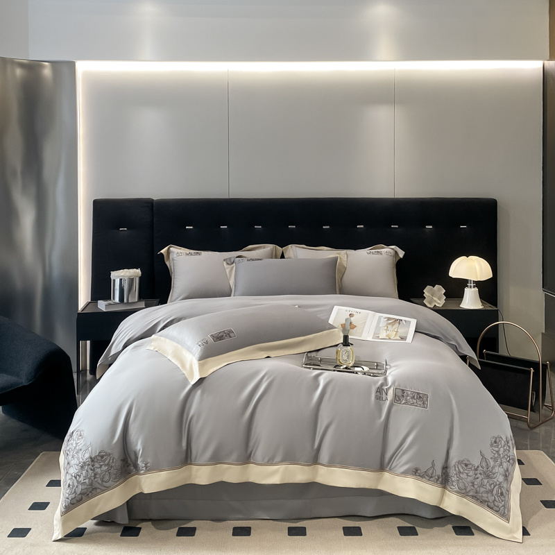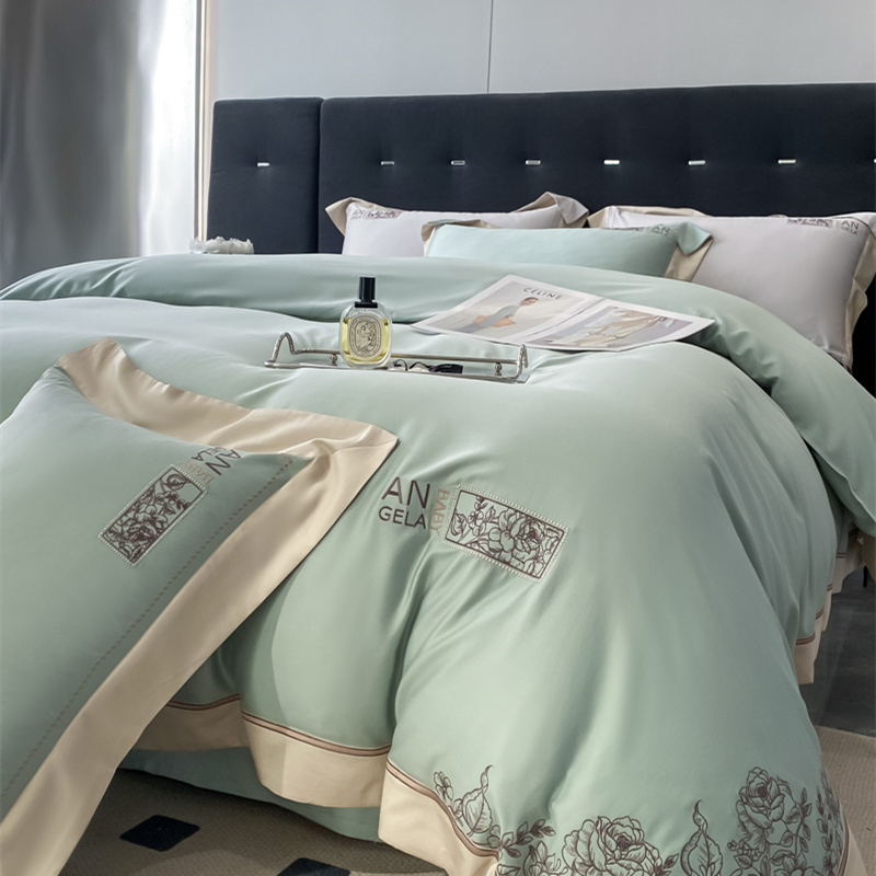 (总)玖玖爱家纺 2023新款120支贡缎长绒棉刺绣梦柔系列四件套,梦柔-香槟金,梦柔-香橙桔,梦柔-高级灰,梦柔-水蓝,梦柔-芙蓉玉