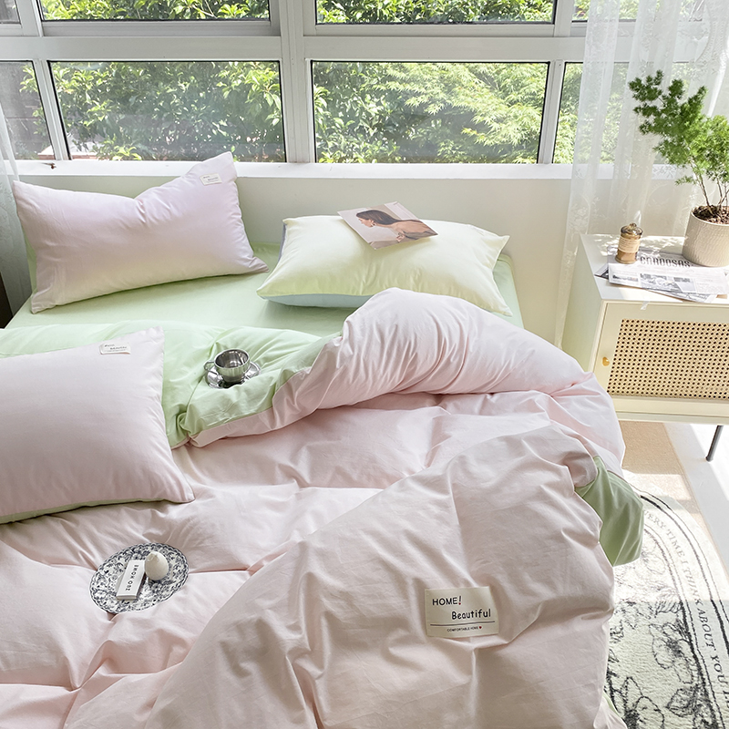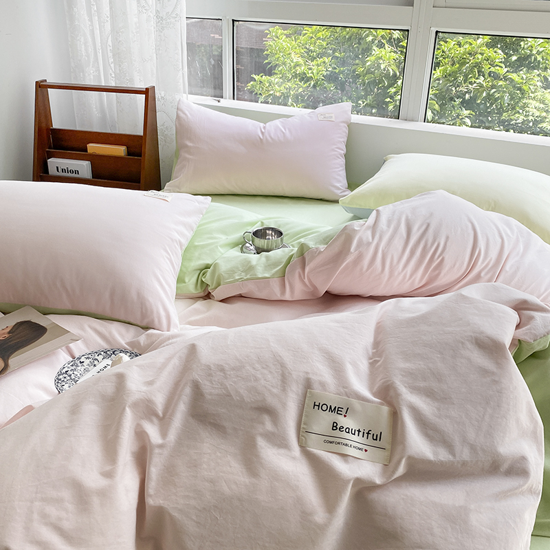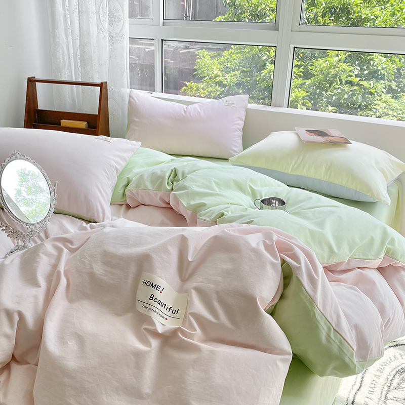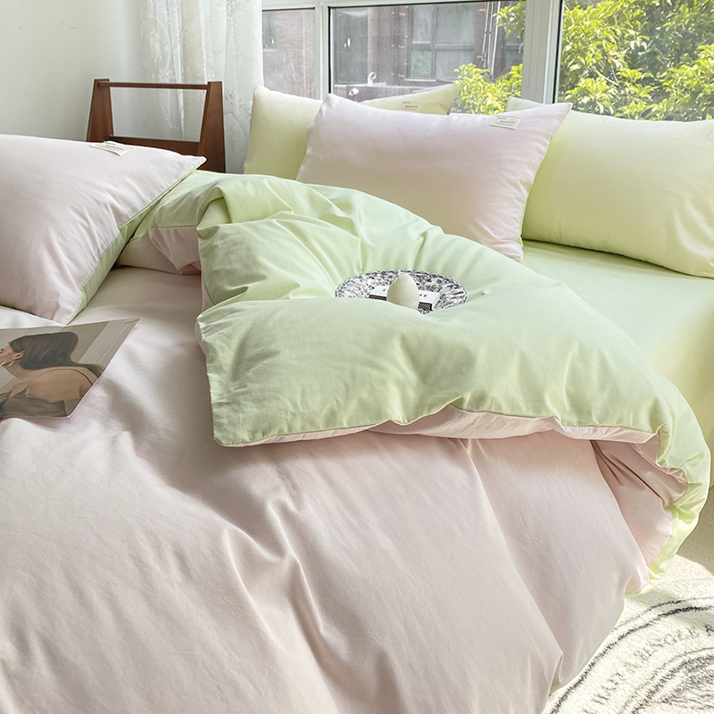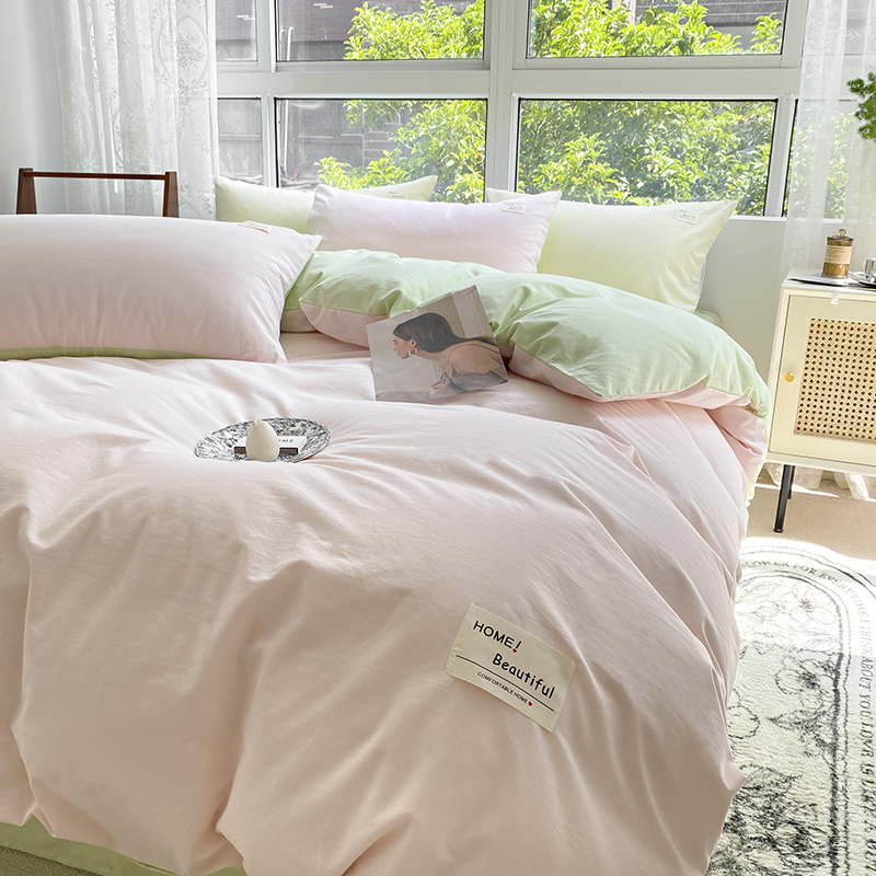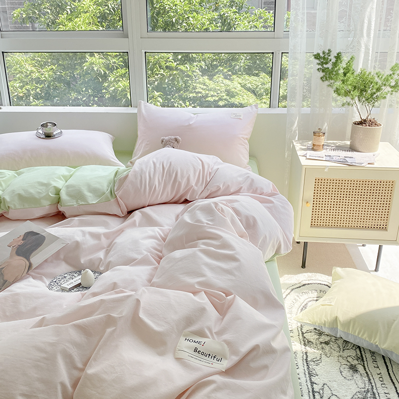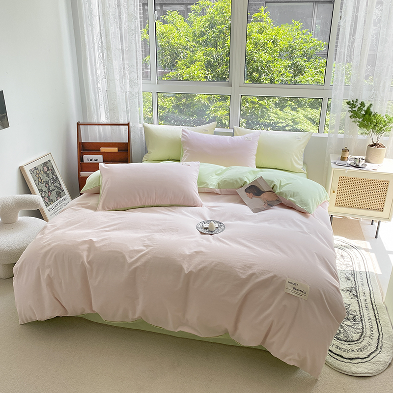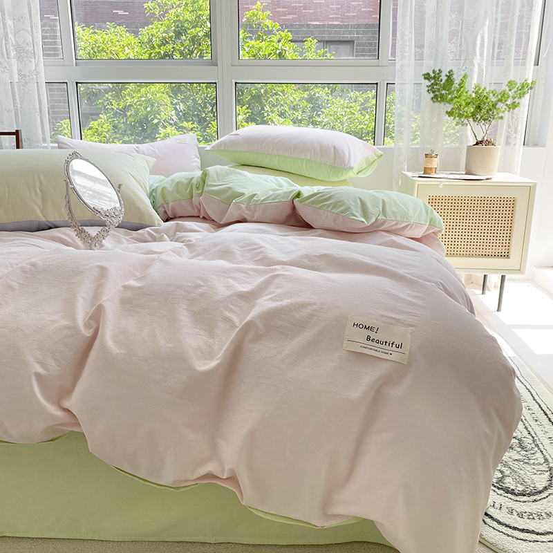(总) 寐居 2023新款双拼全棉水洗棉纯色四件套,ins风-草绿色,ins风-湖绿色,ins风-裸粉色,ins风-迷雾蓝,ins风-奶油黄,ins风-柠檬黄,ins风-樱花粉,鹅黄+香芋紫,焦糖+卡其,军绿+焦糖,米黄+卡其,米黄+深粉,奶油玉+鹅黄,深粉+湖蓝,深蓝+焦糖,藏青+浅灰,绿+牛油果绿,米黄+浅蓝,抹茶绿+橡木黄,奶油玉+橄榄绿,奶油玉+香芋紫,浅豆沙+浅灰,深蓝+灰