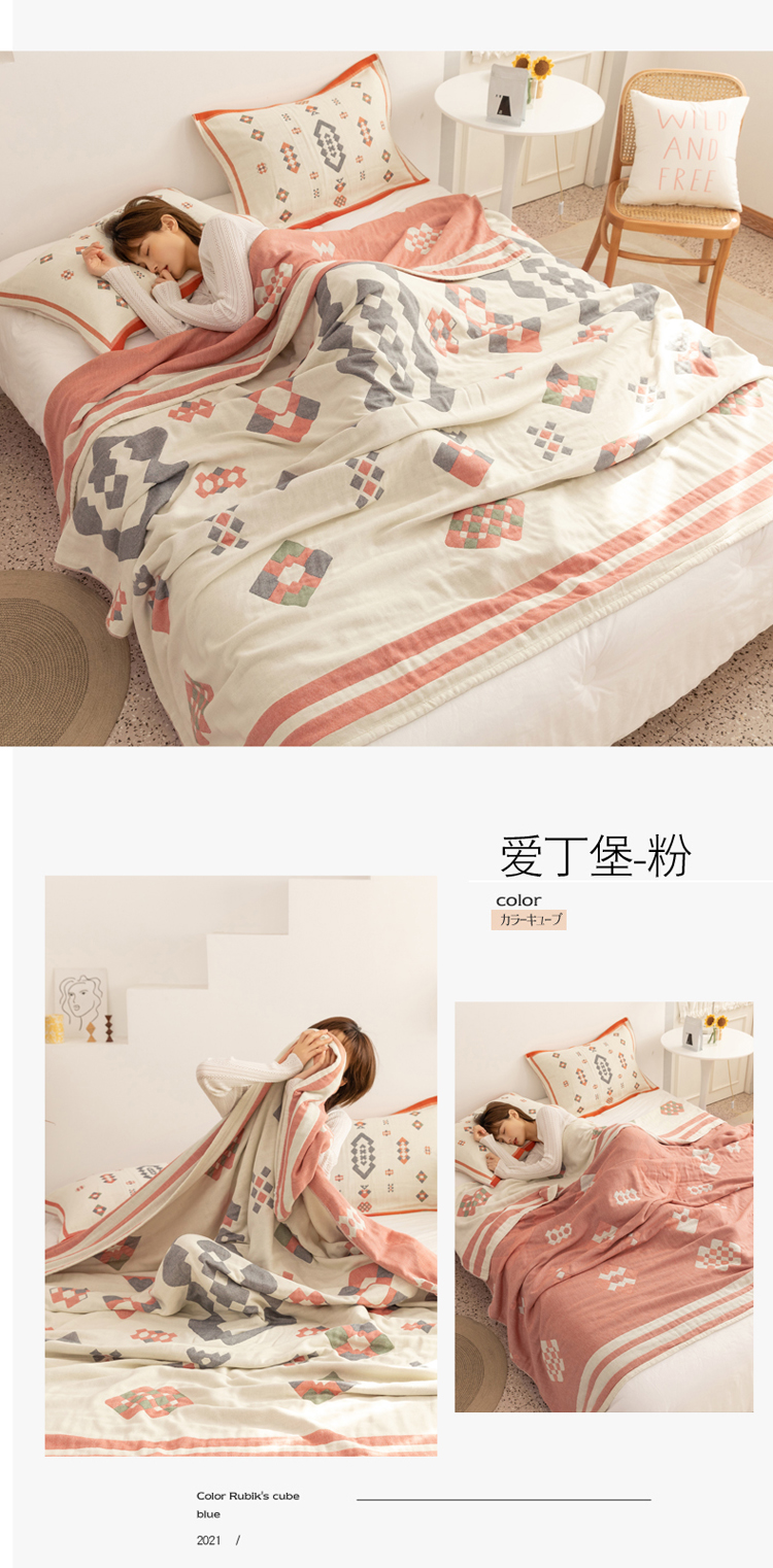 商品名称:朴尔 2023年波西米亚风全棉四层纱布毛巾被 爱丁堡-粉