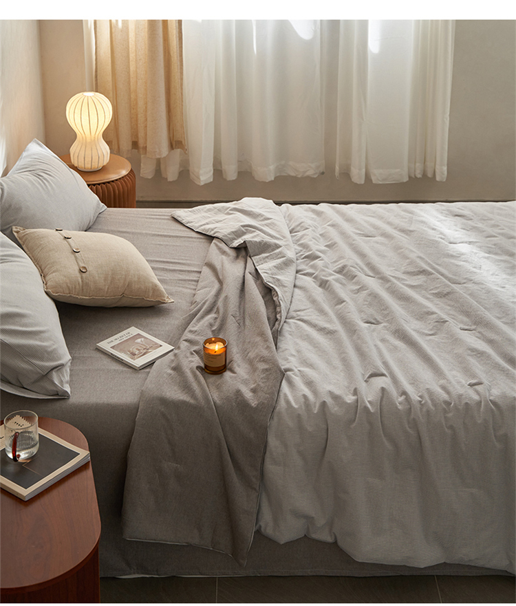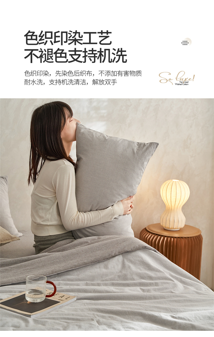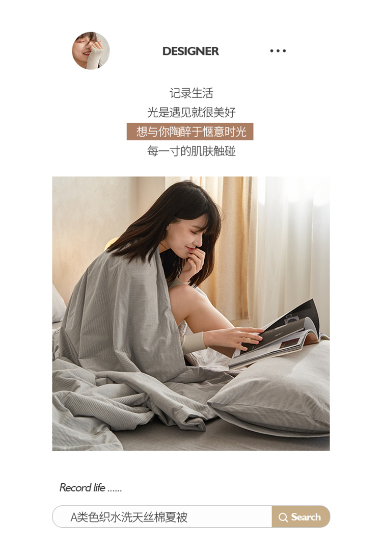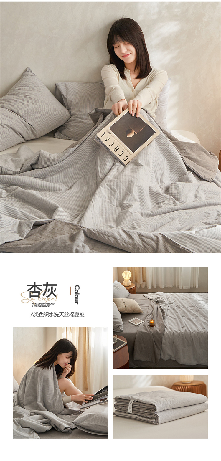 当前位置: 91家纺网 > 商品网购 > 床品套件 > 四件套 > 夏被四件套 > 莱宁被业 2023新款无印直播风a类全棉色织水洗天丝棉夏被四件套 杏灰
