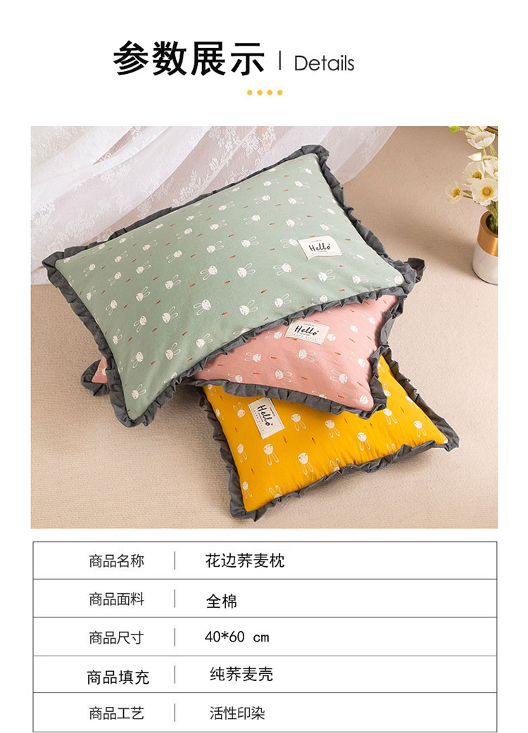 当前位置: 91家纺网 > 商品网购 > 枕头/枕芯/保健枕/颈椎枕 > 普通枕芯 > 枕之坊 2023新款花边荞麦枕40*60CM 花边绿色