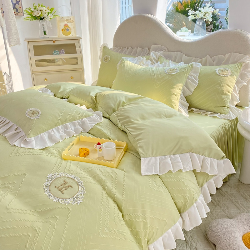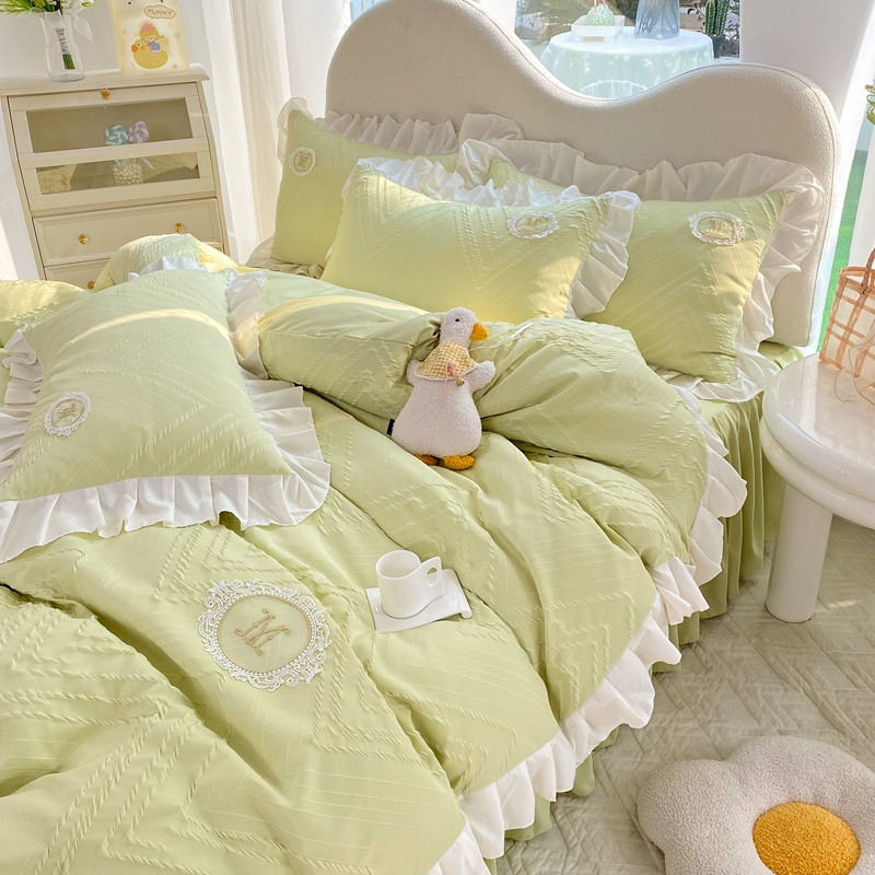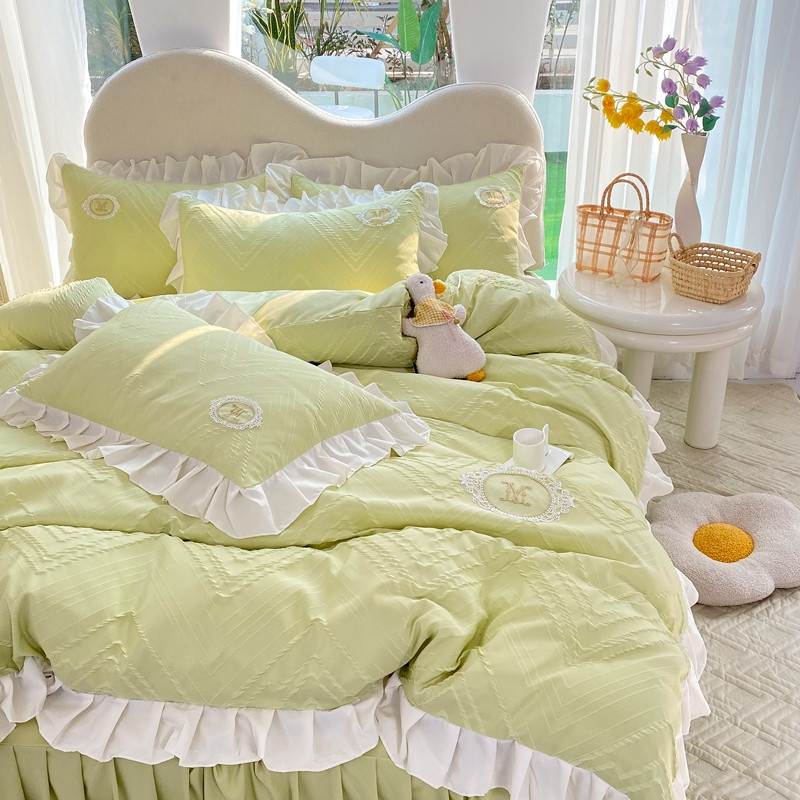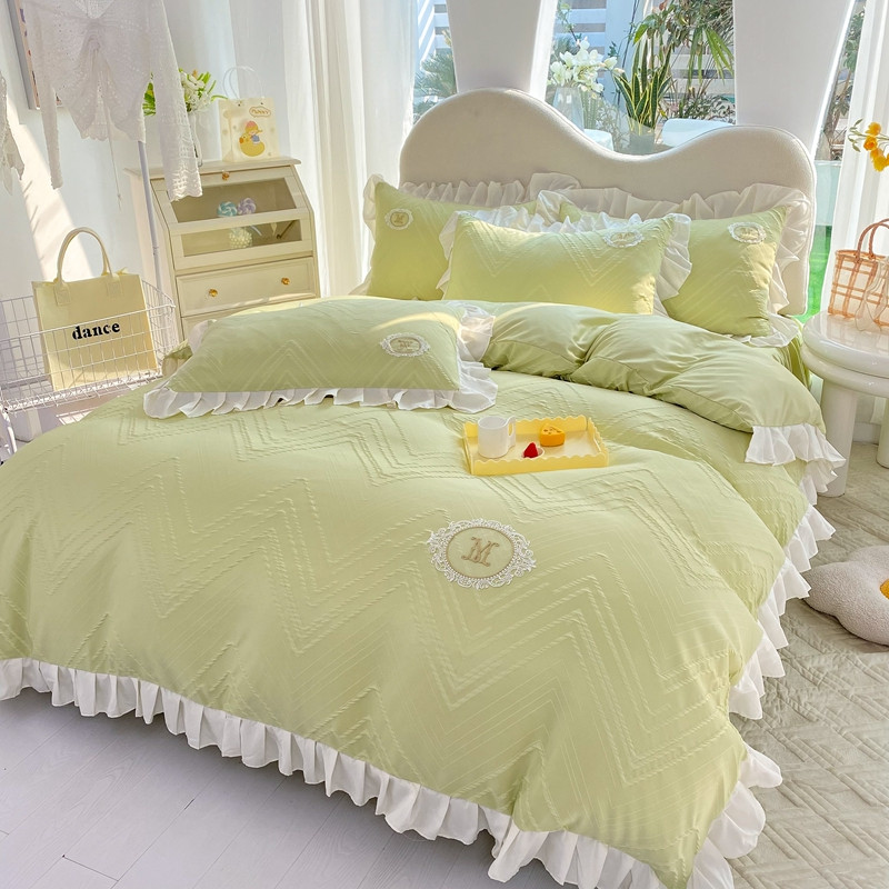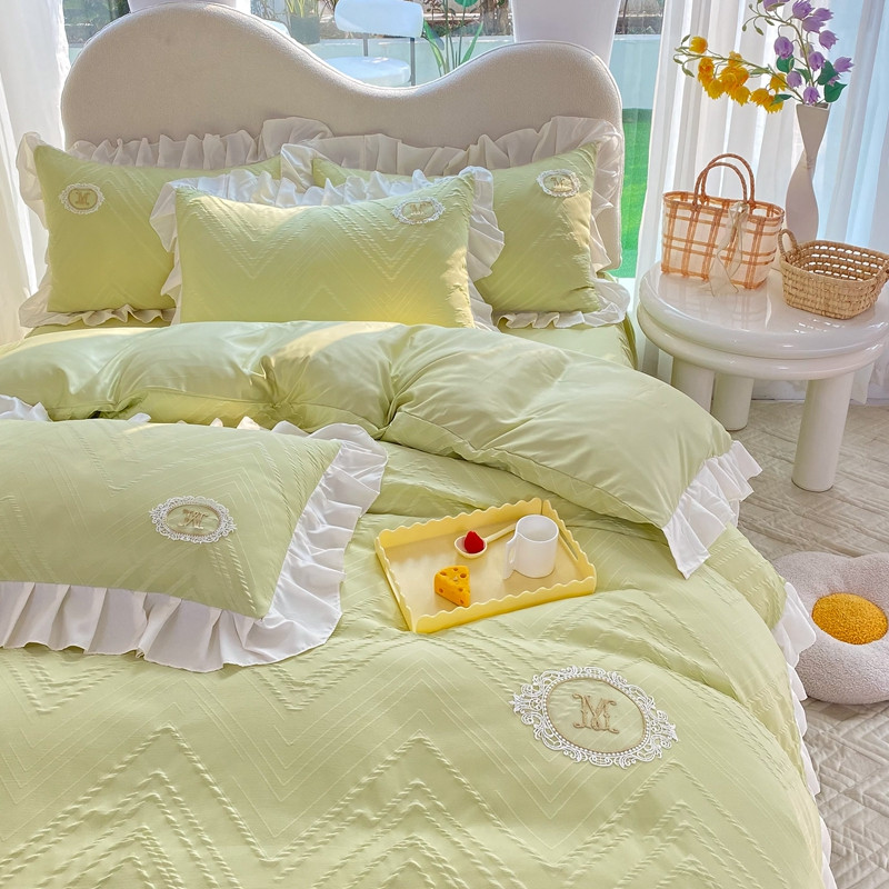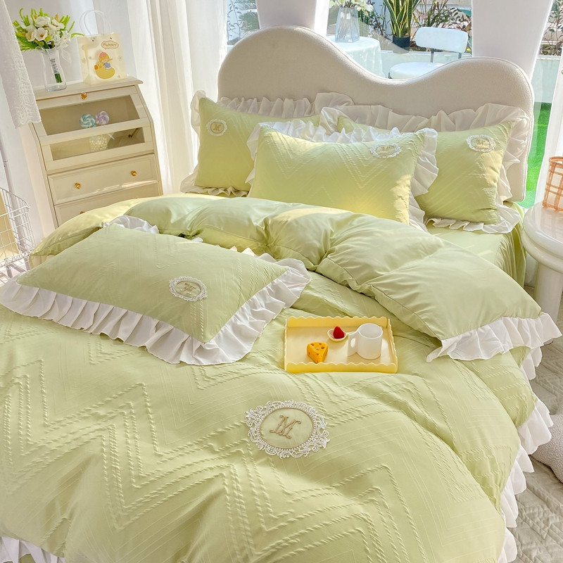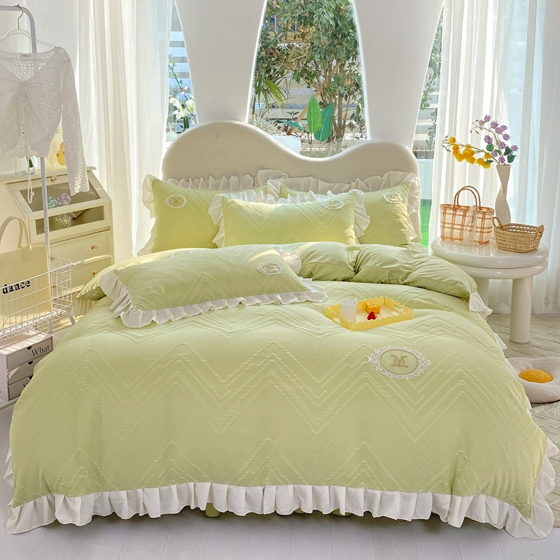 当前位置: 91家纺网 > 商品网购 > 床品套件 > 四件套 > 全棉普通四件套 > 韩约 2023新款 泡泡纱色织提花四件套 波浪格(抹茶绿)