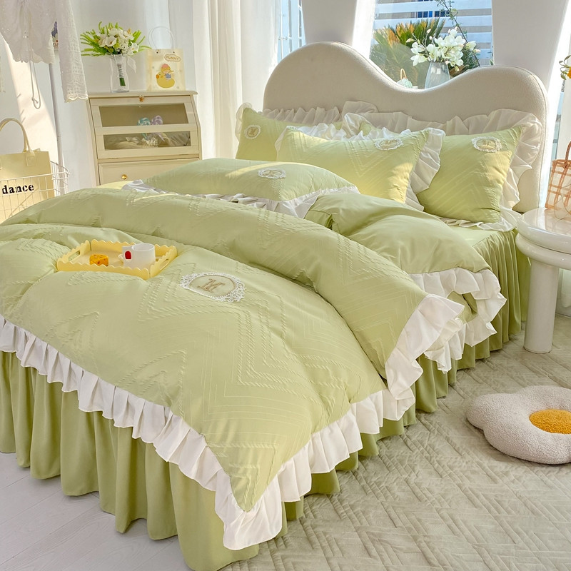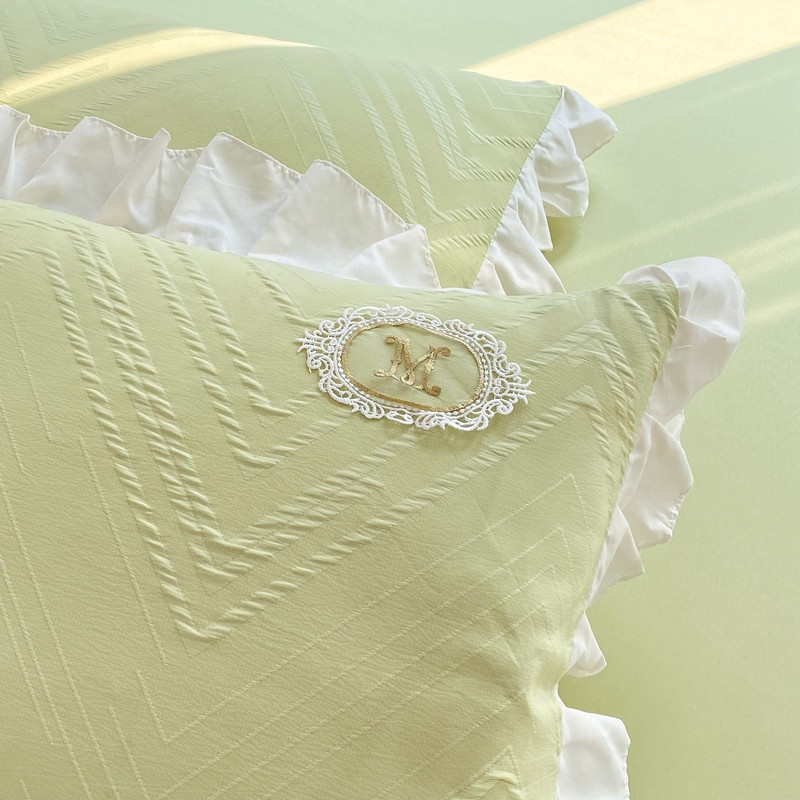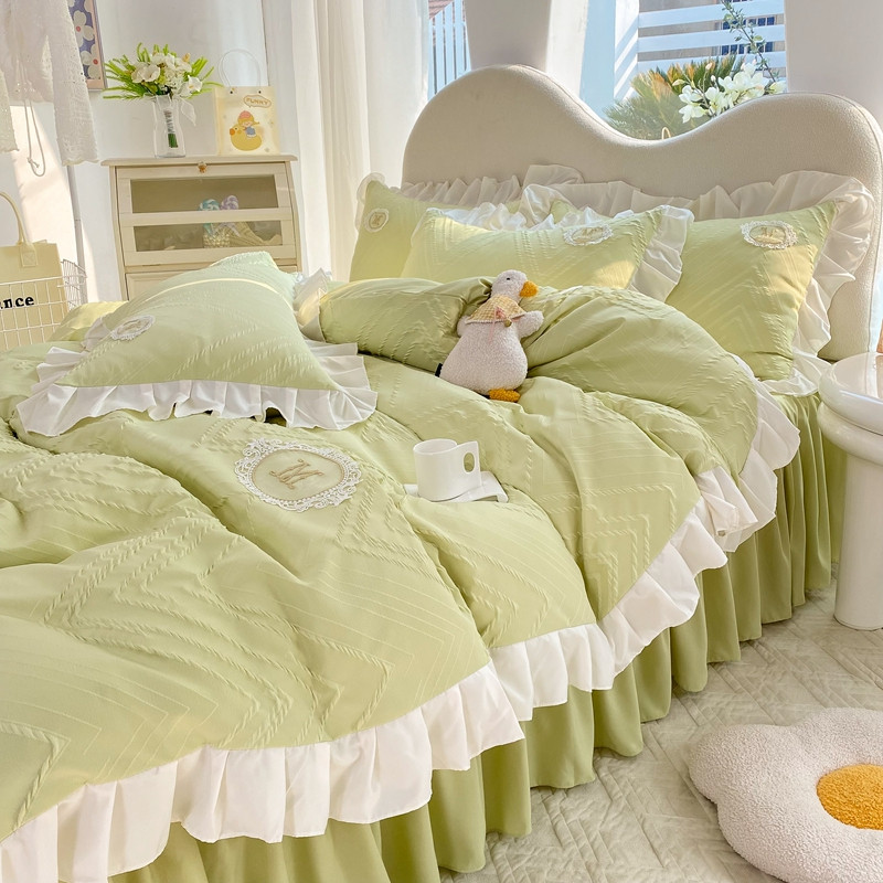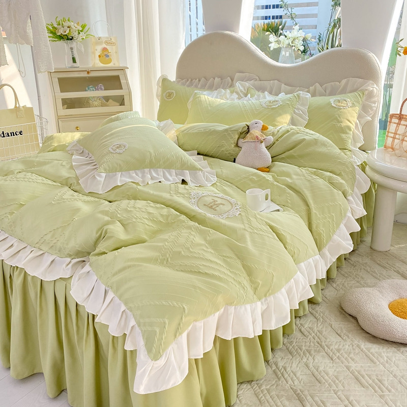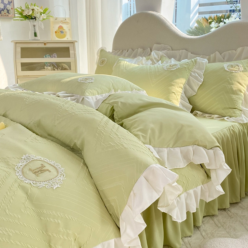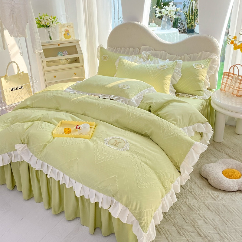 当前位置: 91家纺网 > 商品网购 > 床品套件 > 四件套 > 全棉普通四件套 > 韩约 2023新款 泡泡纱色织提花四件套 波浪格(抹茶绿)