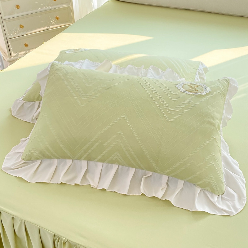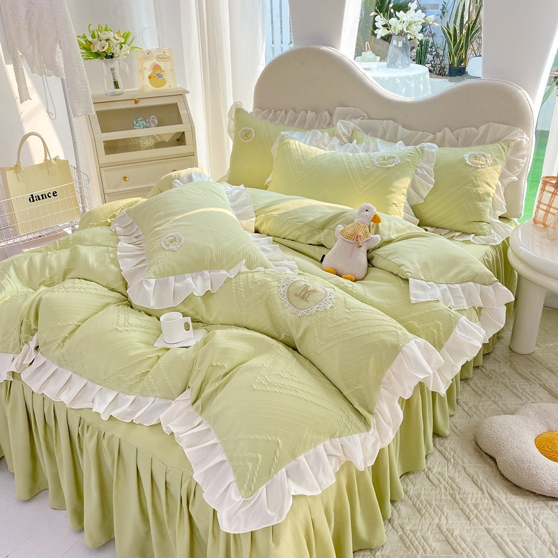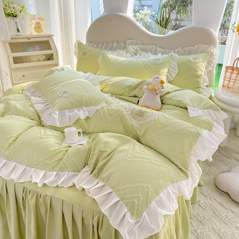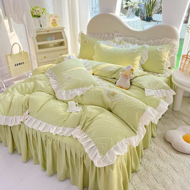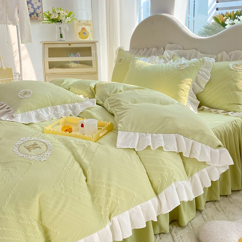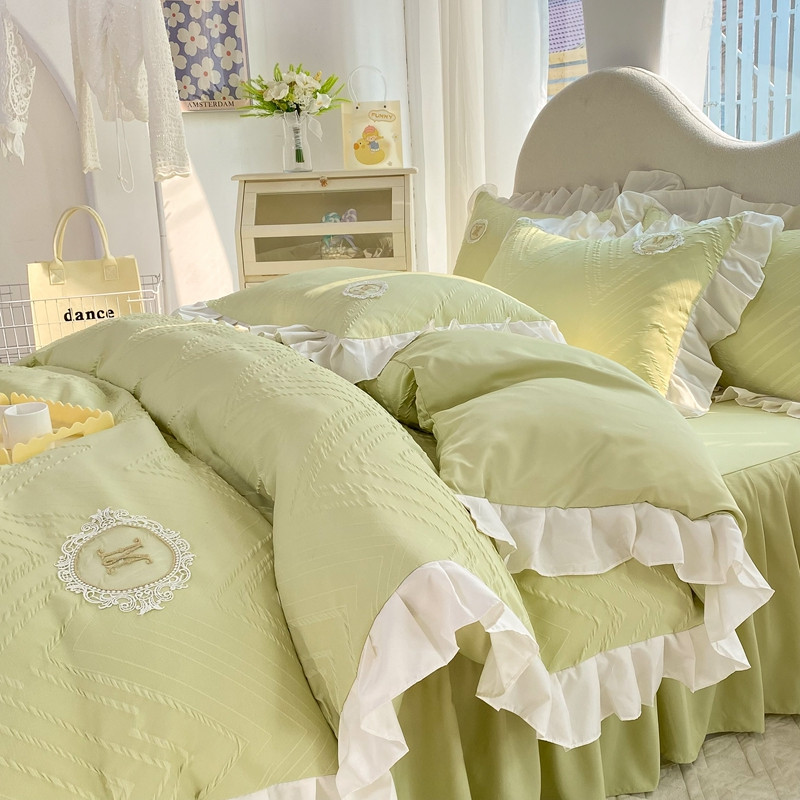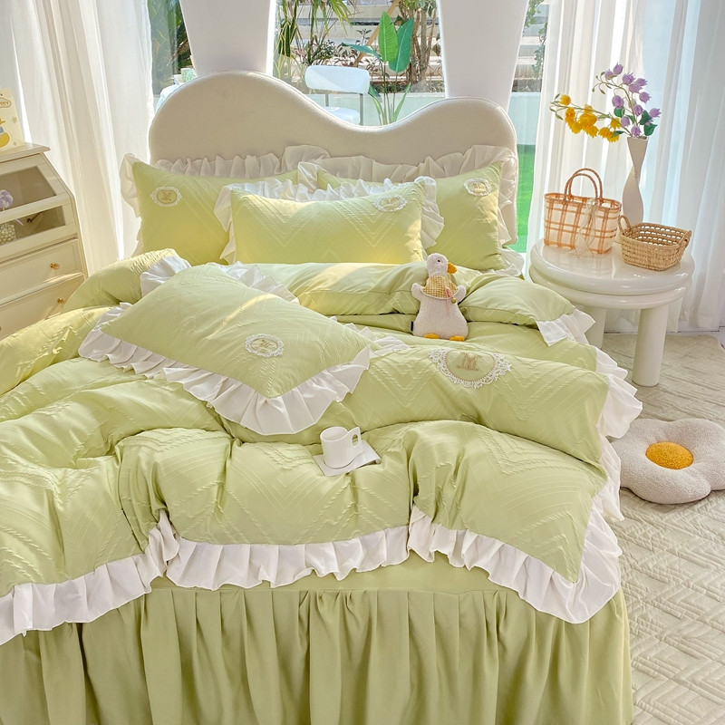 当前位置: 91家纺网 > 商品网购 > 床品套件 > 四件套 > 全棉普通四件套 > 韩约 2023新款 泡泡纱色织提花四件套 波浪格(抹茶绿)
