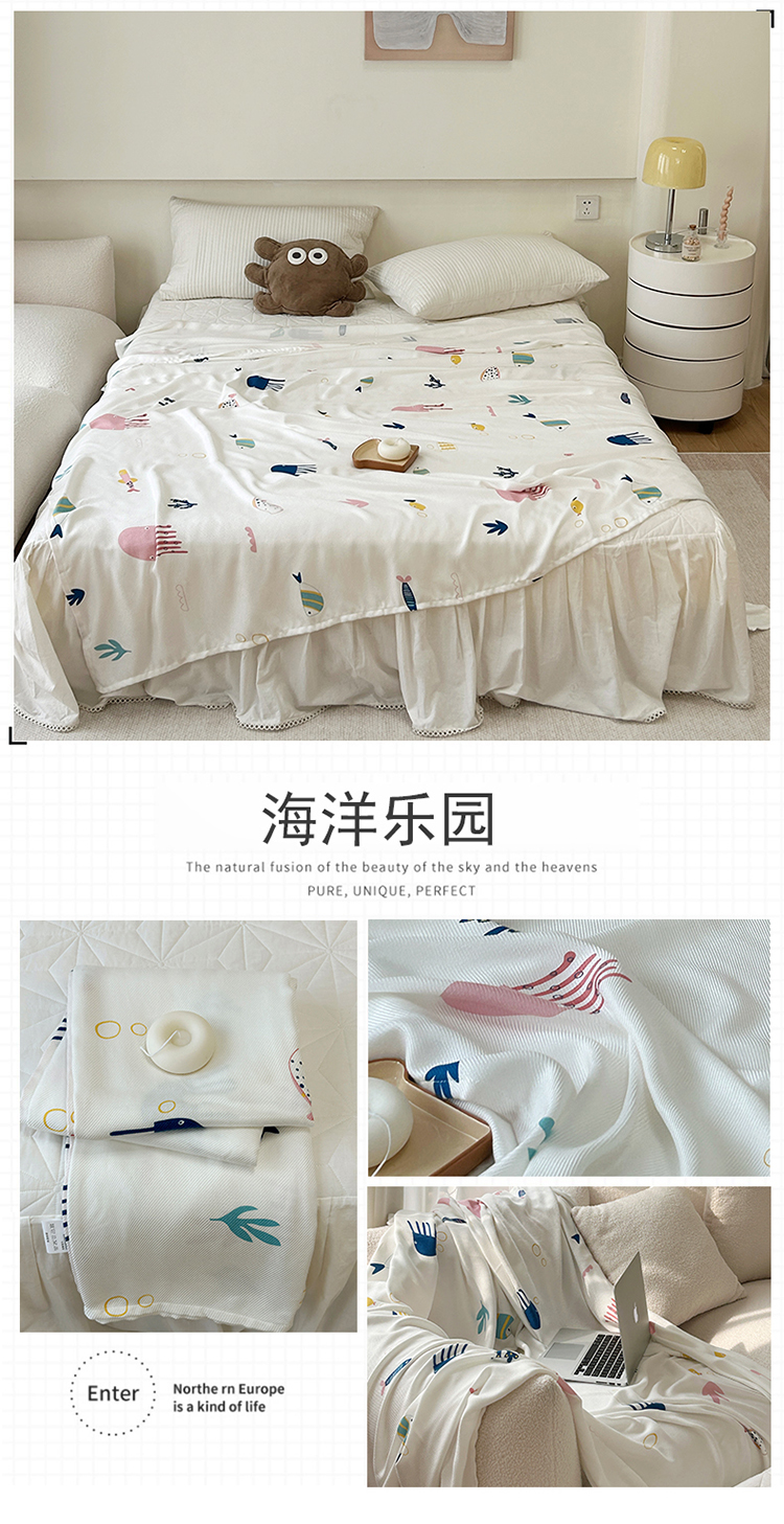 商品名称:麻依 2023新款竹纤维印花款毛巾被冷感毯子夏凉被盖毯 海洋乐园