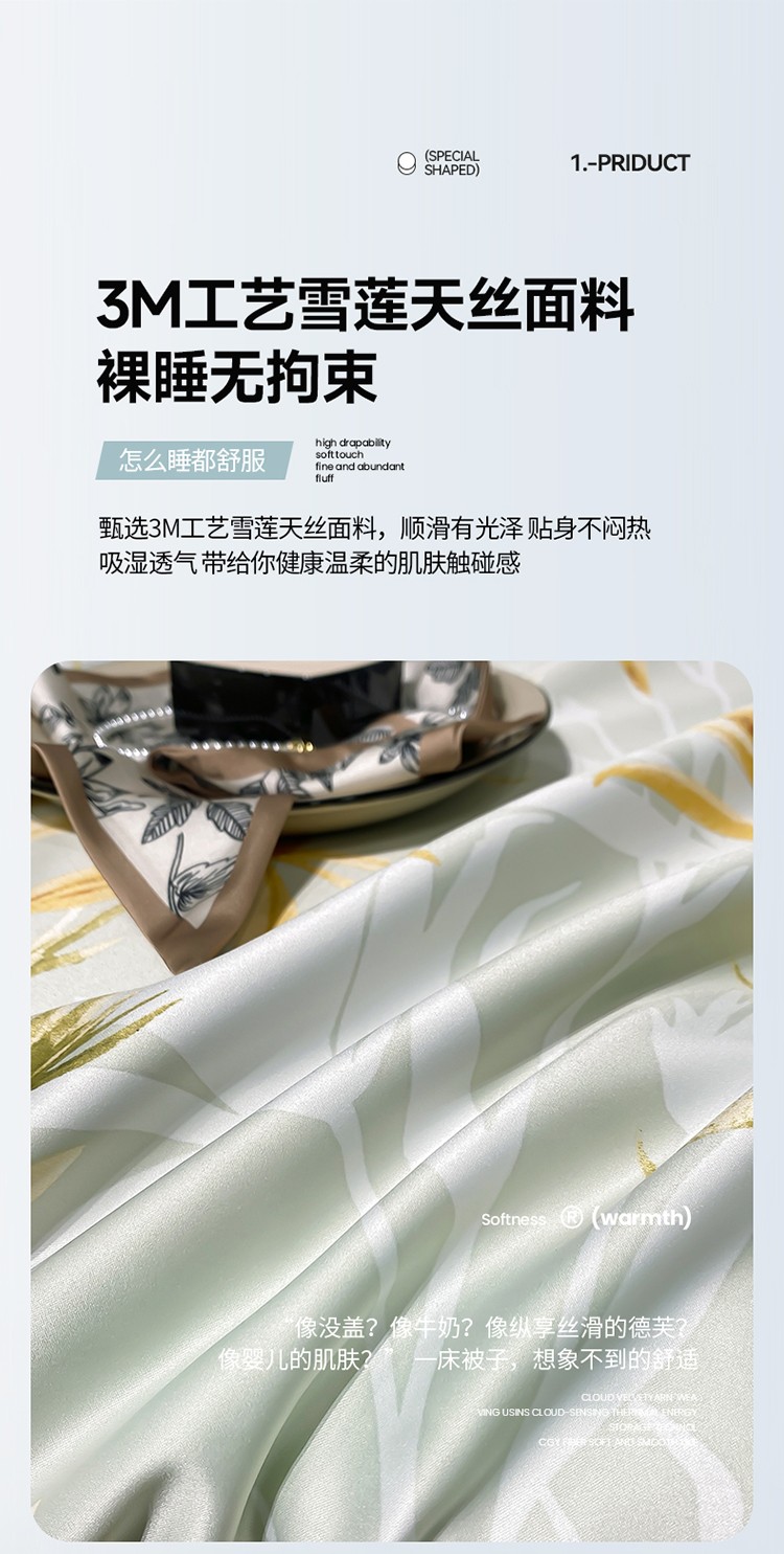 (总)澳梵家居 2023新款3M工艺雪莲天丝夏被四件套