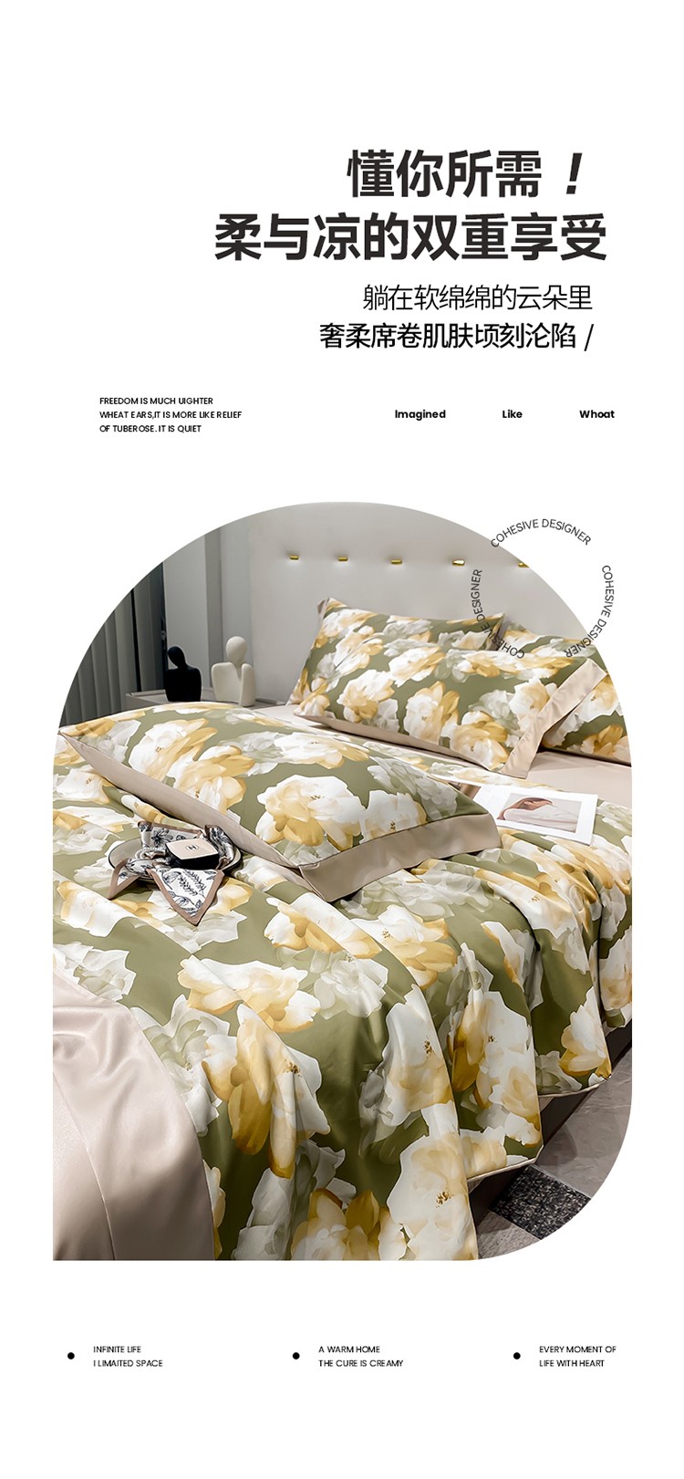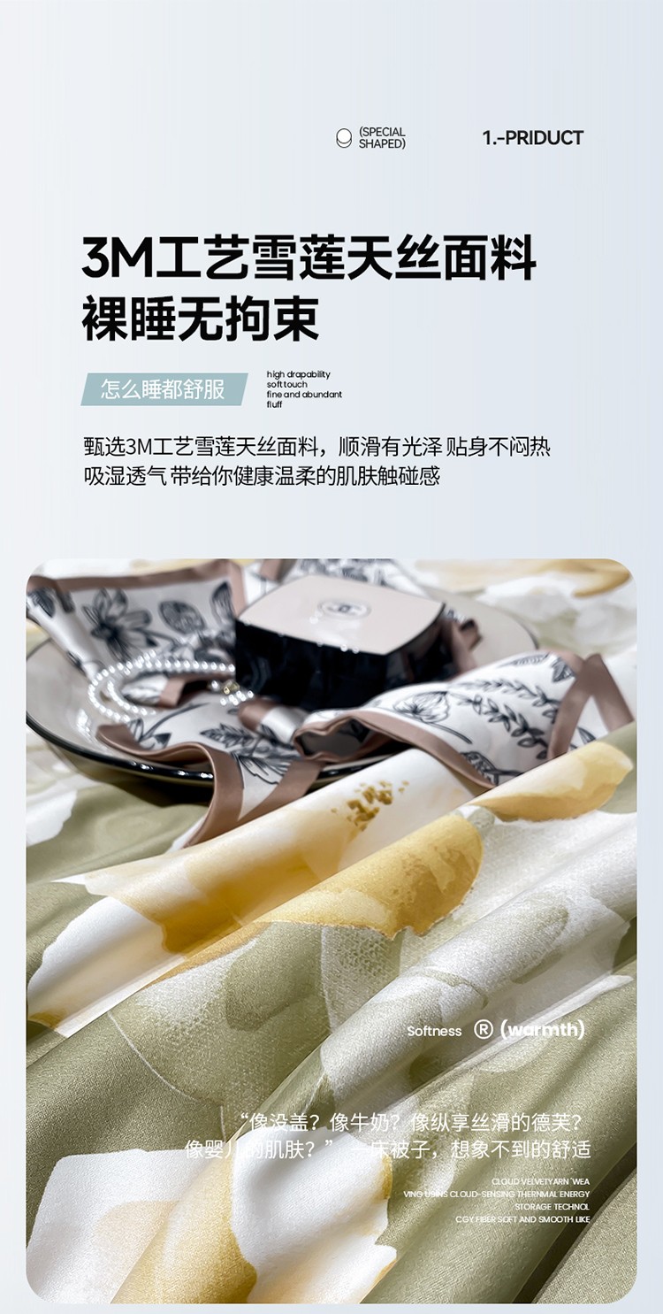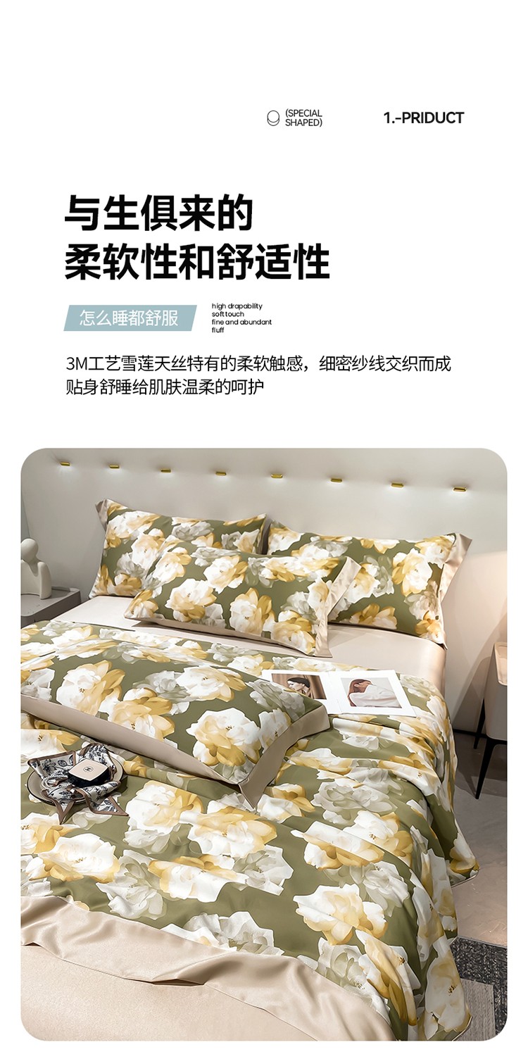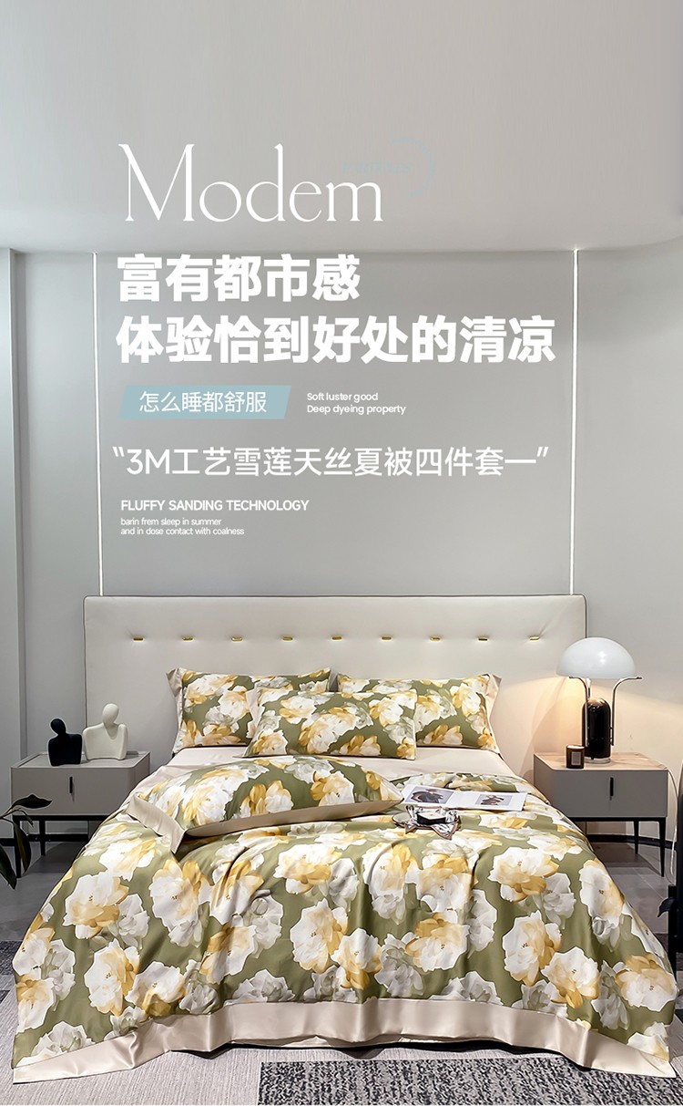当前位置: 91家纺网 > 商品网购 > 床品套件 > 四件套 > 夏被四件套 > 澳梵家居 2023新款3M工艺雪莲天丝夏被四件套 盛放