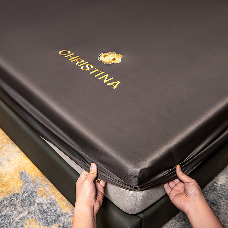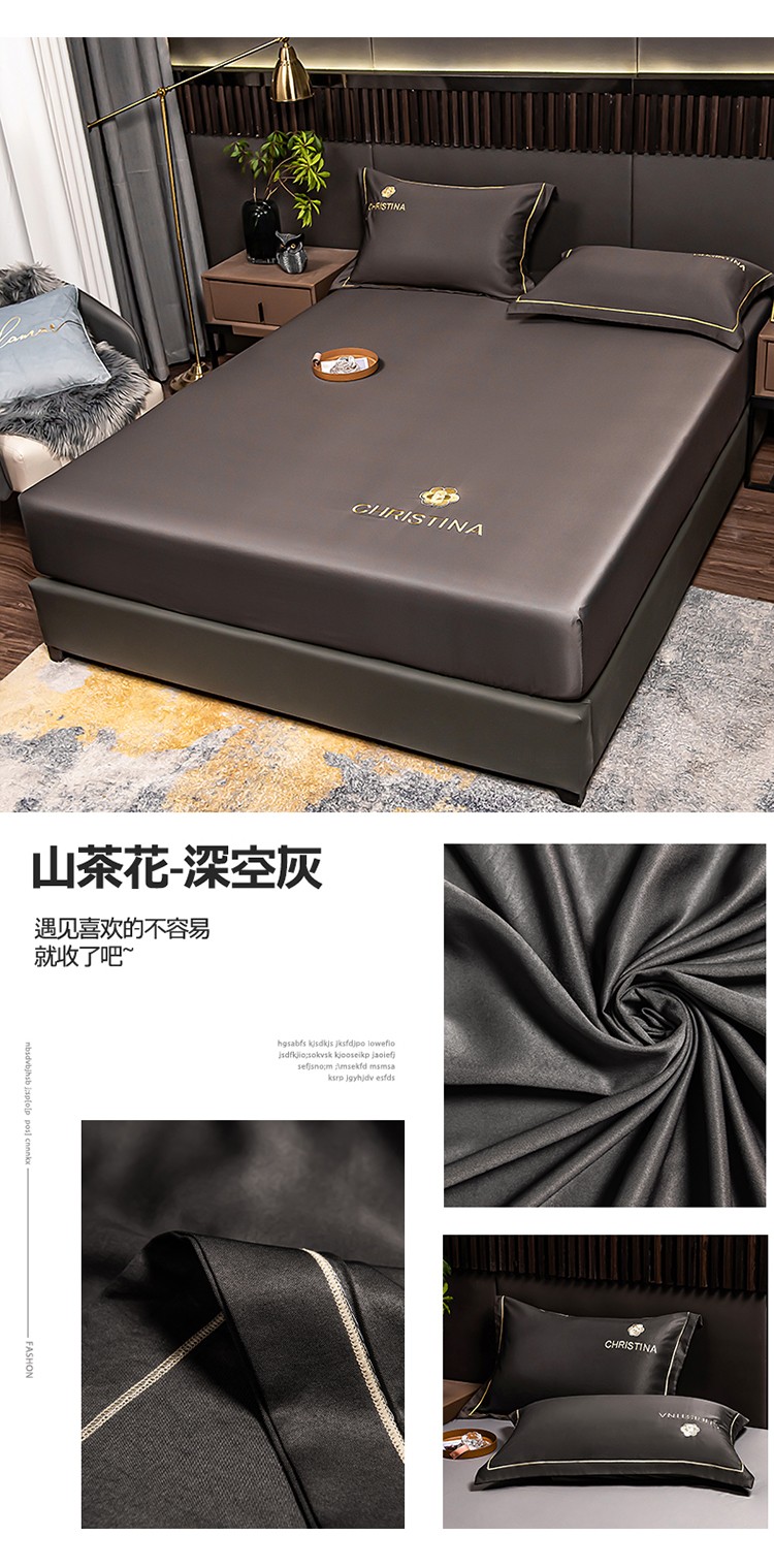 商品名称:丽美人 2023新款水洗真丝床笠款凉席-山茶花系列 山茶花-深空灰
