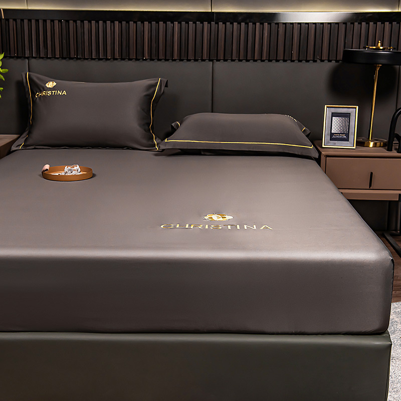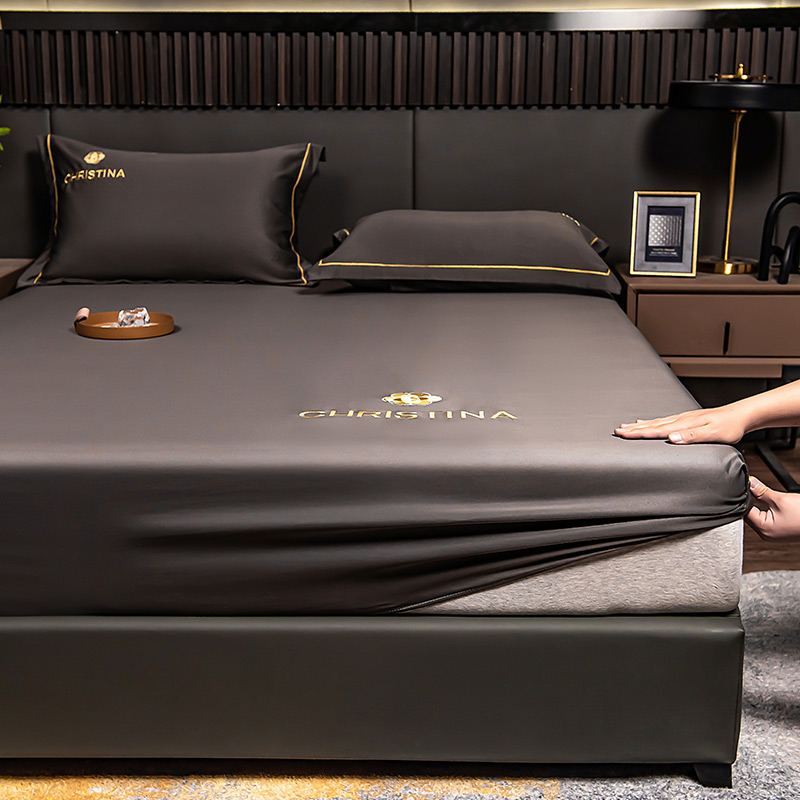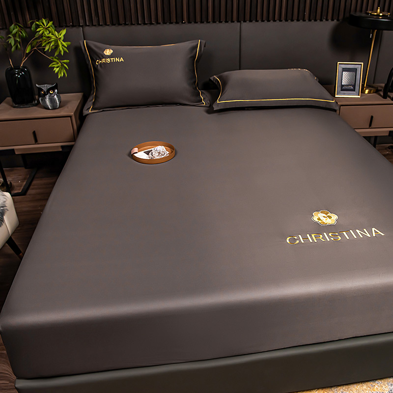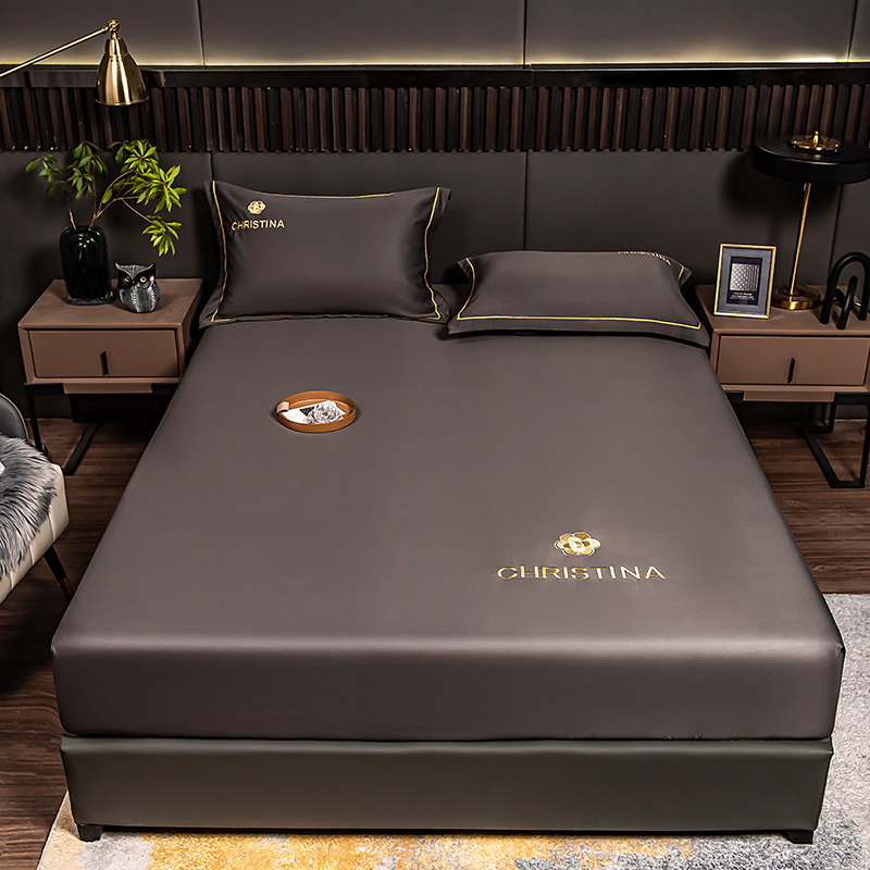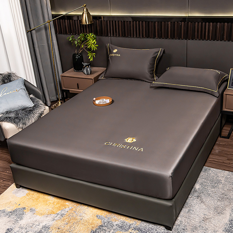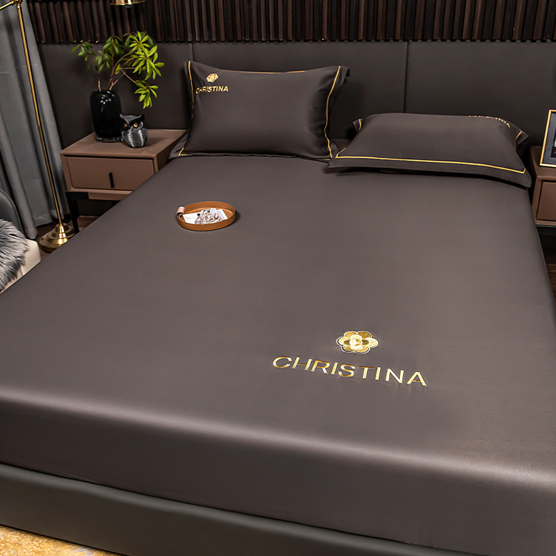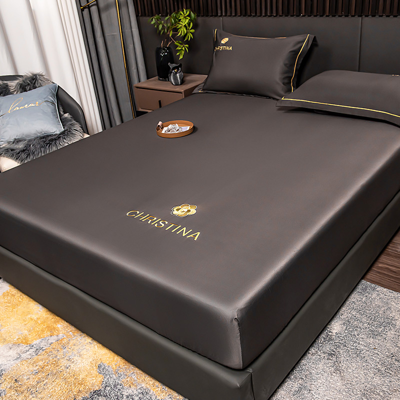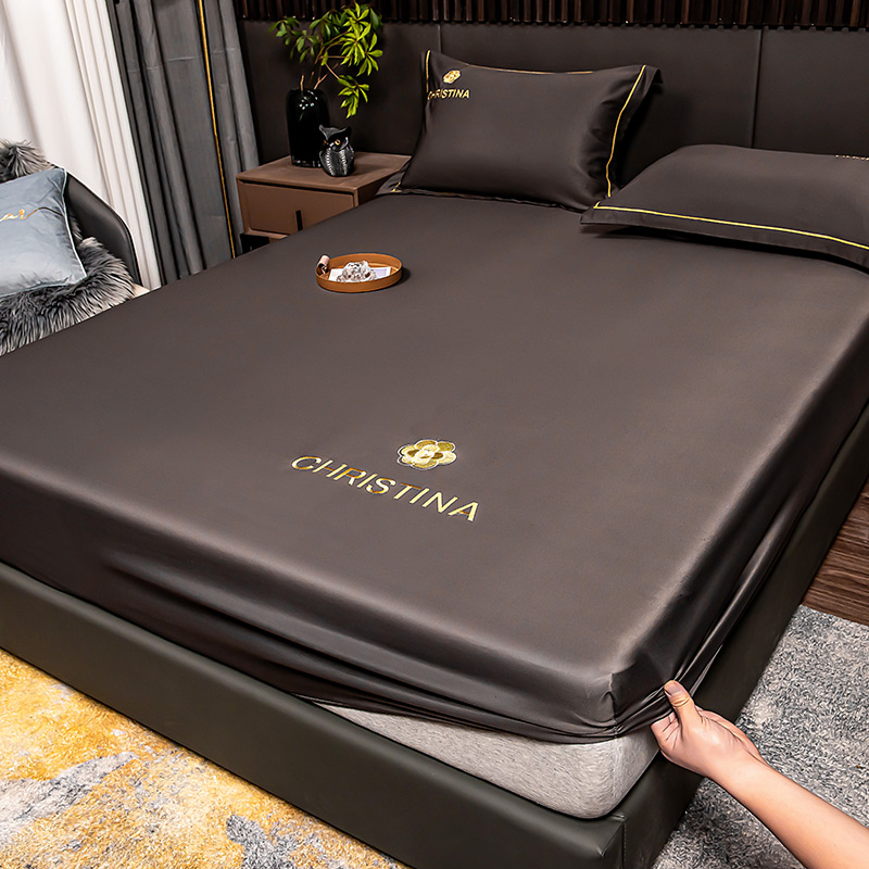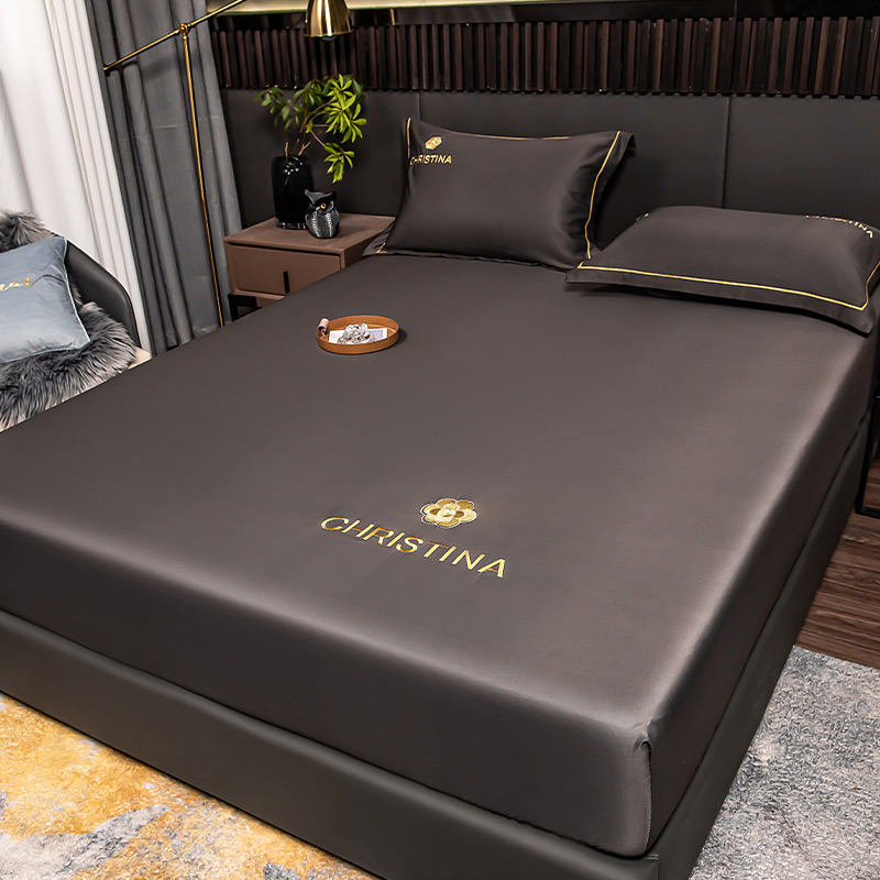 丽美人 2023新款水洗真丝床笠款凉席-山茶花系列 山茶花-深空灰