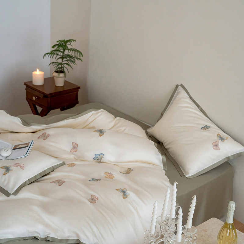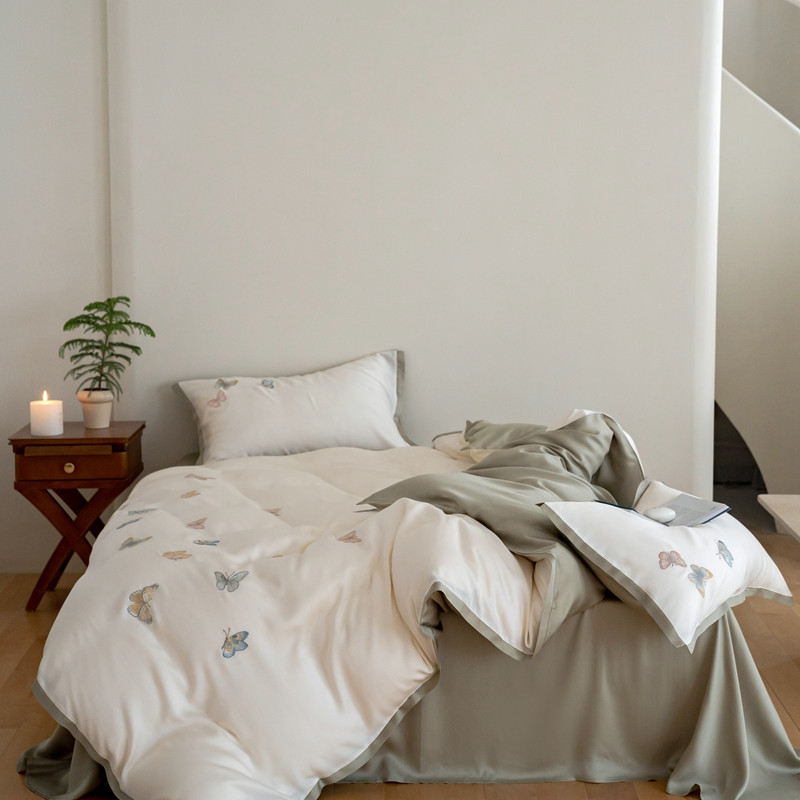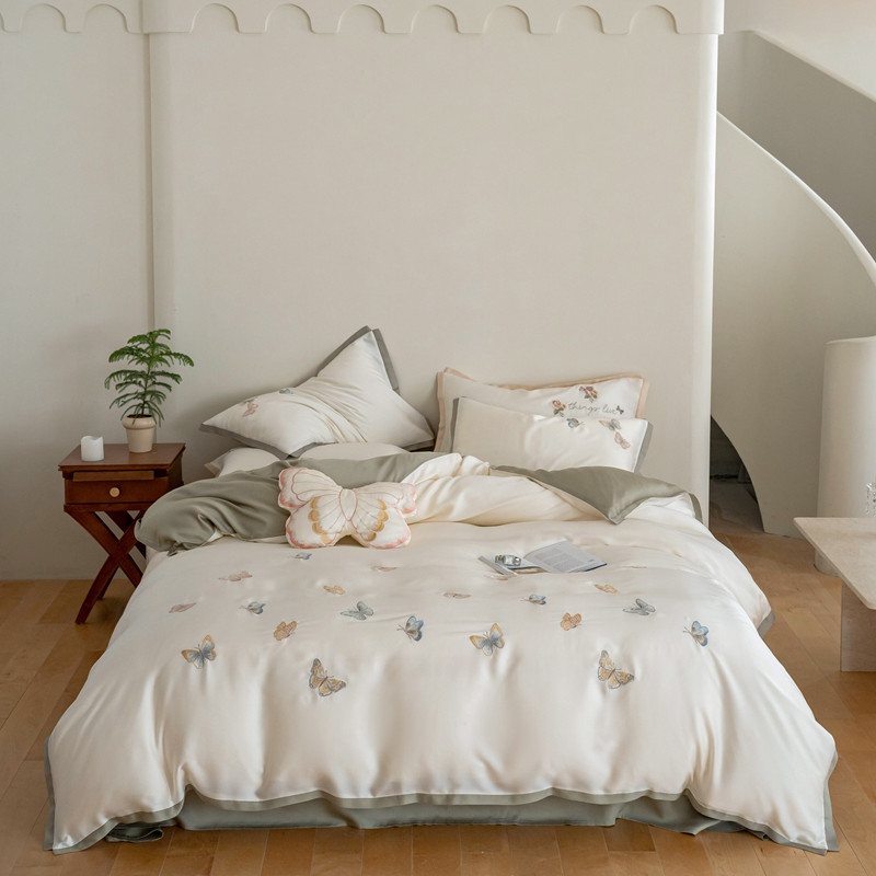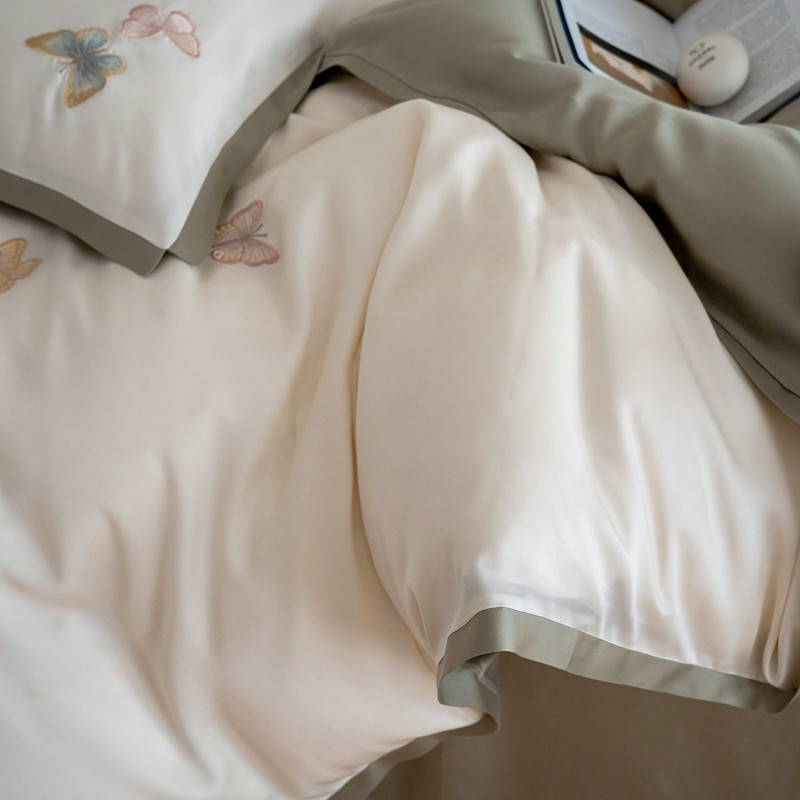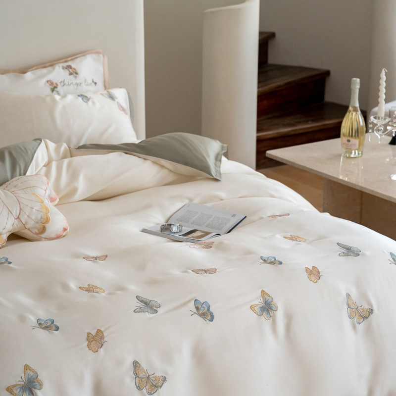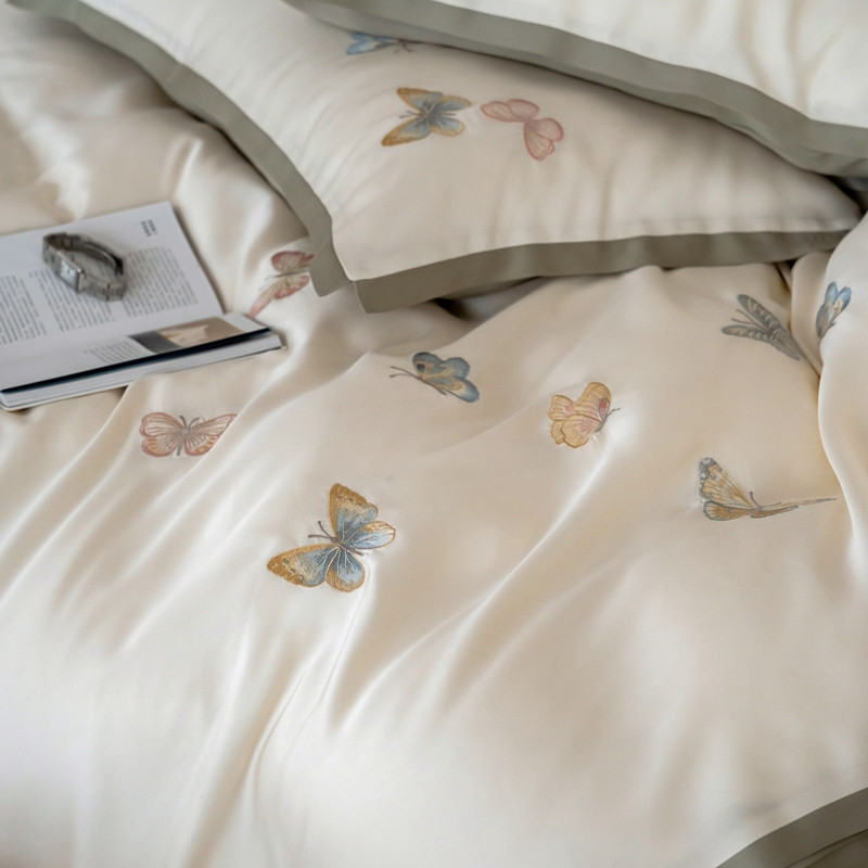 商品名称:FORTWO 2023新款 莱赛尔兰精天丝毛巾绣四件套 梦蝶