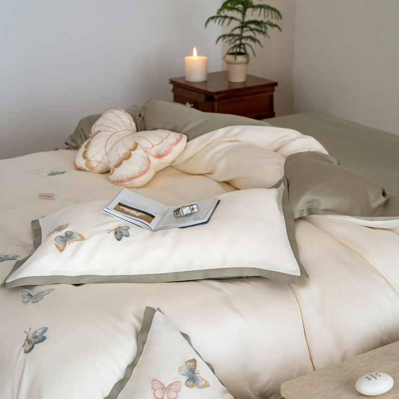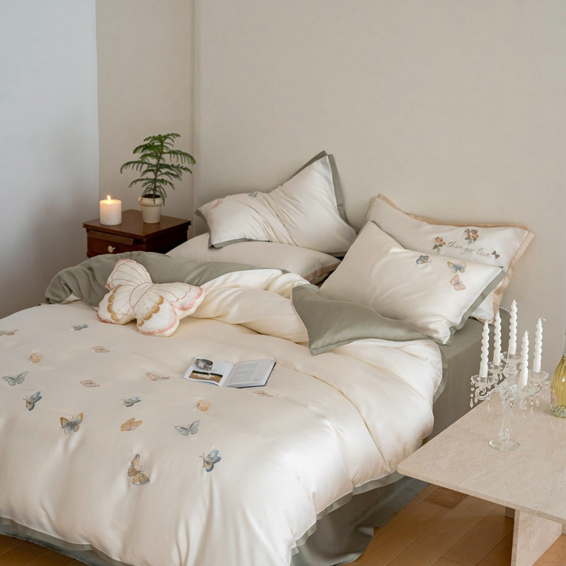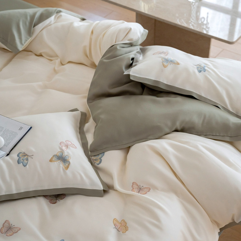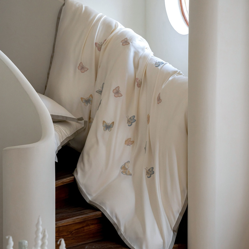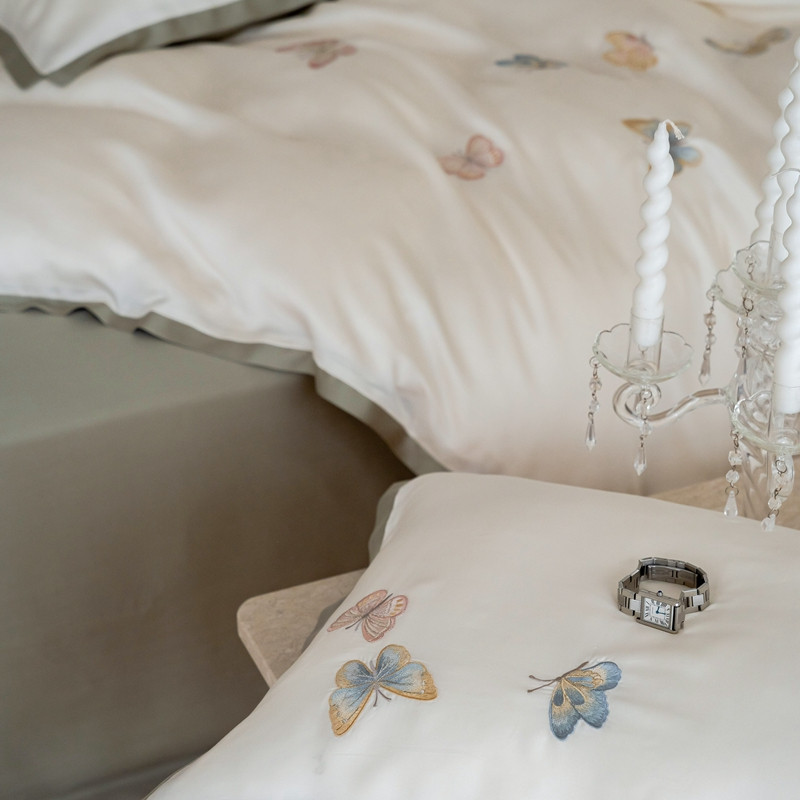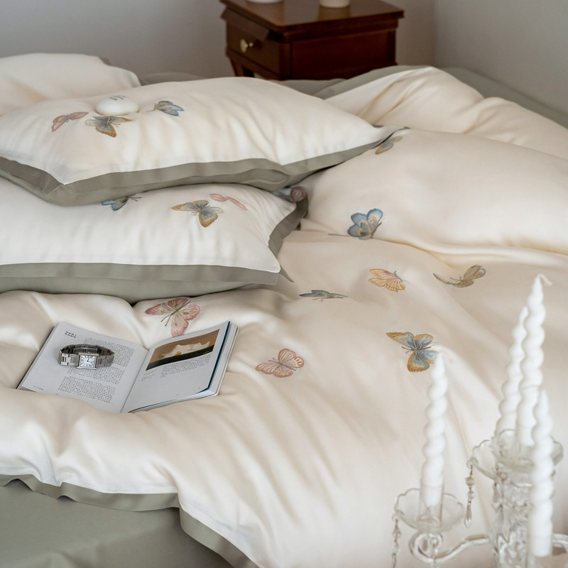 商品名称:FORTWO 2023新款 莱赛尔兰精天丝毛巾绣四件套 梦蝶