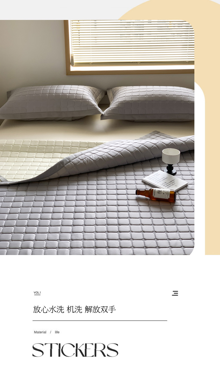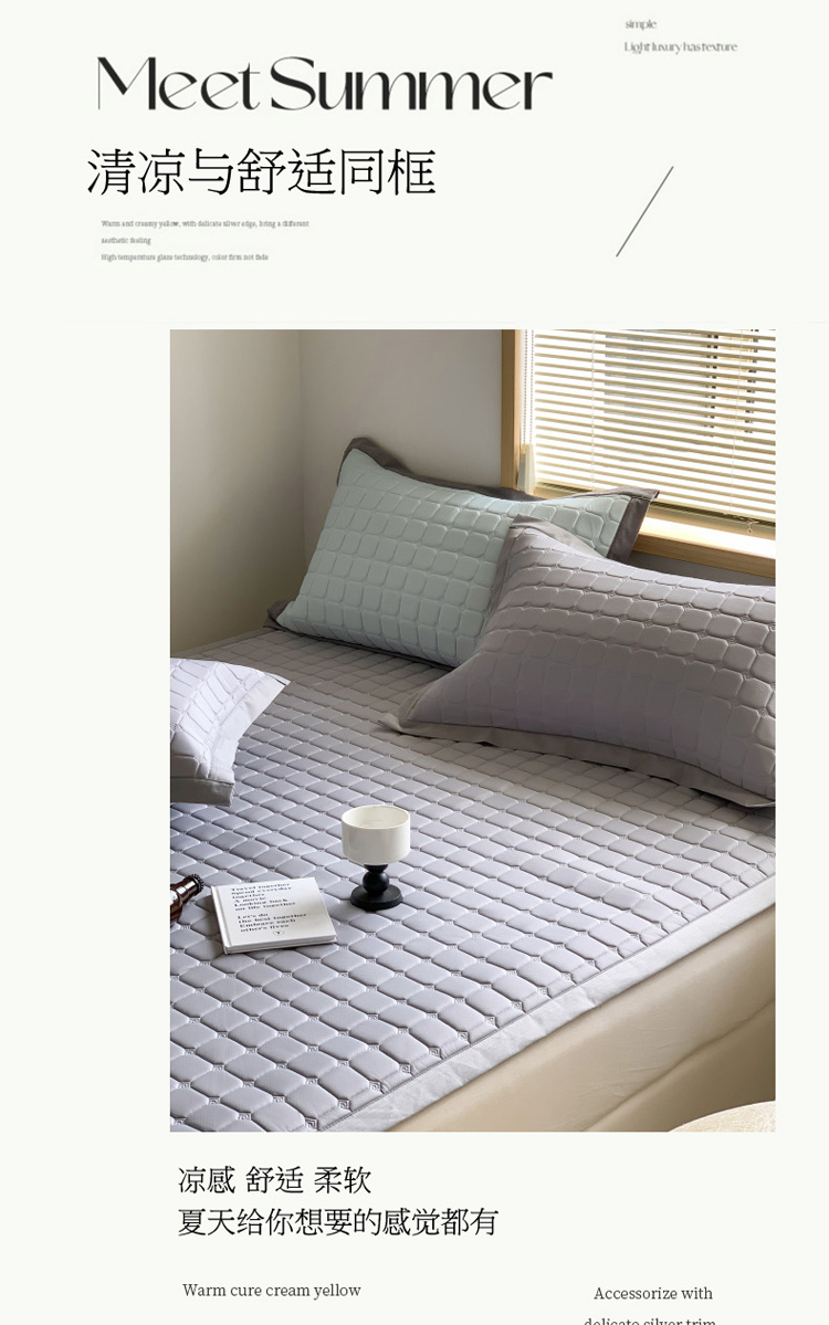 柒月 2023新款简约格乳胶凉席 简约格-灰