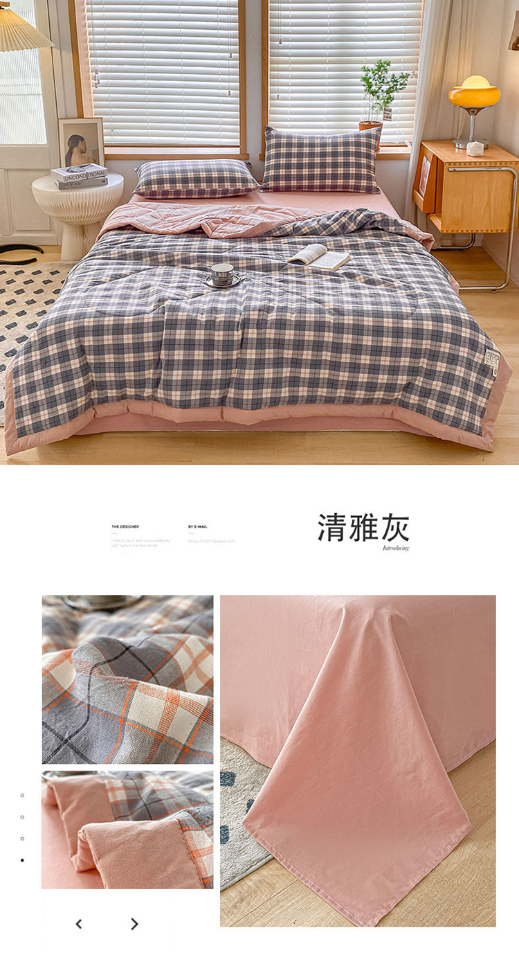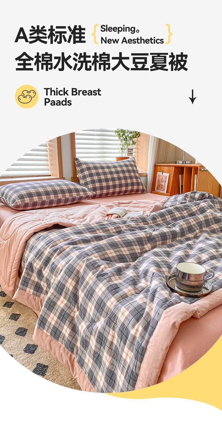 蓝巢家纺2023新款全棉色织水洗棉A类大豆纤维夏被 夏被-清雅灰