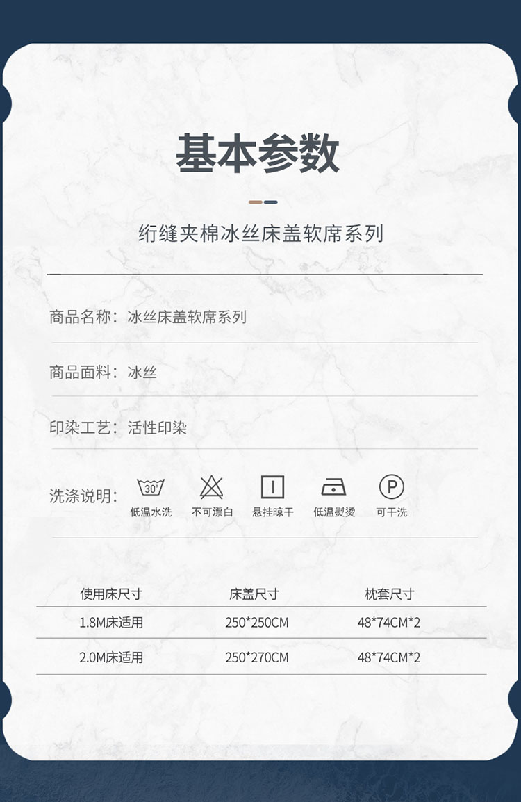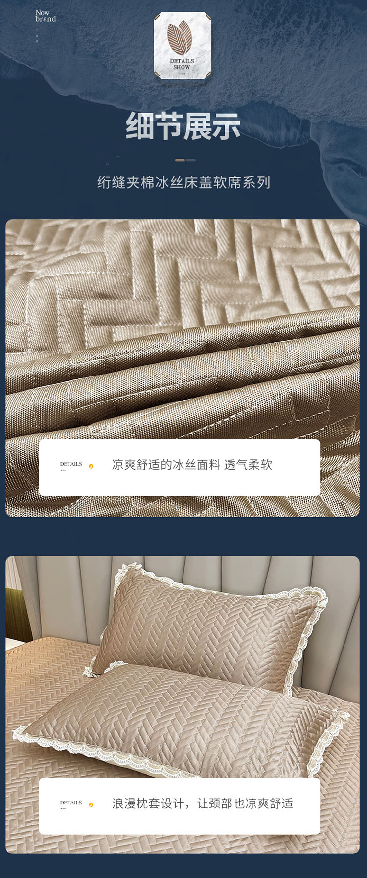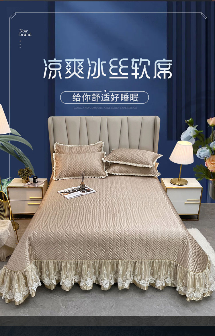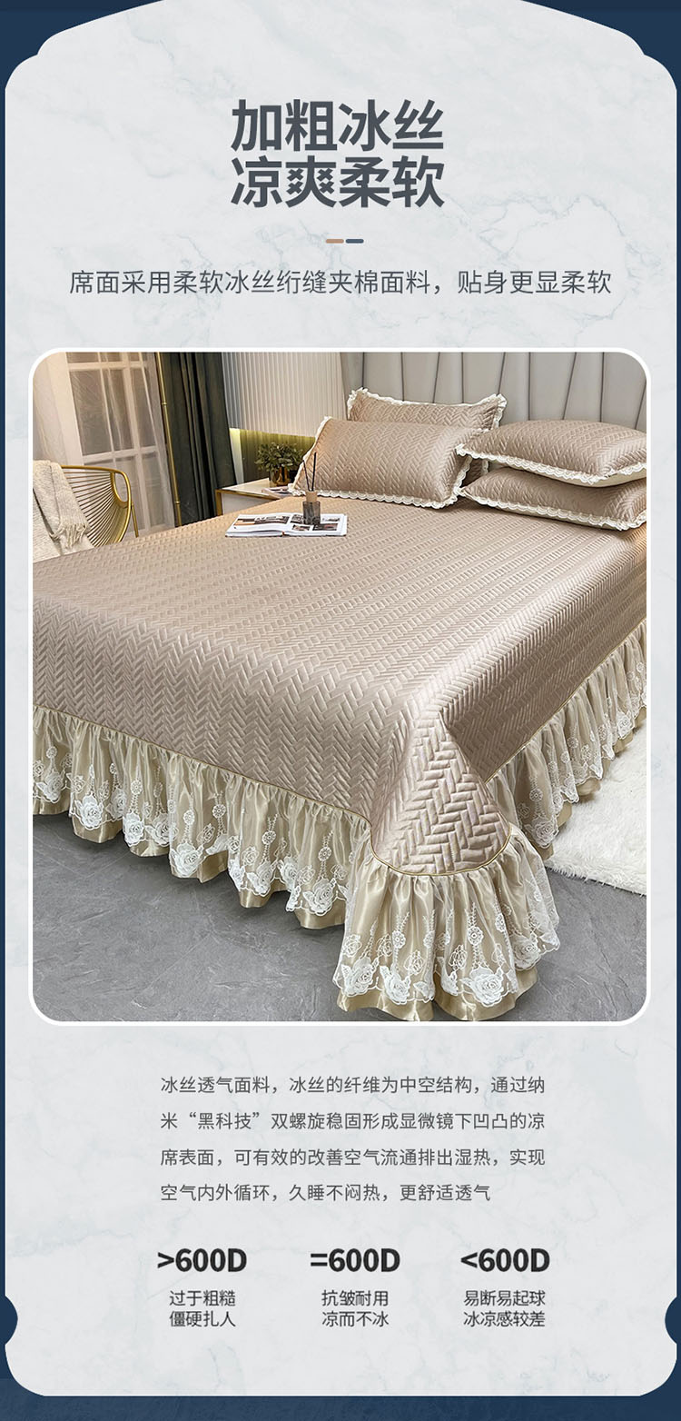 商品名称:恋尚 2023新款冰丝夹棉纯色床盖款软凉席三件套 伽罗卡