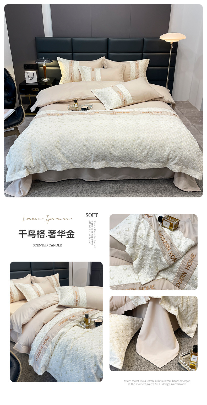 商品名称:布可 2025新款千鸟格立体雕花刺绣四件套 千鸟格.奢华金