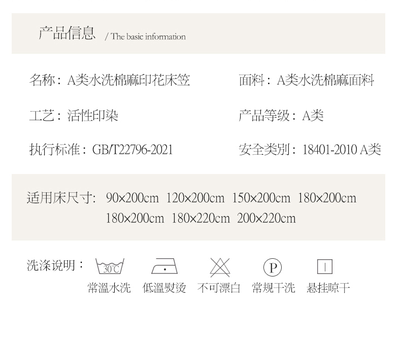 200*220cm(A类水洗棉麻单层床笠) | ¥21.00 |