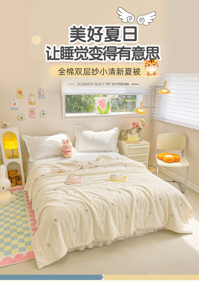 (总)N先生 2023新款全棉双层纱皱皱纱小清新夏被