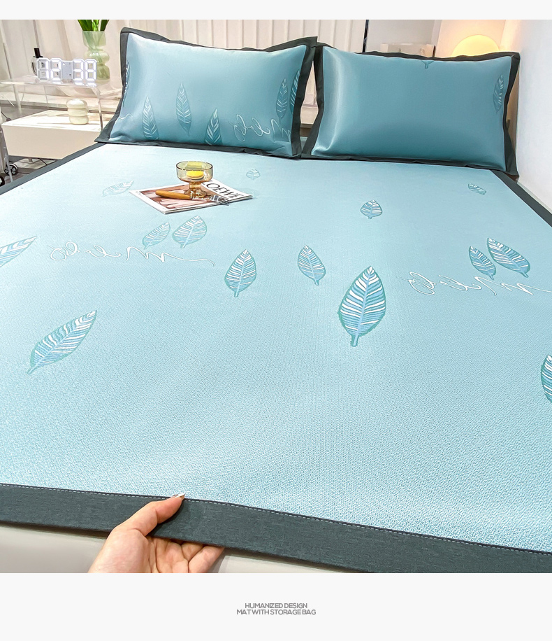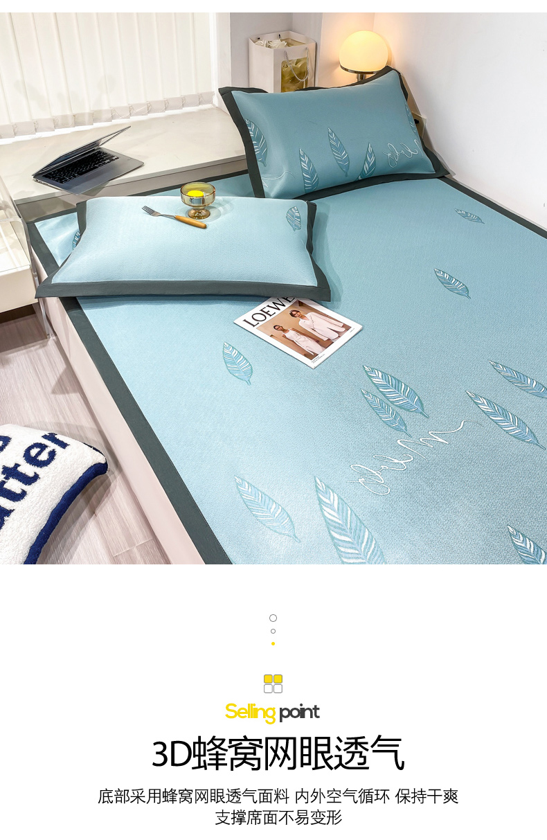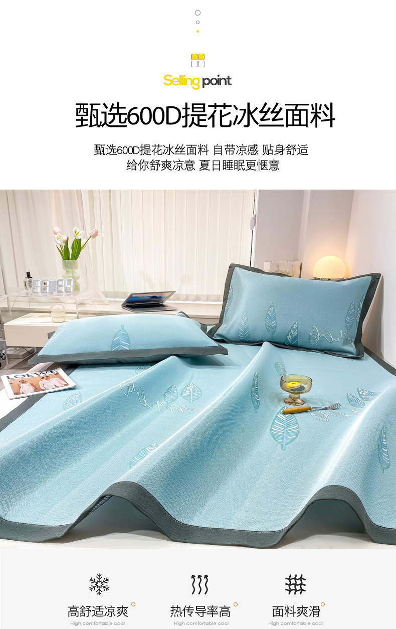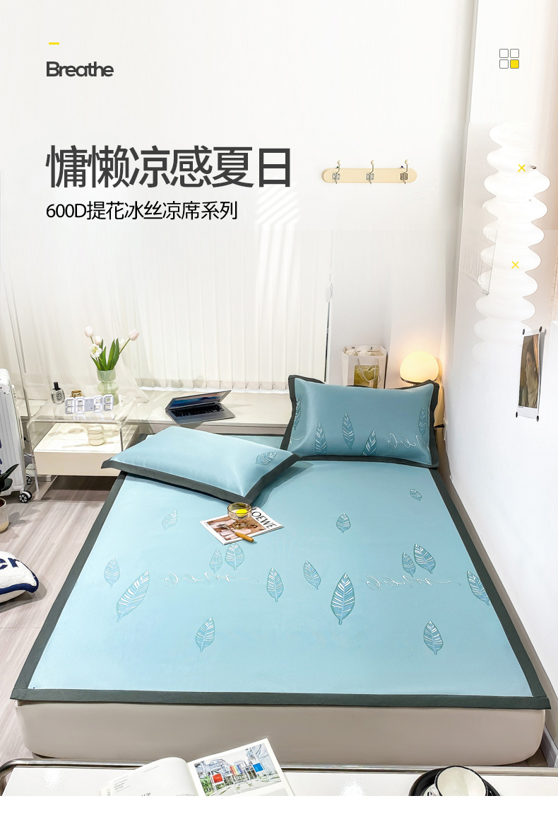 商品名称:柒月 2023新款600D提花冰丝席 叶子-绿