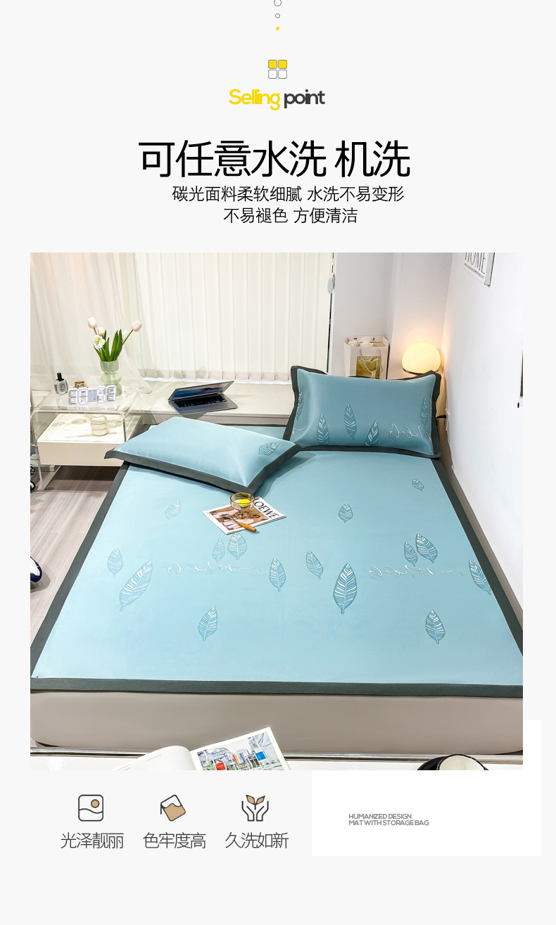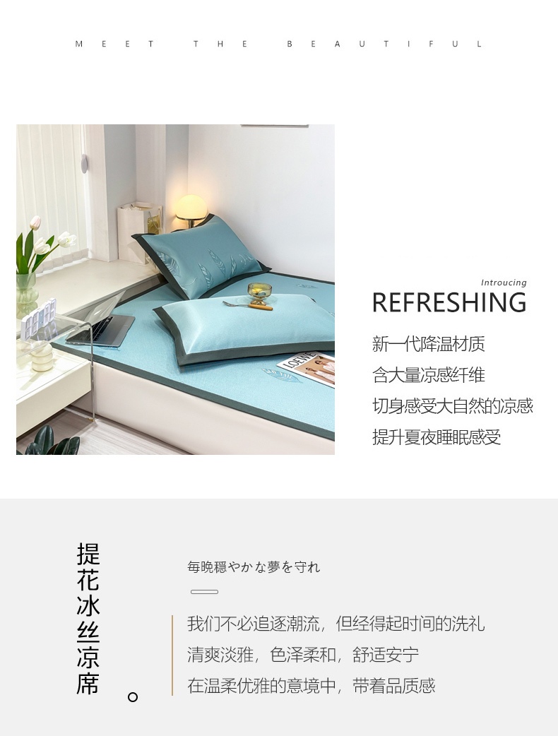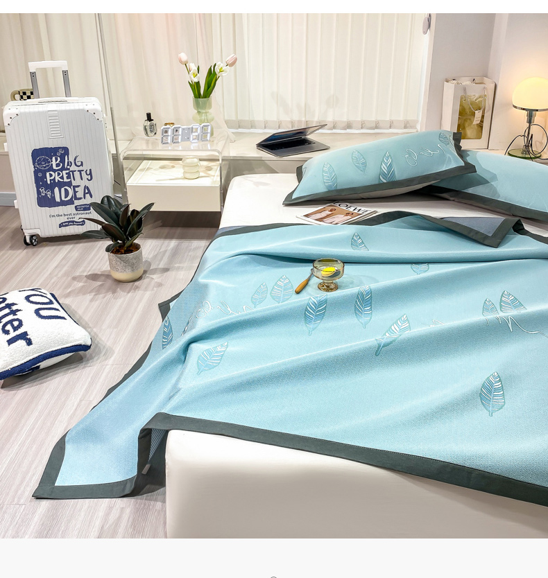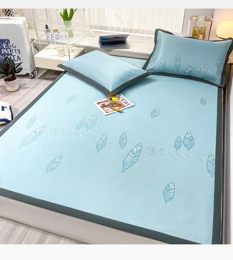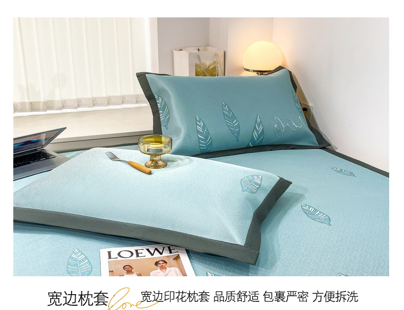 商品名称:柒月 2023新款600D提花冰丝席 叶子-绿
