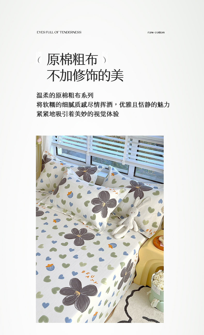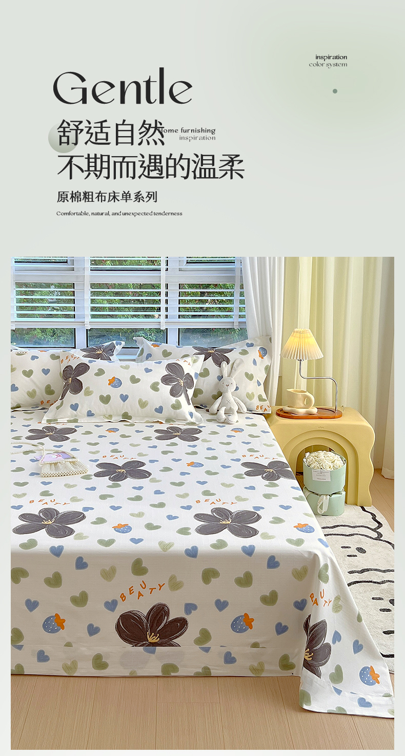 商品名称:凯磊家纺 新款原棉老粗布单品系列-床单 漫天花语-灰