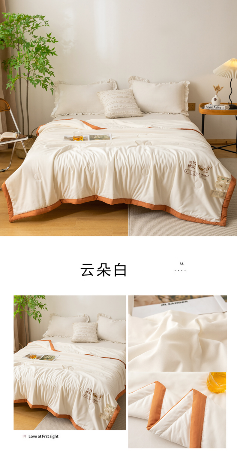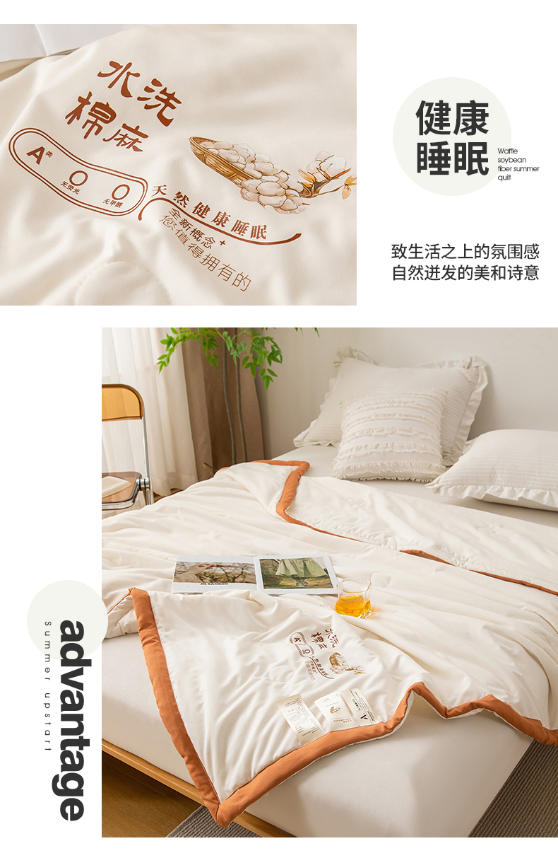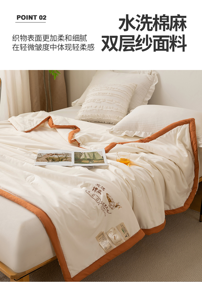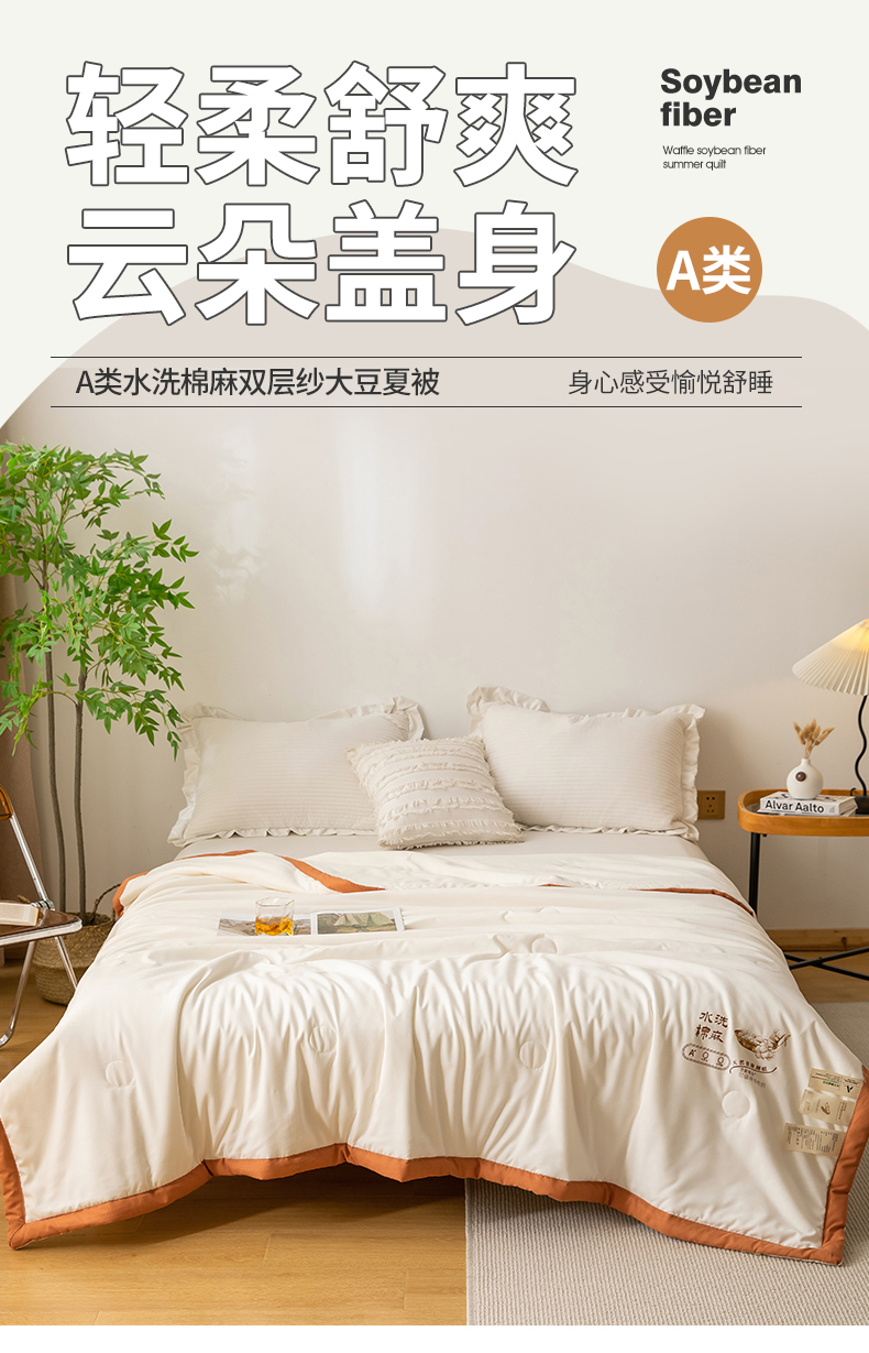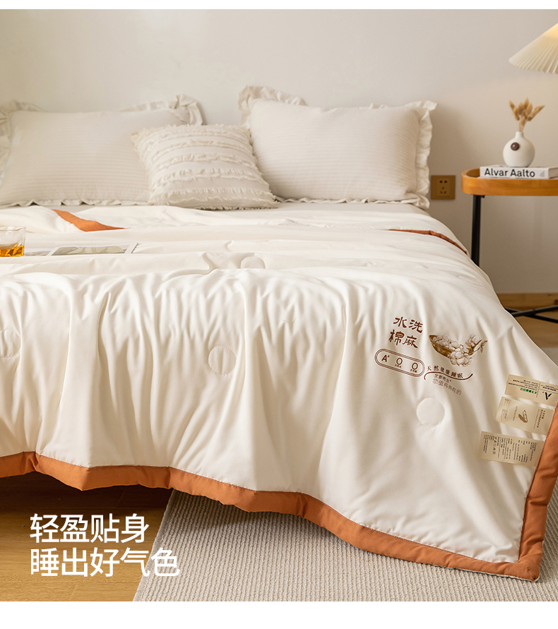 蓝冰家纺 2023新款水洗棉棉麻大豆夏被 云朵白