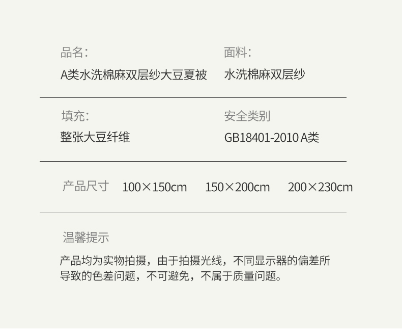商品名称:蓝冰家纺 2023新款水洗棉棉麻大豆夏被 云朵白