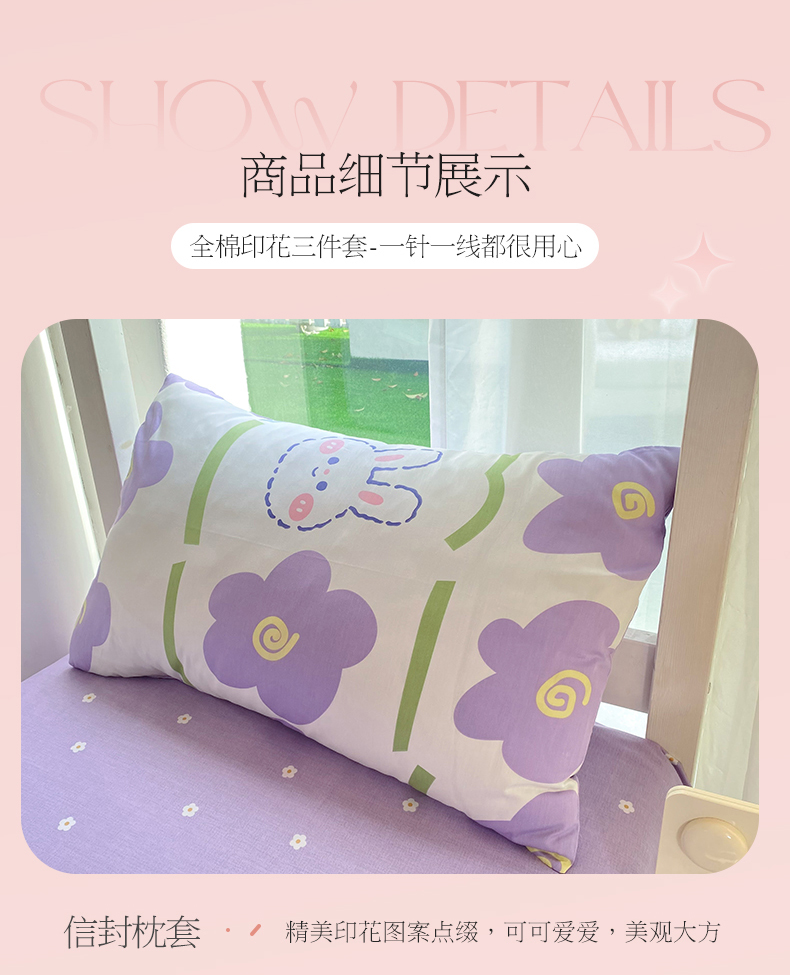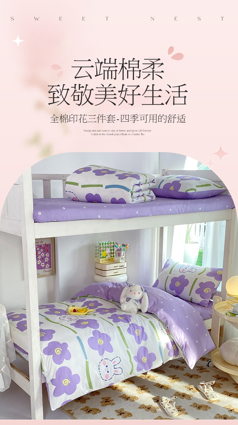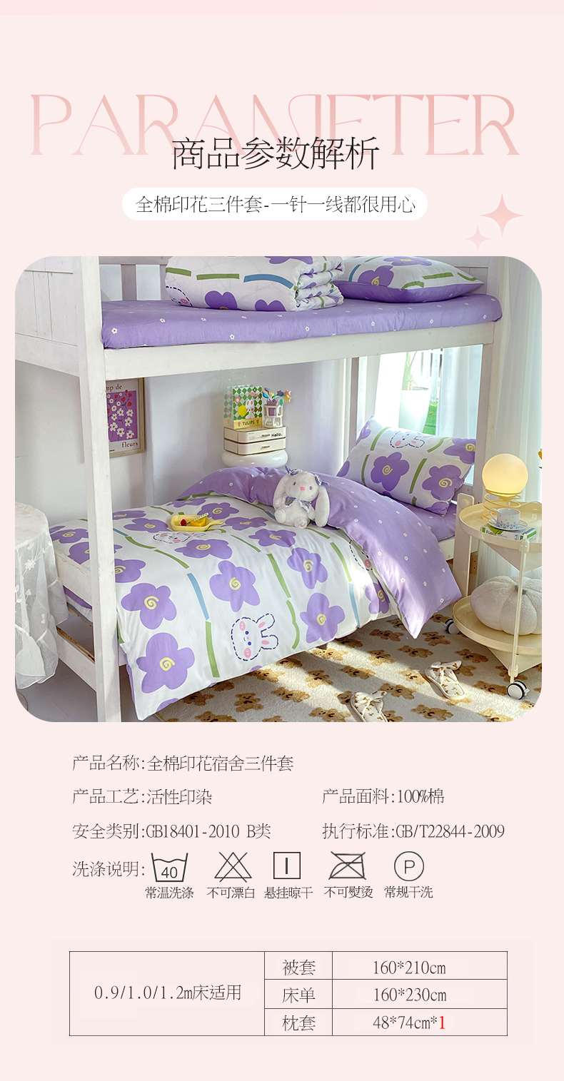 商品名称:多品 2023年13070宿舍三件套 花兔情缘紫